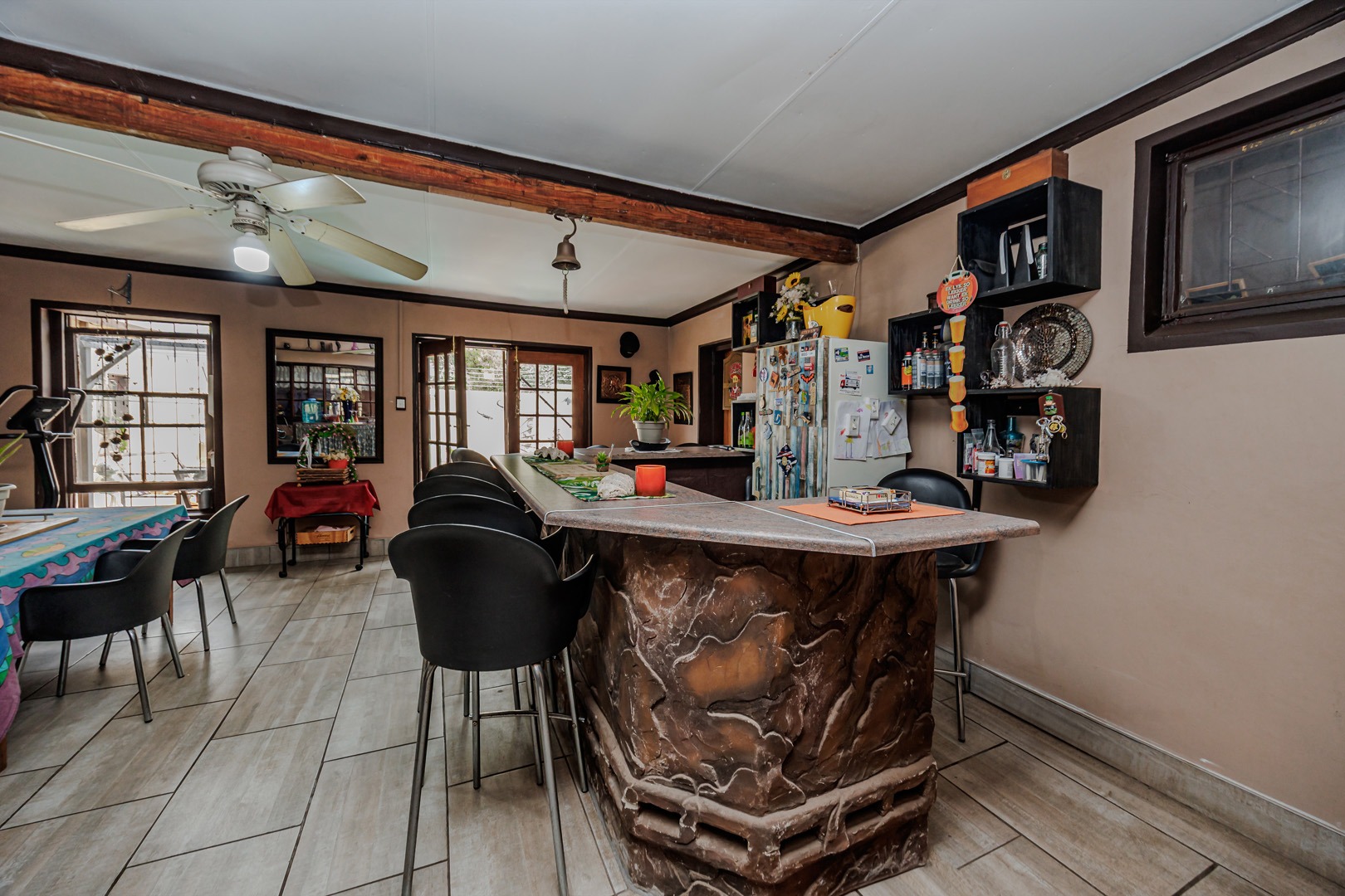 The living and entertainment areas are a true highlight, tailored for those who love hosting. A stunning braai room with a built-in braai and bar overlooks a sparkling blue swimming pool, making it the perfect space for year-round entertaining. The kitchen is conveniently located adjacent to the entertainment area, ensuring the host remains part of the gathering while preparing meals.