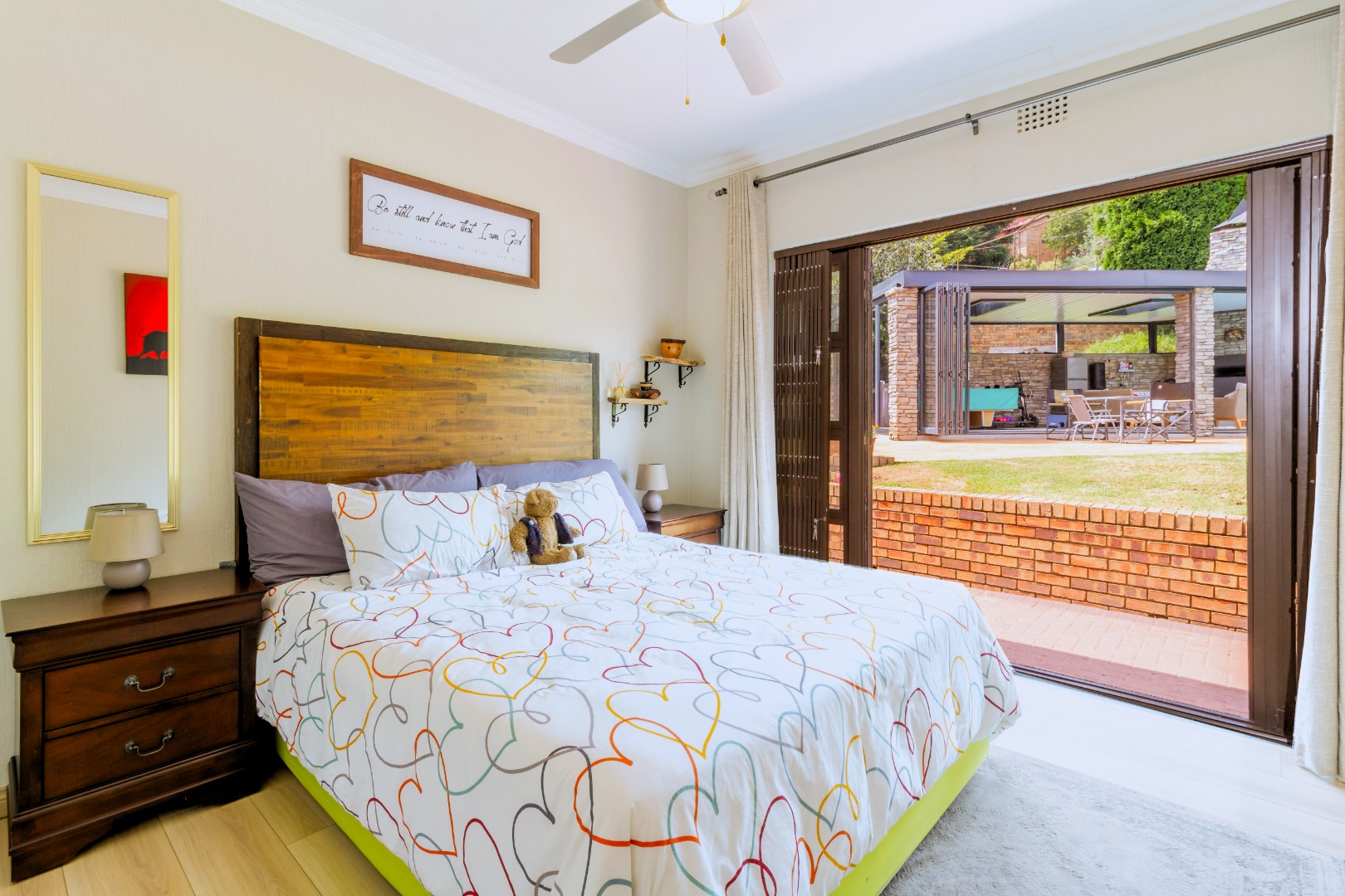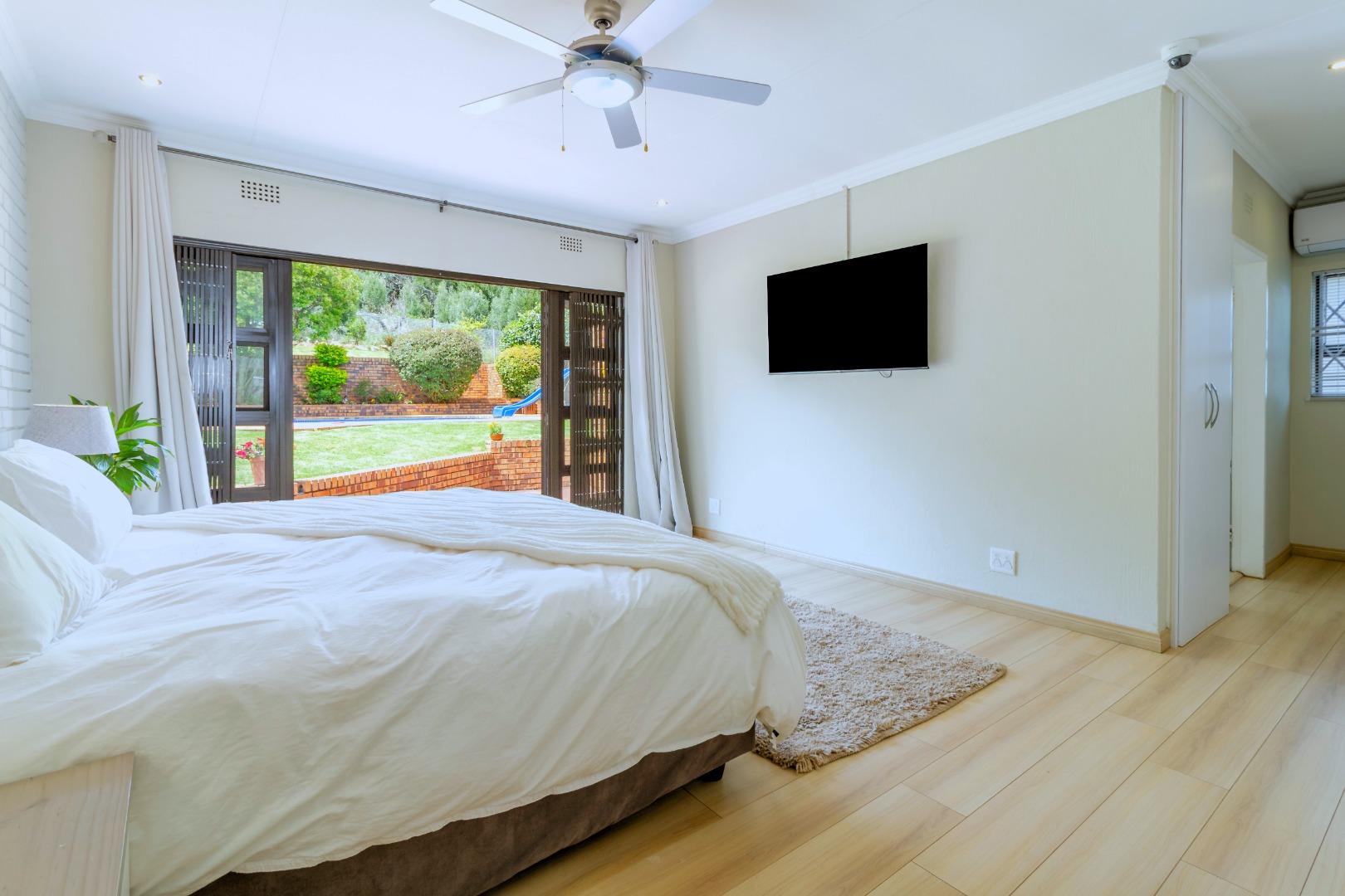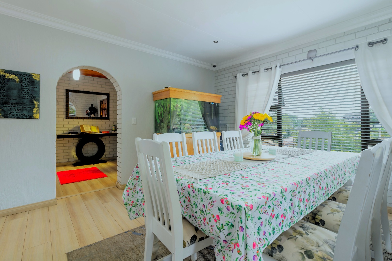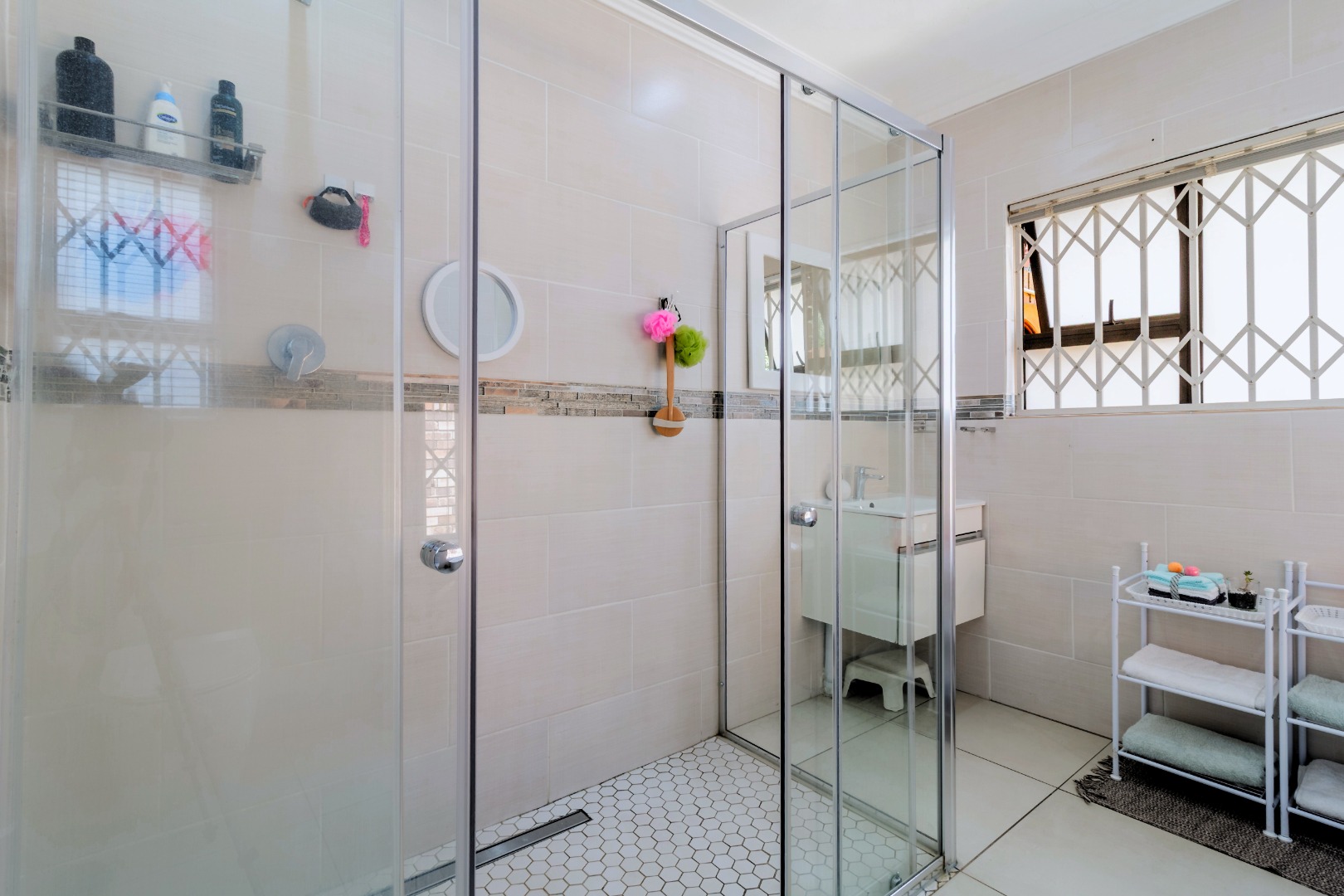 The home features a beautifully designed gourmet kitchen with double ovens, pantry, spice storage and a separate scullery with space for both top and front loader appliances. Energy efficiency is enhanced with solar panels and a dedicated solar geyser system.