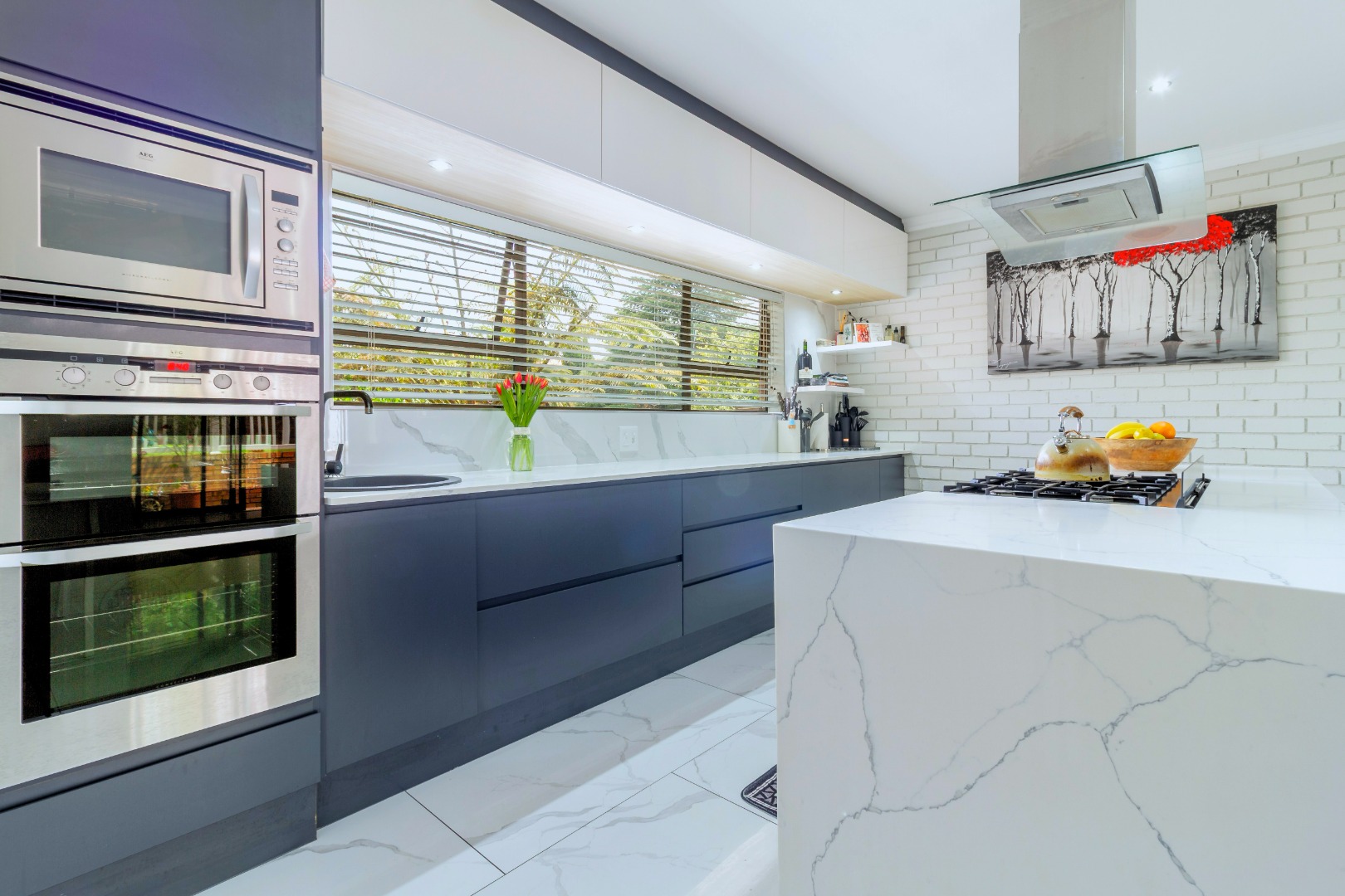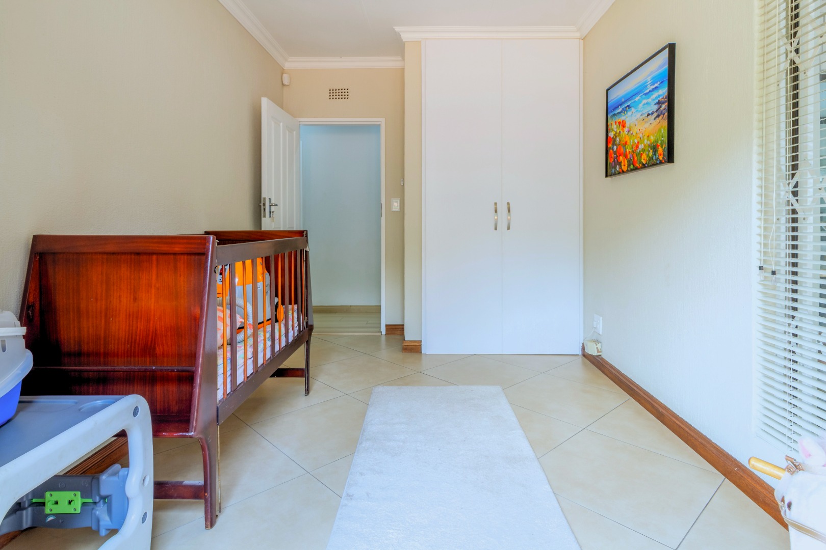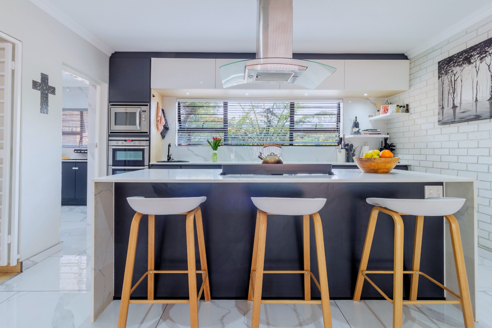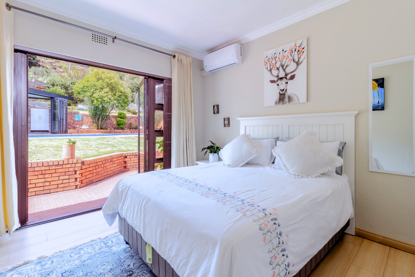 The home features a beautifully designed gourmet kitchen with double ovens, pantry, spice storage and a separate scullery with space for both top and front loader appliances. Energy efficiency is enhanced with solar panels and a dedicated solar geyser system.