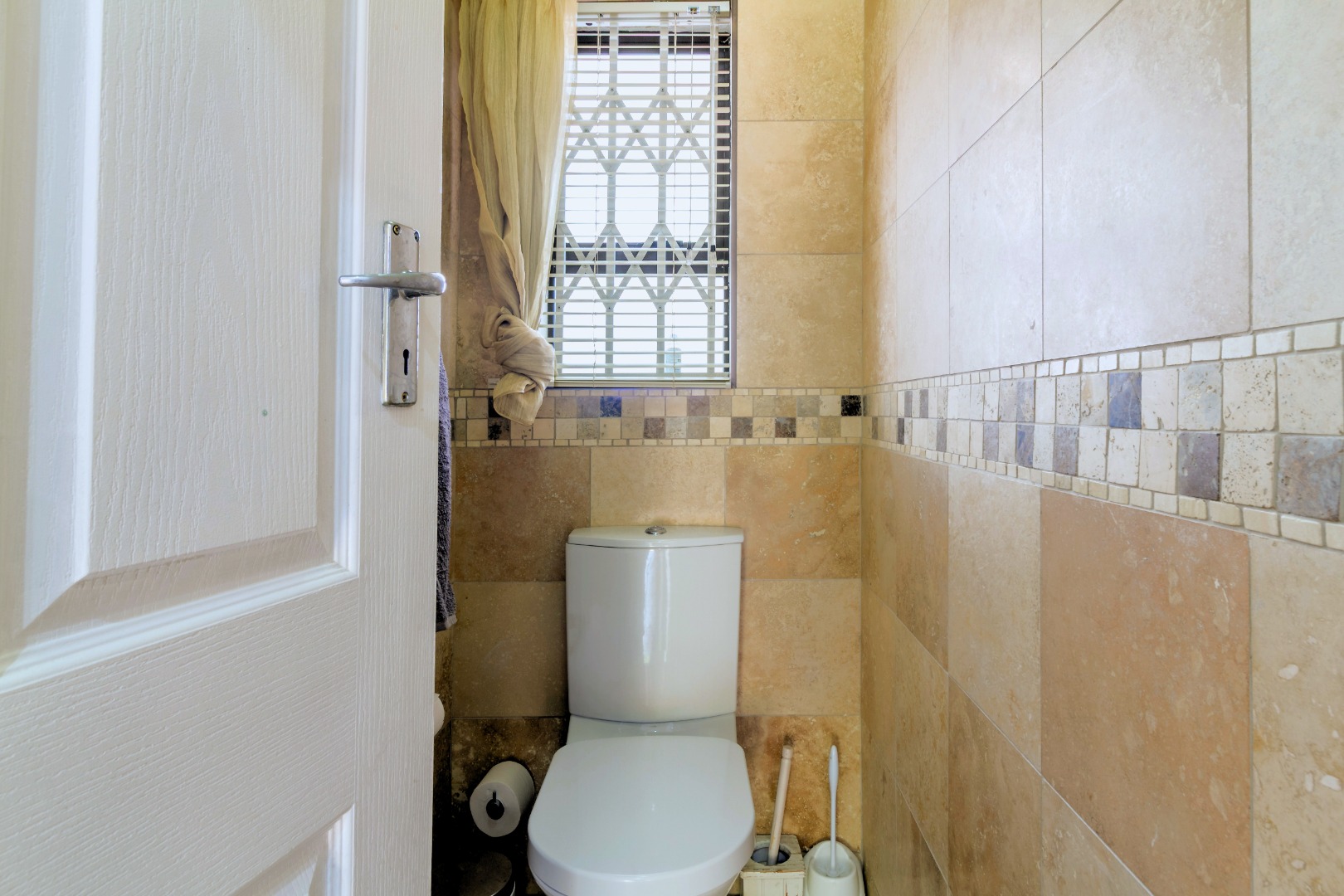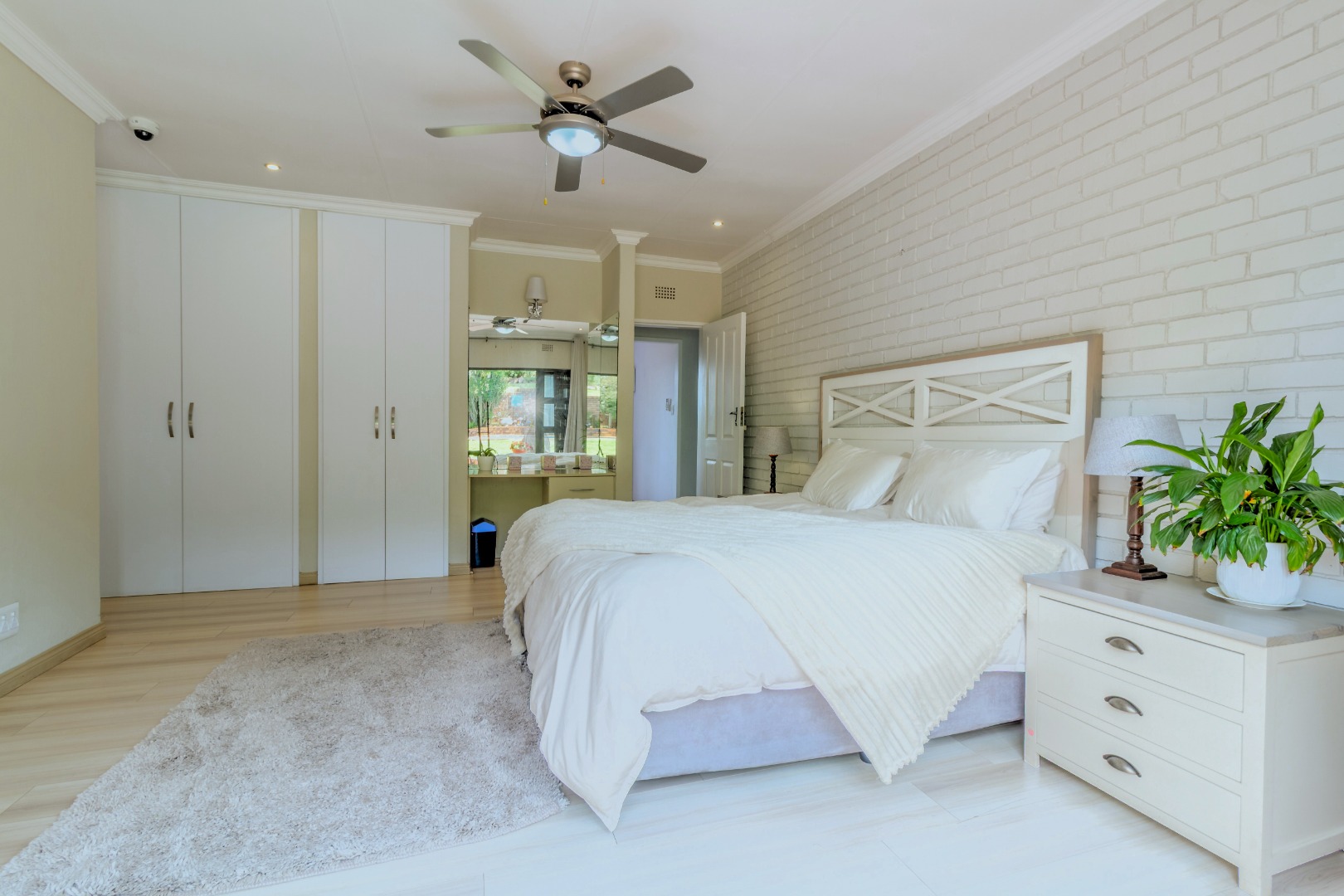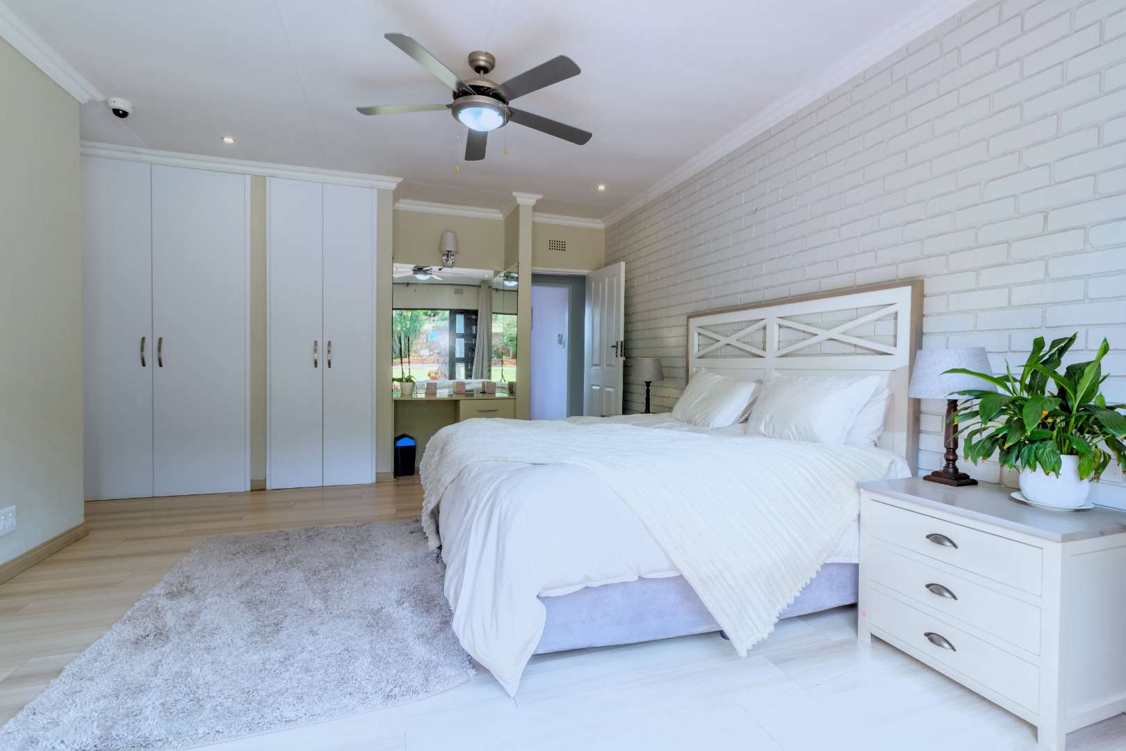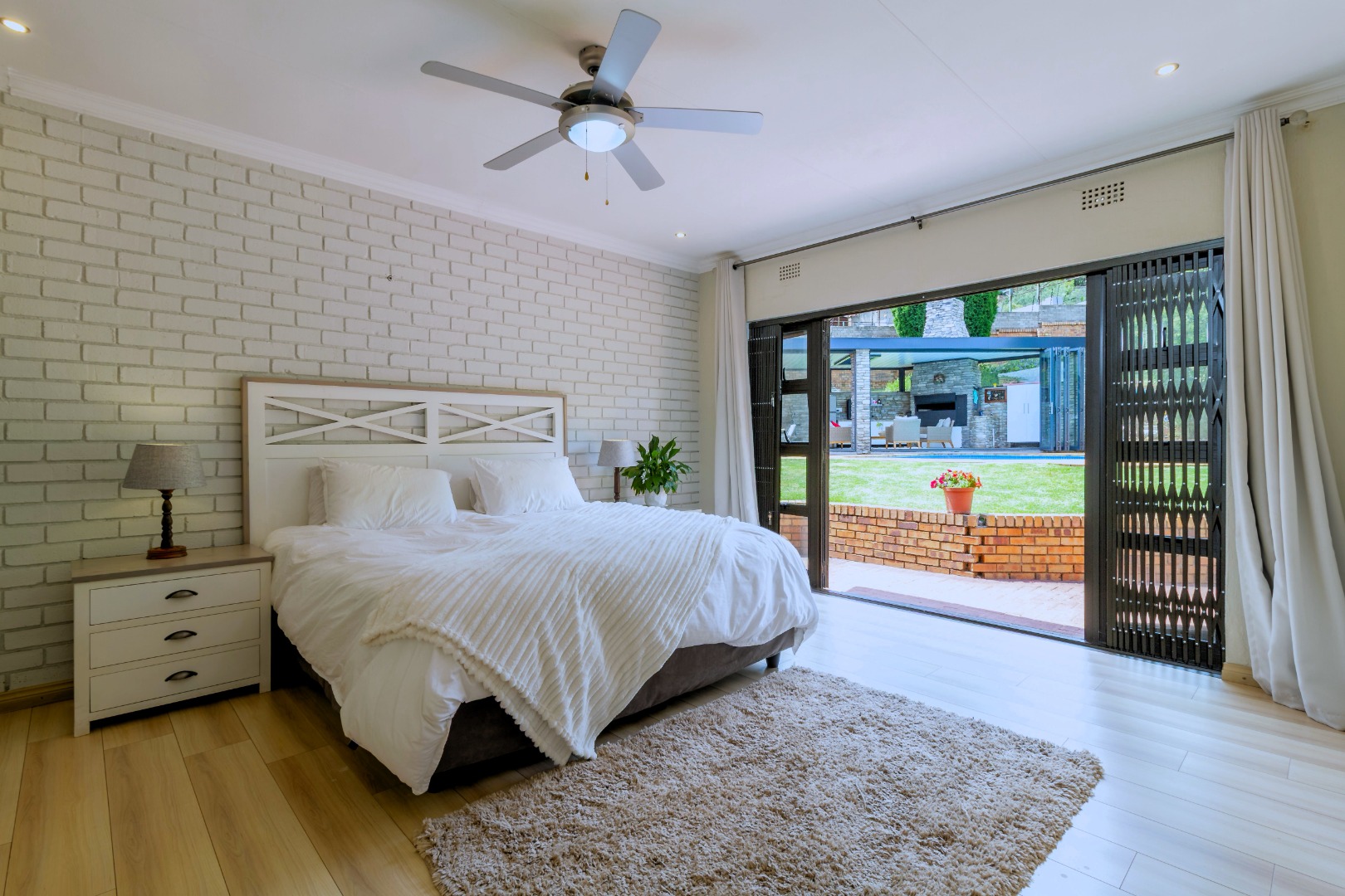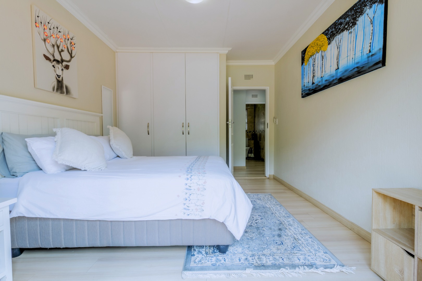 The home features a beautifully designed gourmet kitchen with double ovens, pantry, spice storage and a separate scullery with space for both top and front loader appliances. Energy efficiency is enhanced with solar panels and a dedicated solar geyser system.