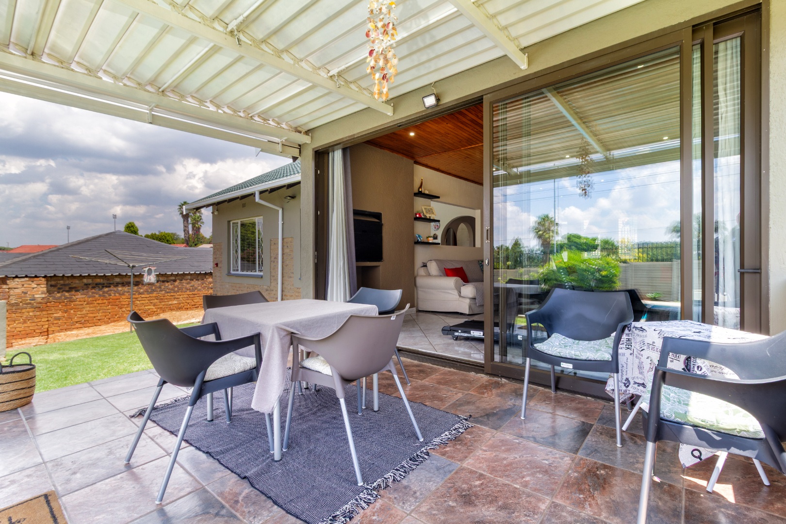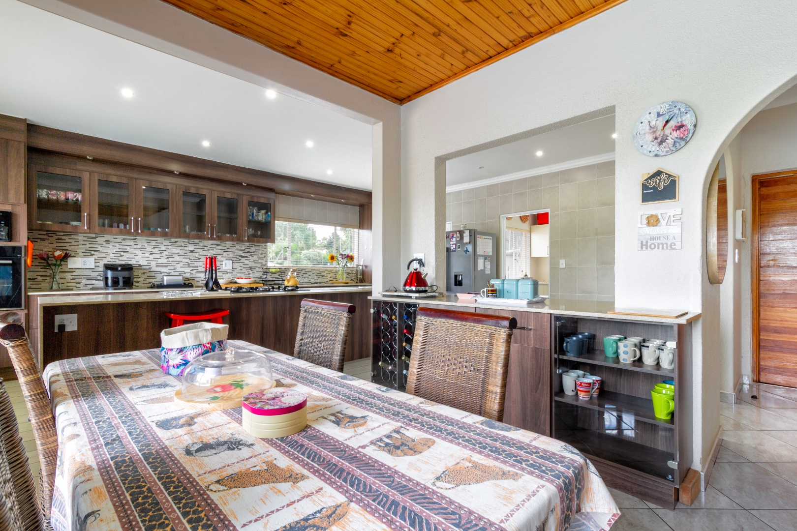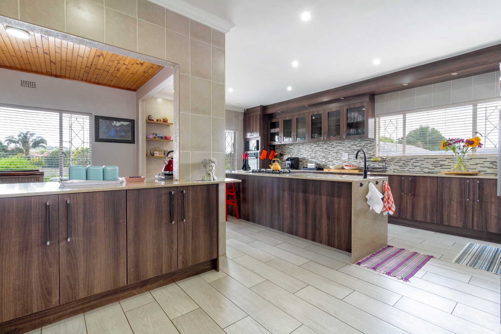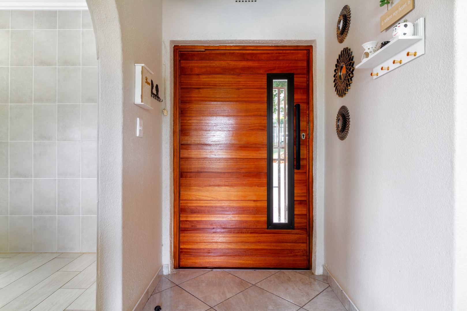 Enjoy outdoor living with a built-in braai and entertainment area overlooking a sparkling blue swimming pool. Additional features include staff quarters, a Wendy hut, and two water tanks for backup water. Solar is installed on a rental basis.