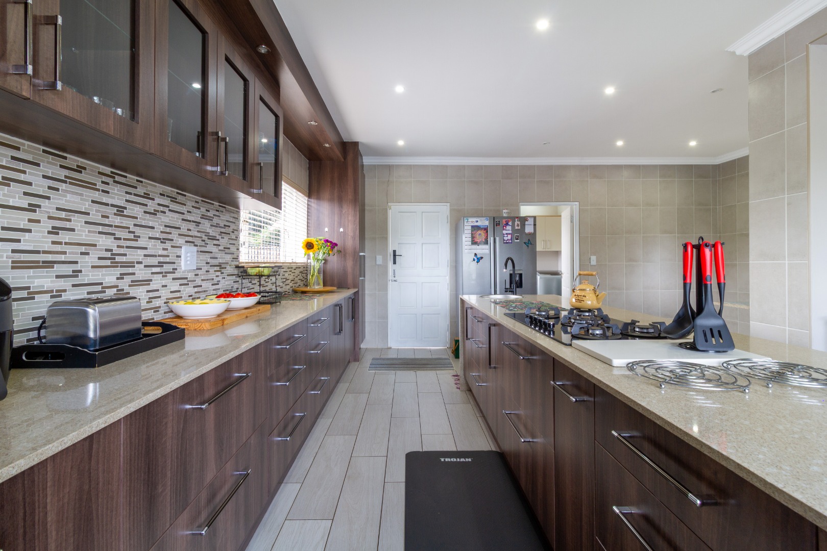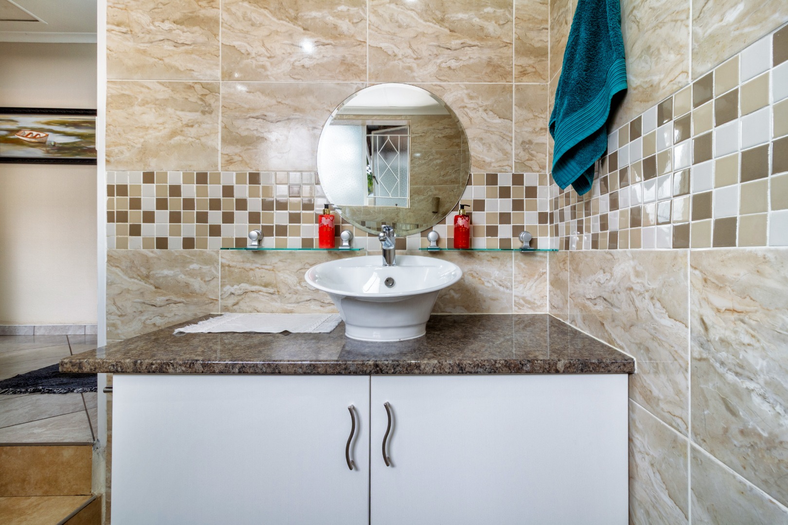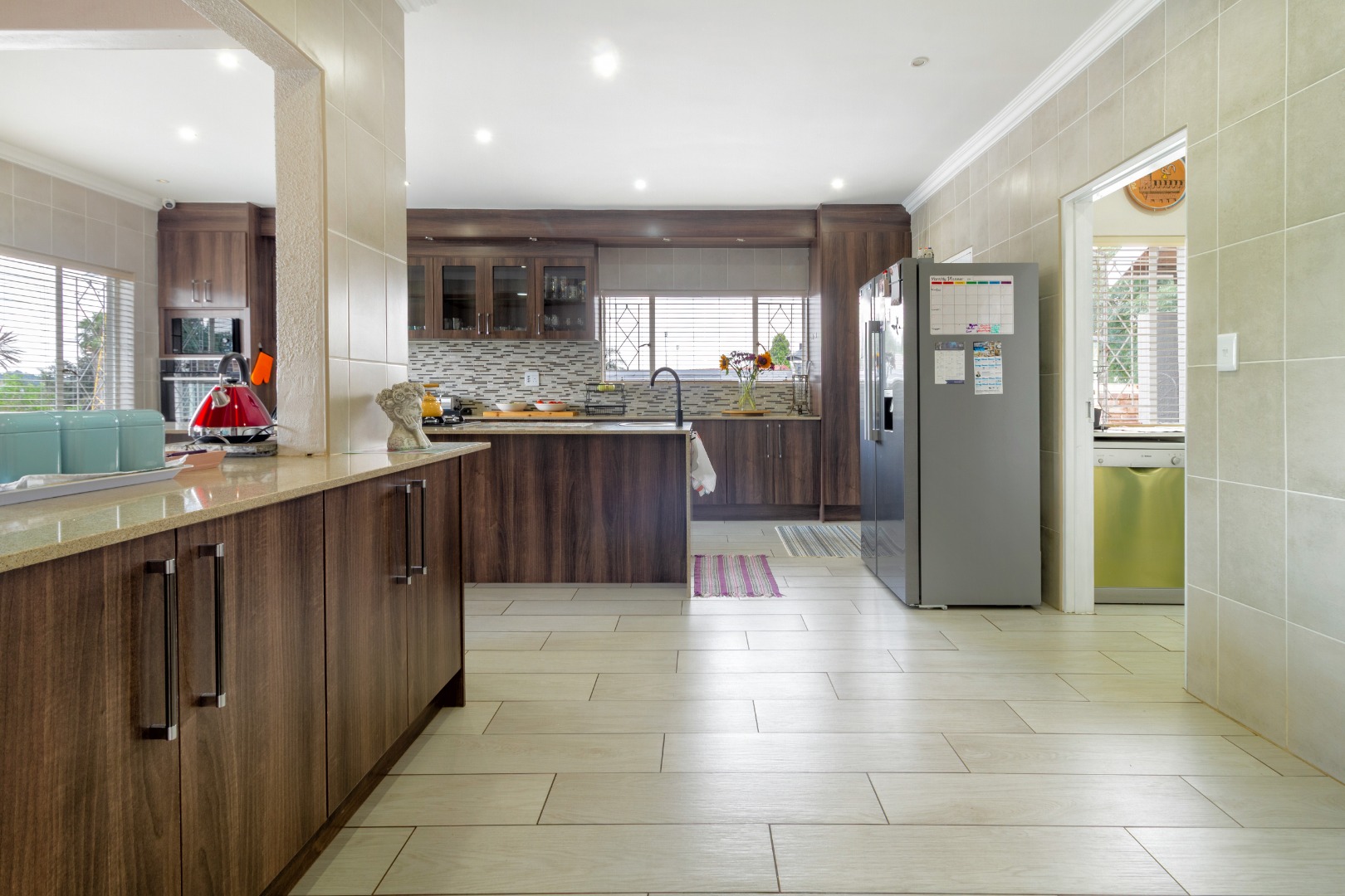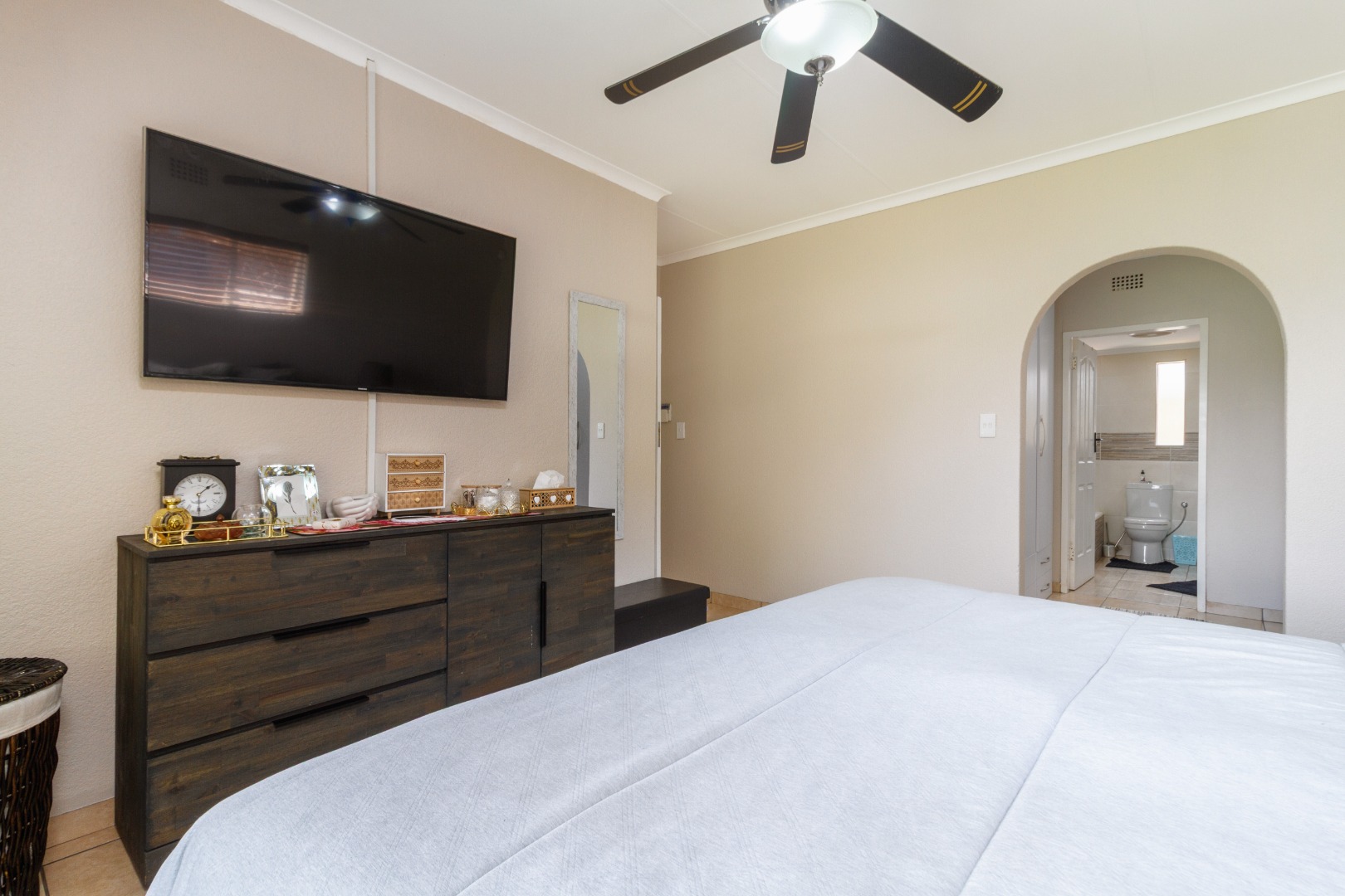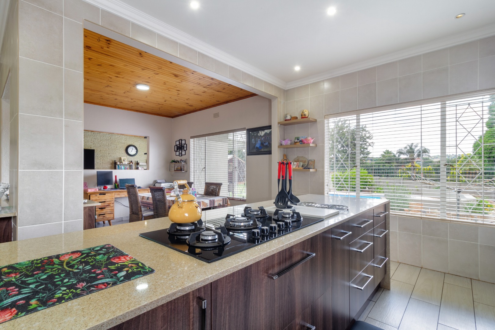 Enjoy outdoor living with a built-in braai and entertainment area overlooking a sparkling blue swimming pool. Additional features include staff quarters, a Wendy hut, and two water tanks for backup water. Solar is installed on a rental basis.