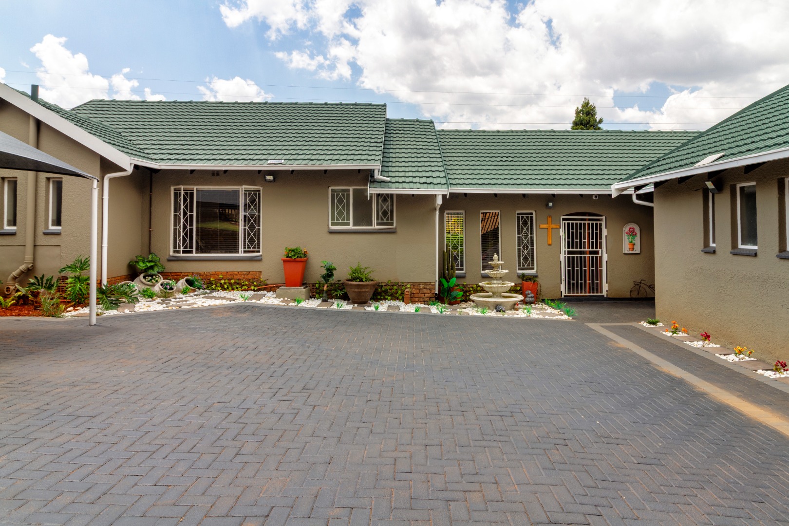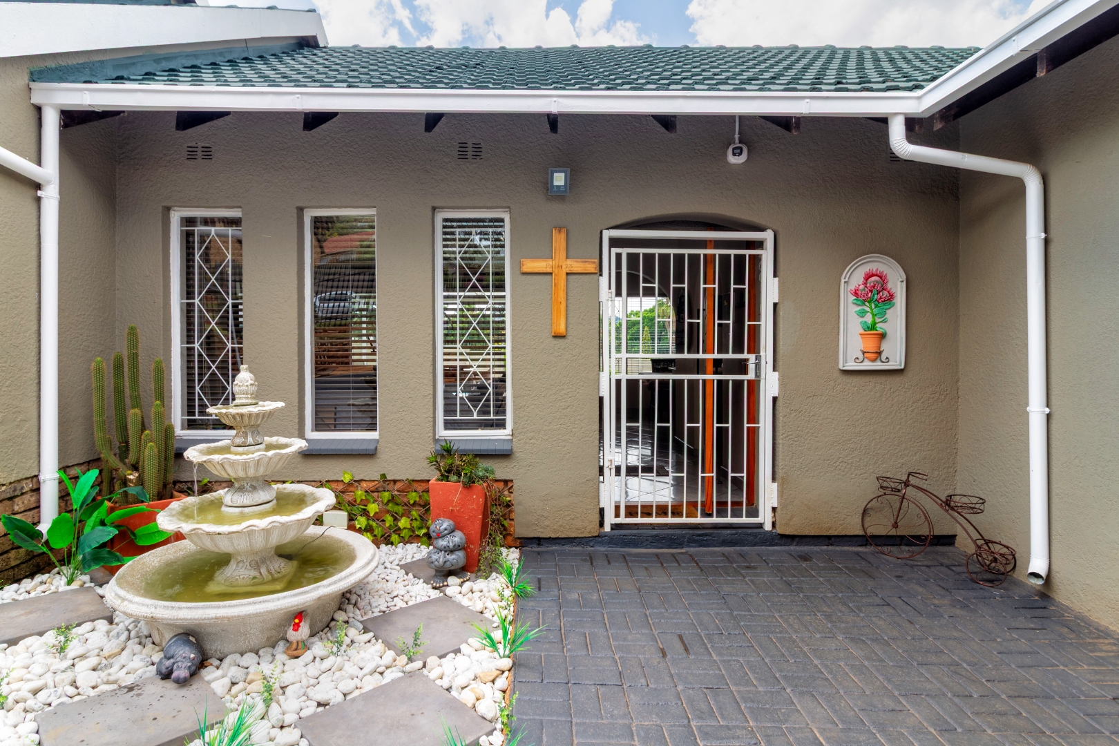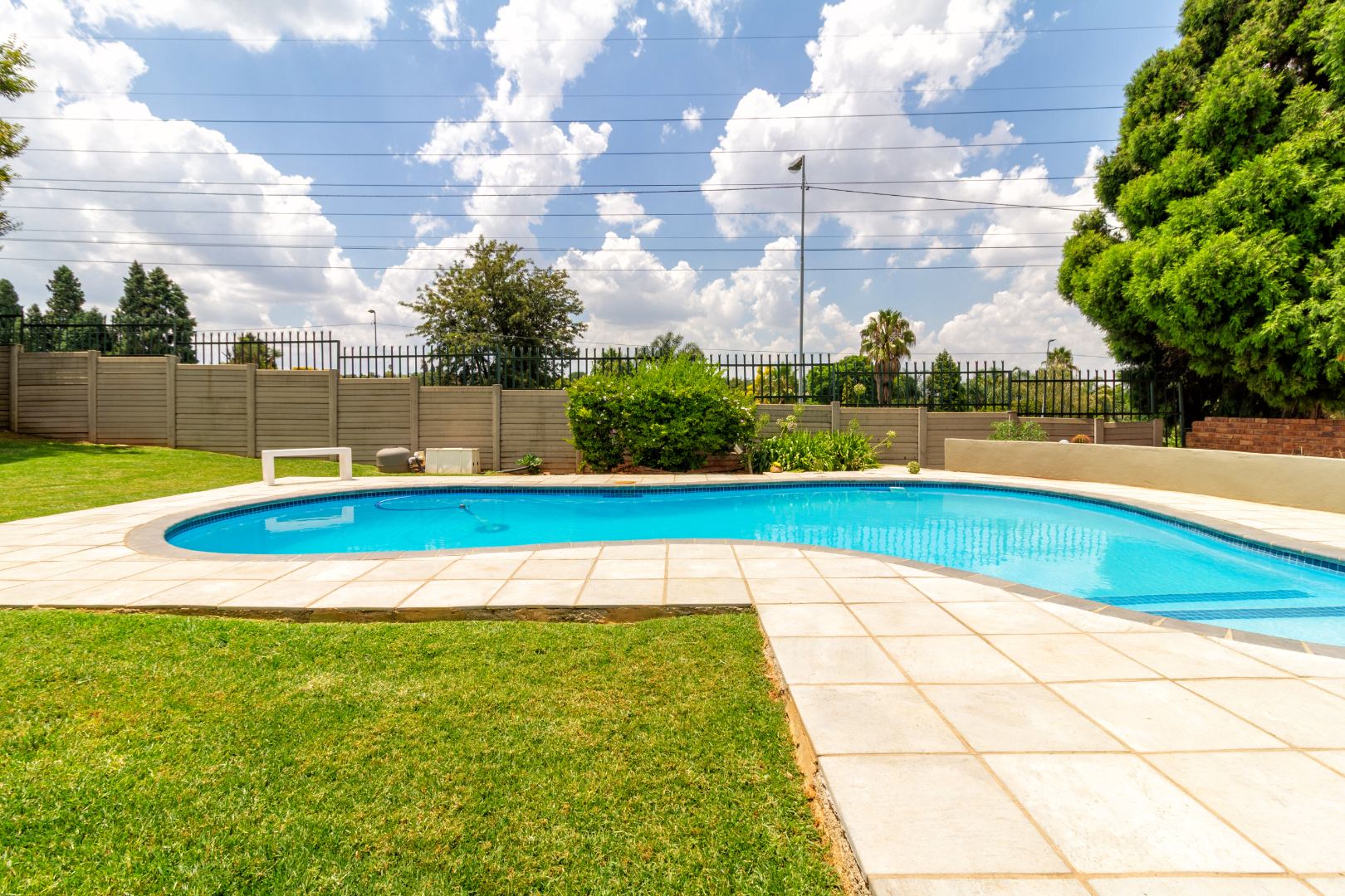 Enjoy outdoor living with a built-in braai and entertainment area overlooking a sparkling blue swimming pool. Additional features include staff quarters, a Wendy hut, and two water tanks for backup water. Solar is installed on a rental basis.