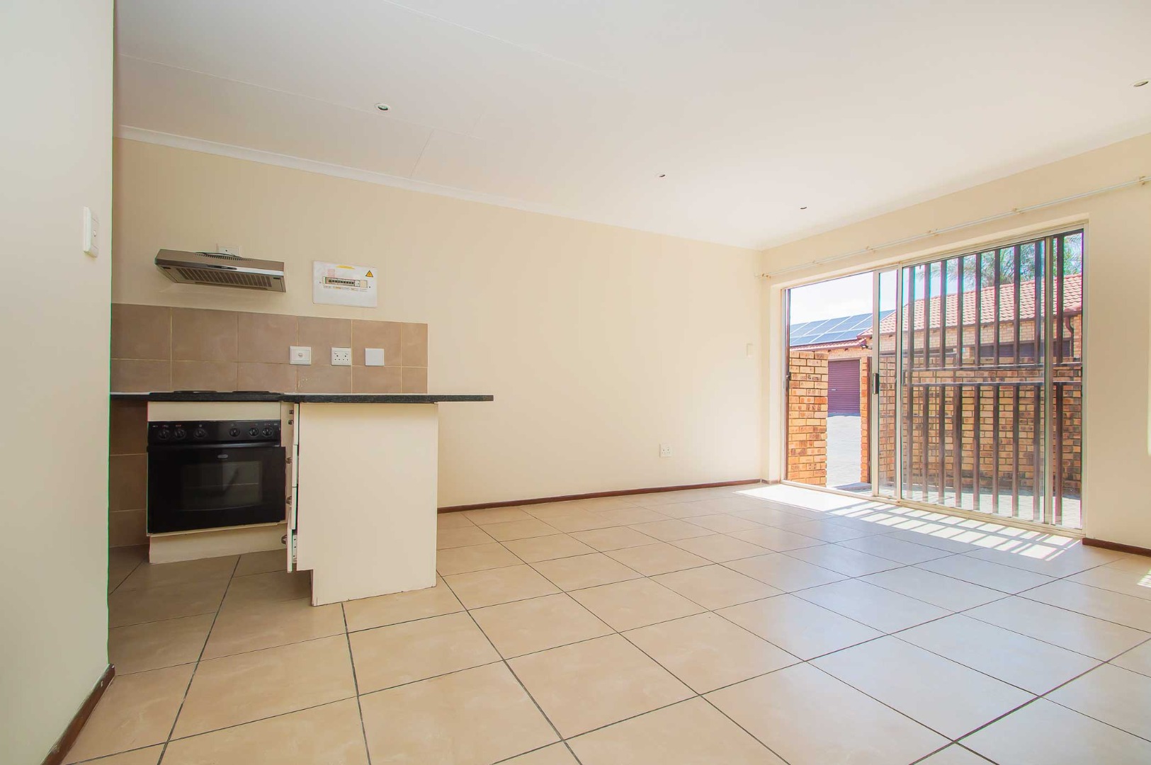 Step inside to discover a spacious open-plan lounge and kitchen area that is ideal for both relaxation and entertaining. The kitchen is a chef’s delight, featuring ample cupboard space to keep everything organized and within easy reach.