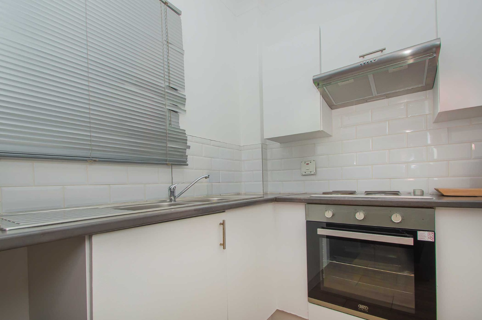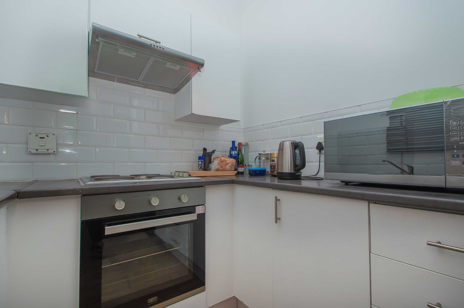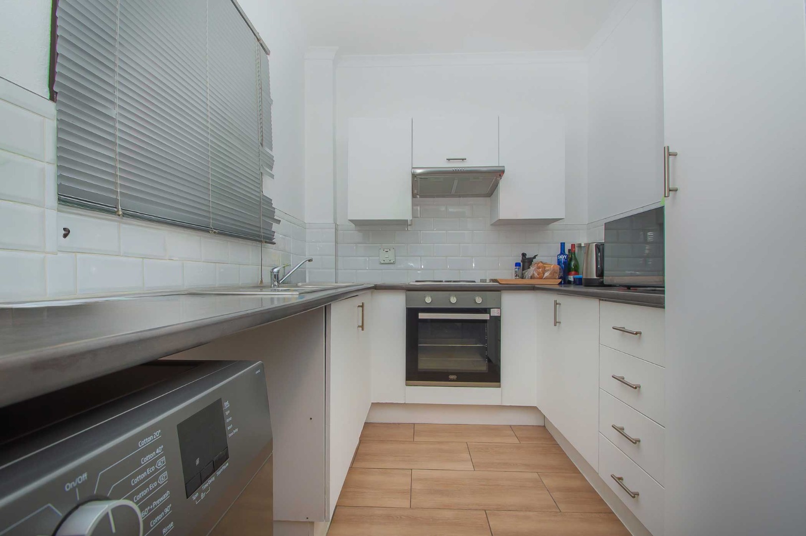 The kitchen features ample cupboard space and is equipped to accommodate two under-counter appliances, blending style with functionality.