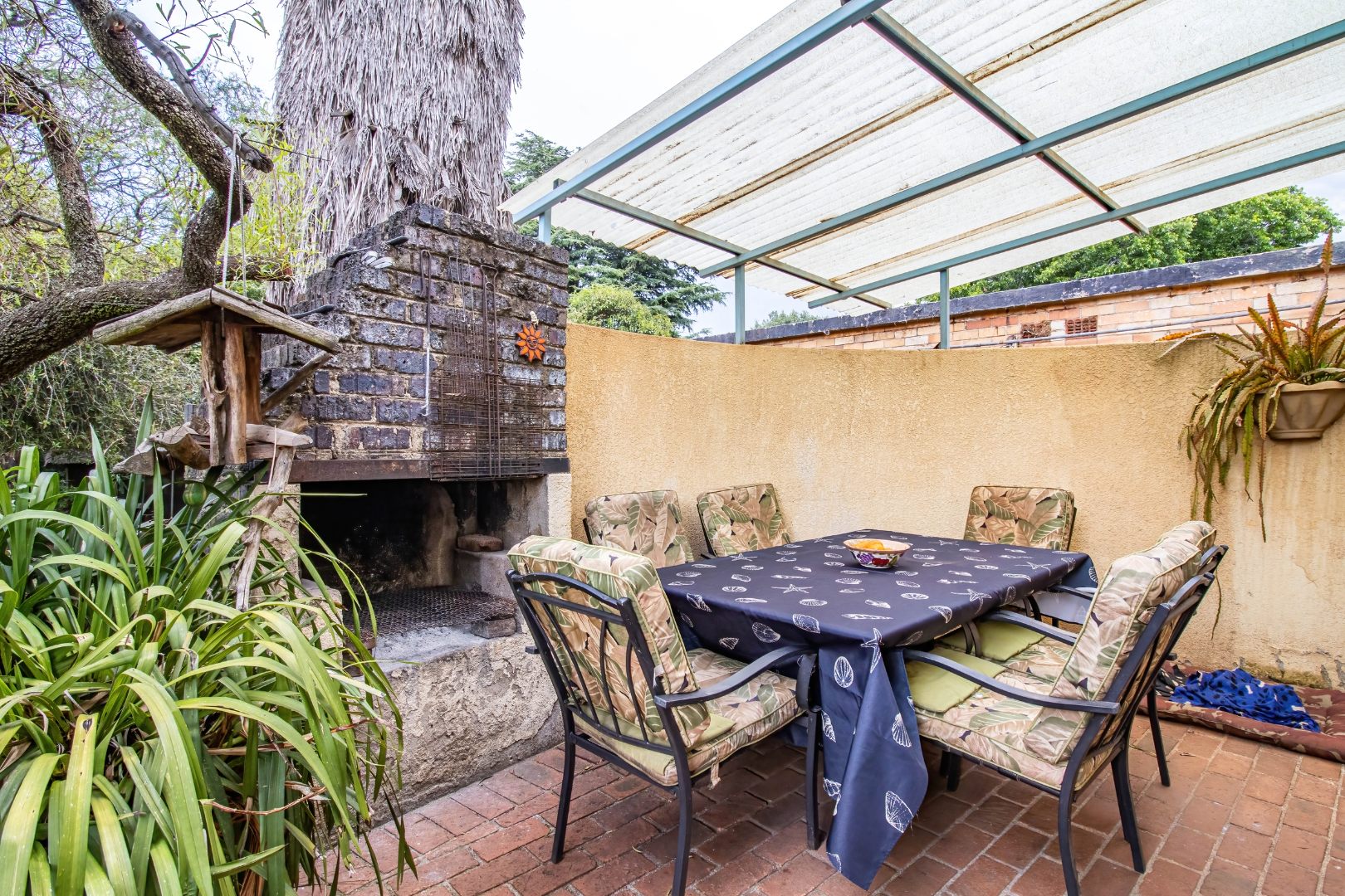 The outdoor space is a standout feature, featuring a private swimming pool and an expansive garden, perfect for relaxed outdoor living and entertaining. Security is well catered for with burglar bars, a security gate, and a fully walled perimeter, while fibre connectivity ensures modern convenience.