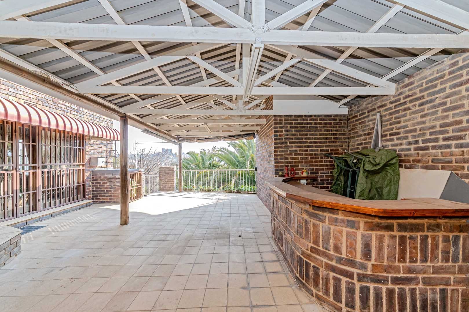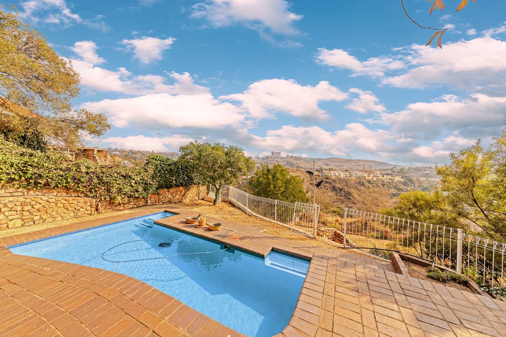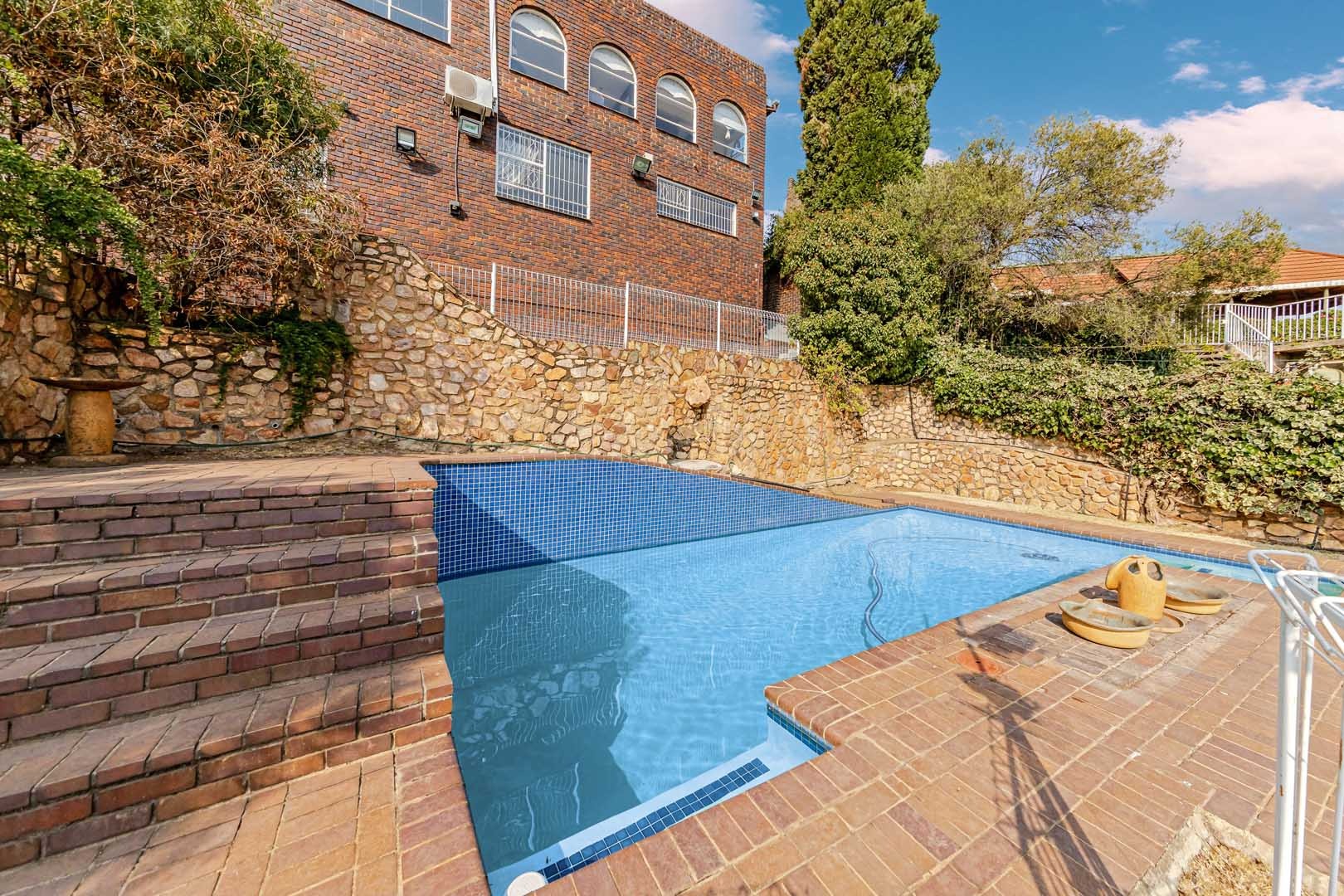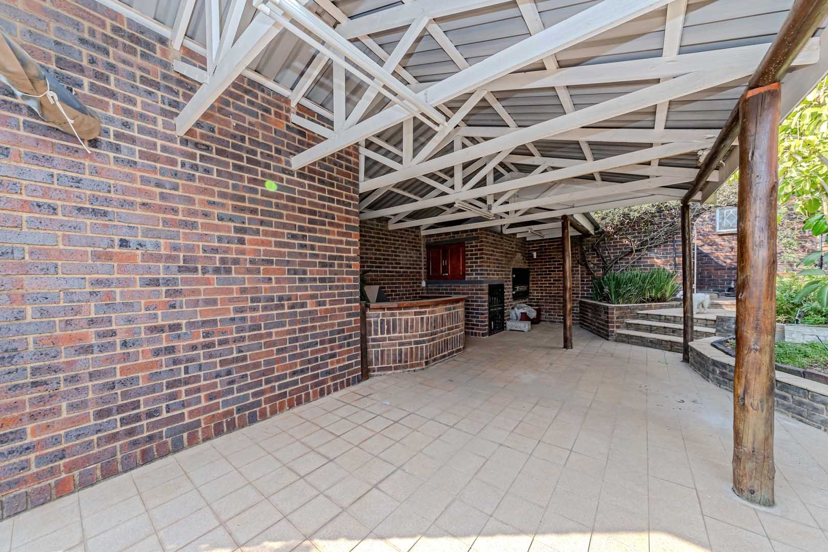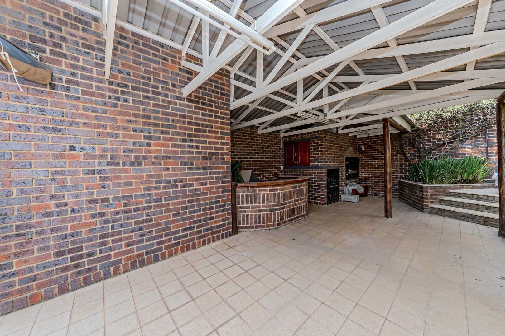 Outside, the home truly comes alive. A mature, low-maintenance garden frames the property, while the sparkling swimming pool and covered braai and entertainment area create the perfect setting for relaxed summer afternoons or elegant evening gatherings. With four secure garages, an alarm system, and a staff room, every detail has been considered to offer peace of mind and convenience.