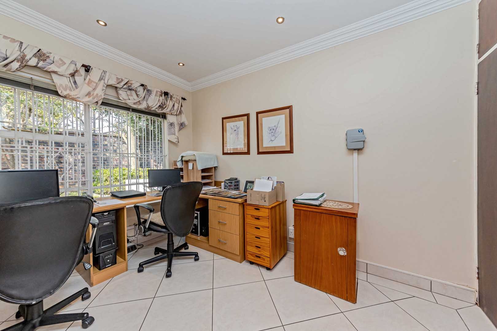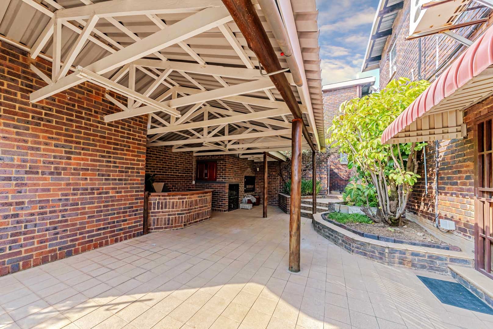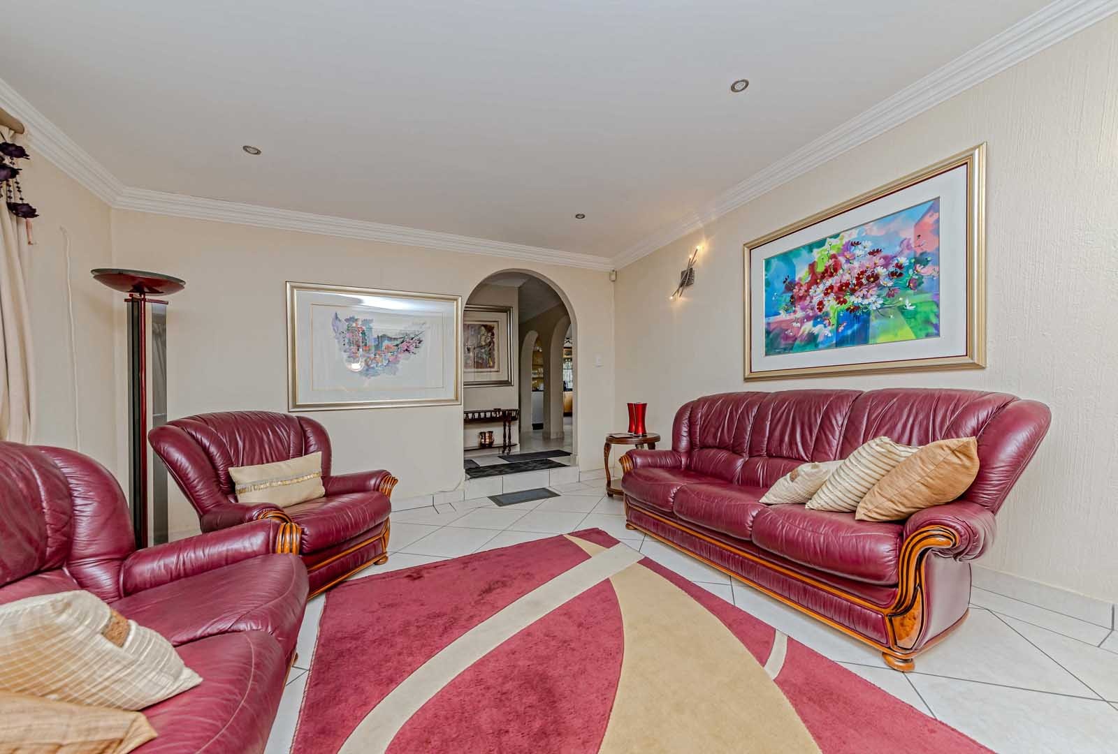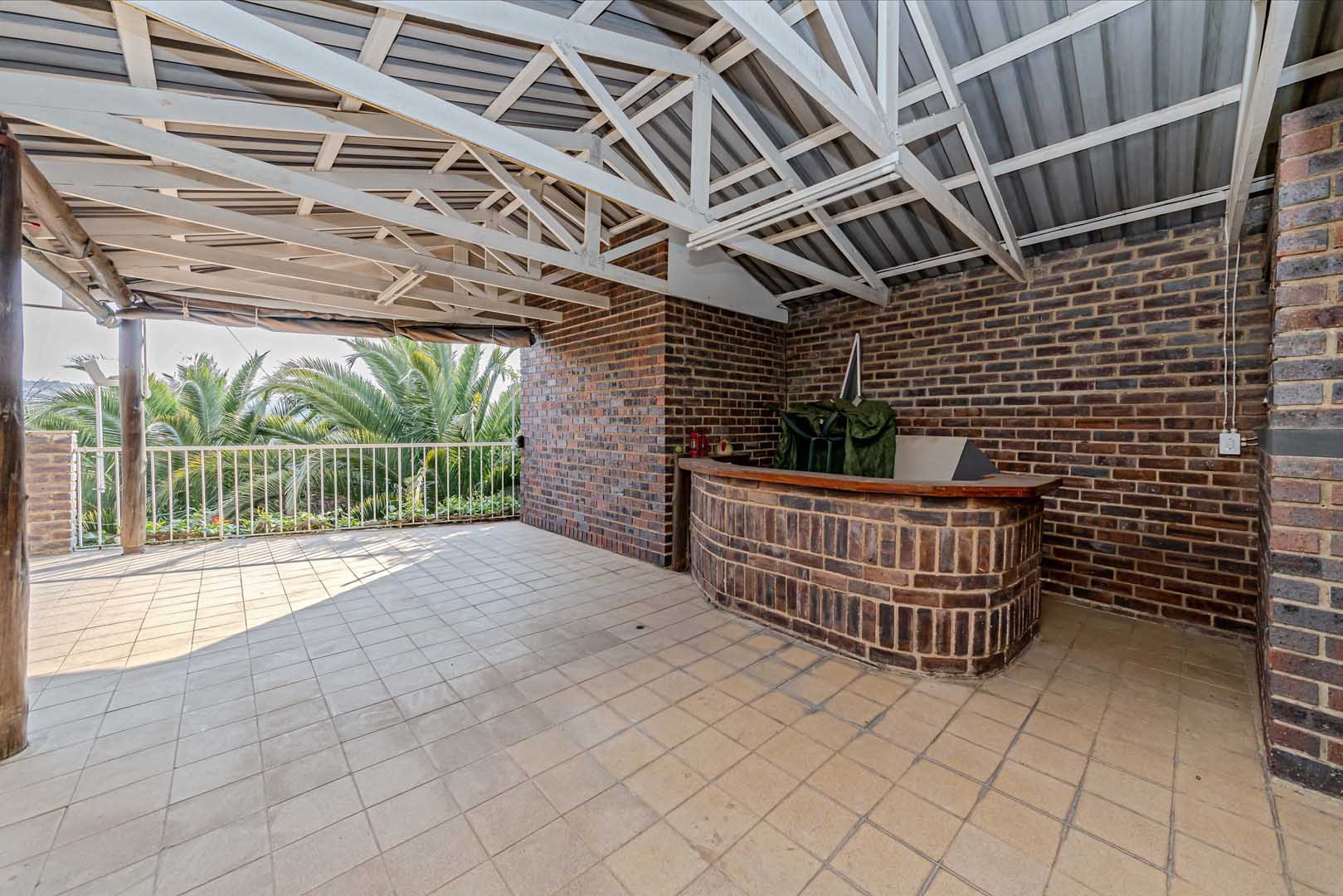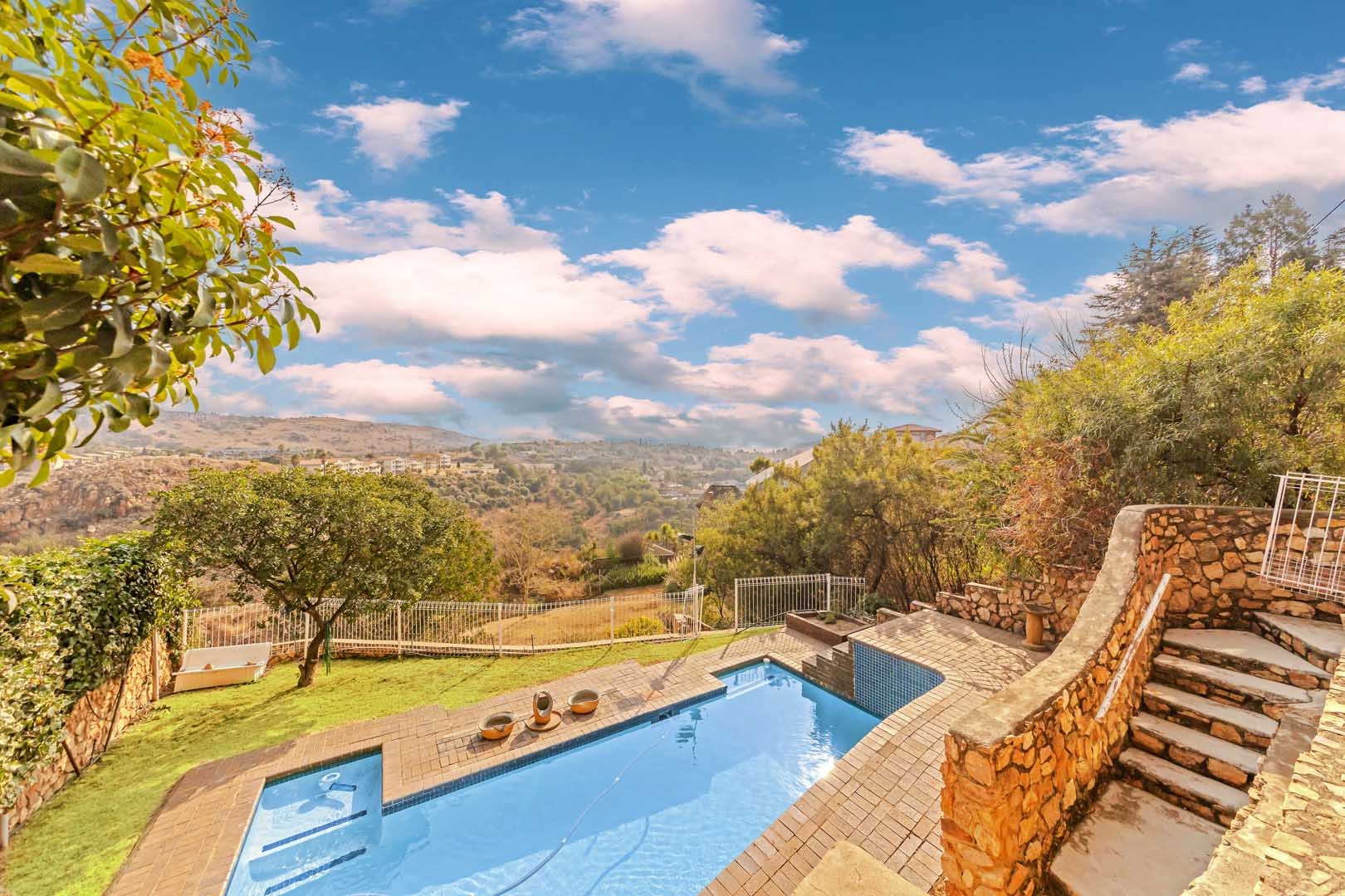 Outside, the home truly comes alive. A mature, low-maintenance garden frames the property, while the sparkling swimming pool and covered braai and entertainment area create the perfect setting for relaxed summer afternoons or elegant evening gatherings. With four secure garages, an alarm system, and a staff room, every detail has been considered to offer peace of mind and convenience.