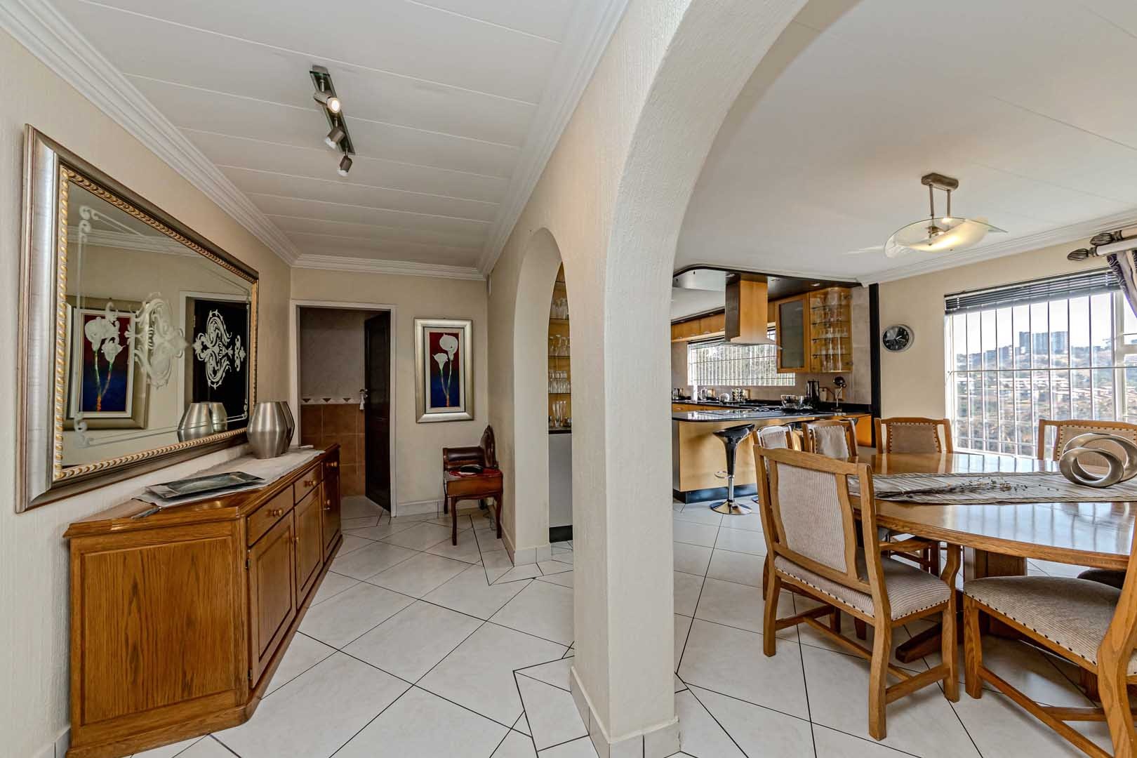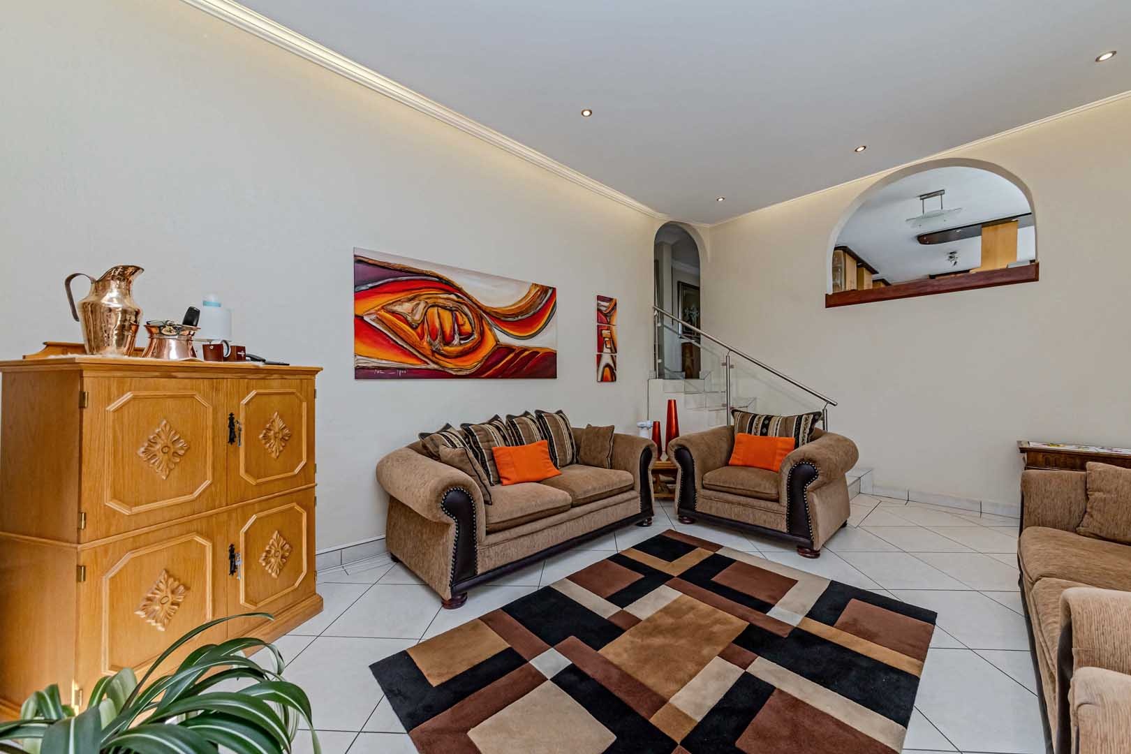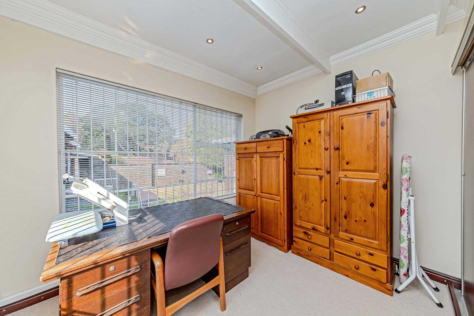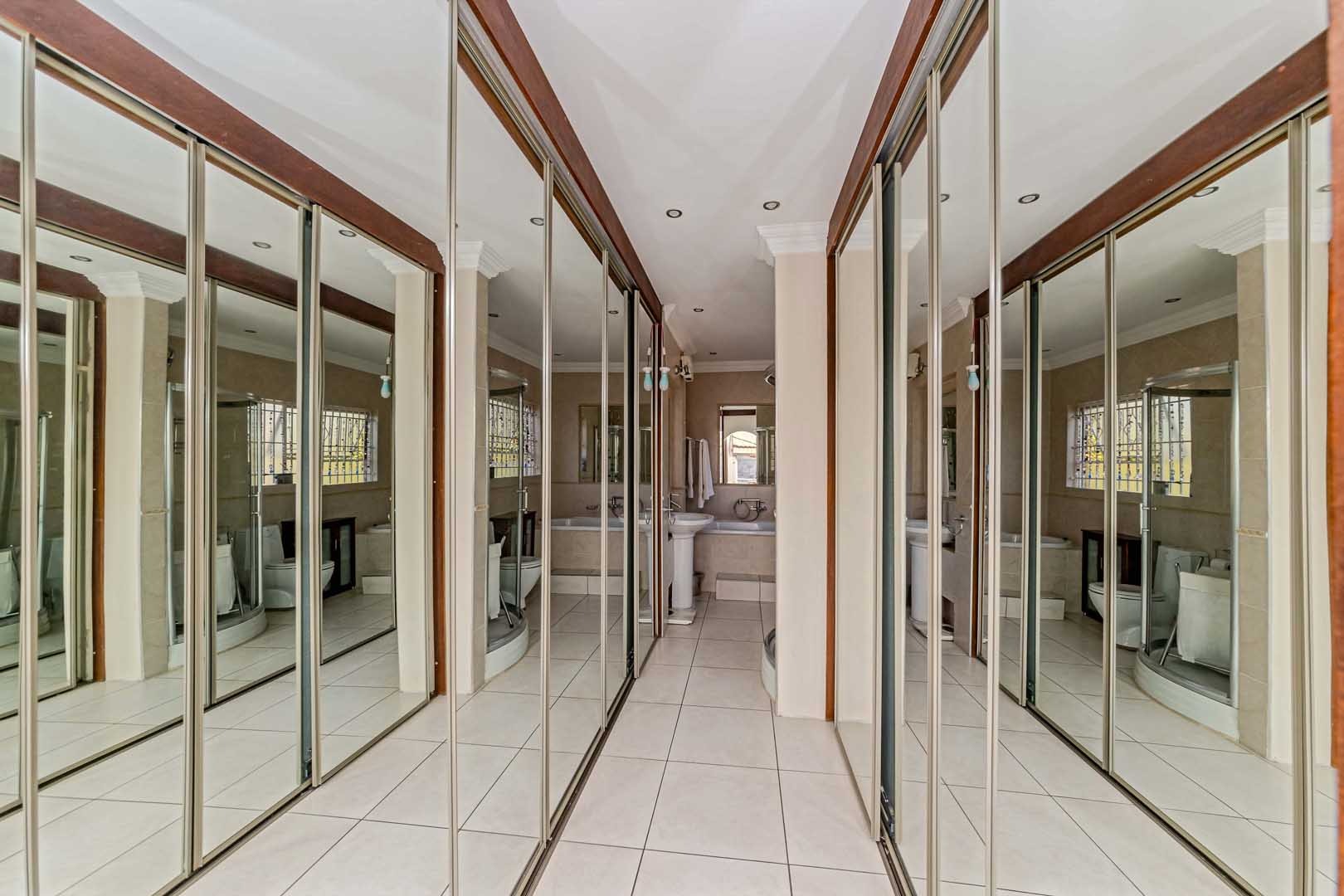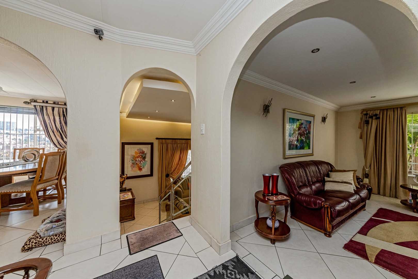 Outside, the home truly comes alive. A mature, low-maintenance garden frames the property, while the sparkling swimming pool and covered braai and entertainment area create the perfect setting for relaxed summer afternoons or elegant evening gatherings. With four secure garages, an alarm system, and a staff room, every detail has been considered to offer peace of mind and convenience.