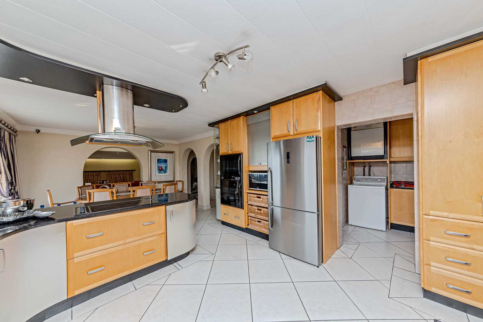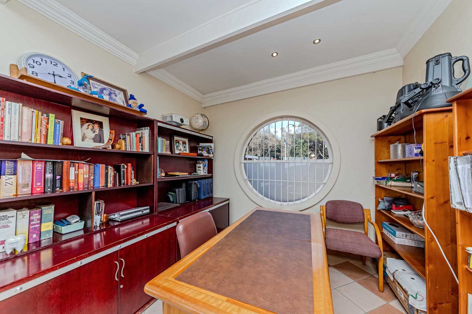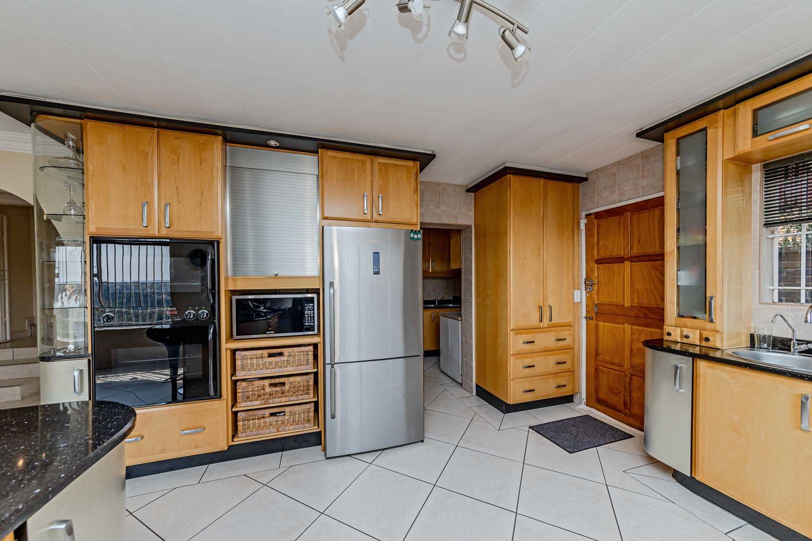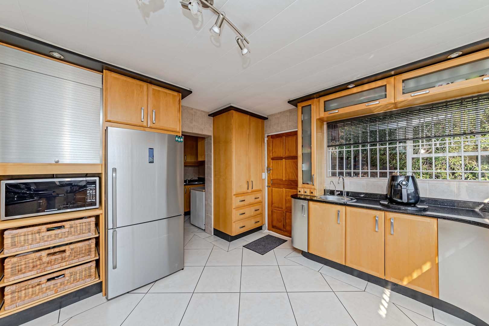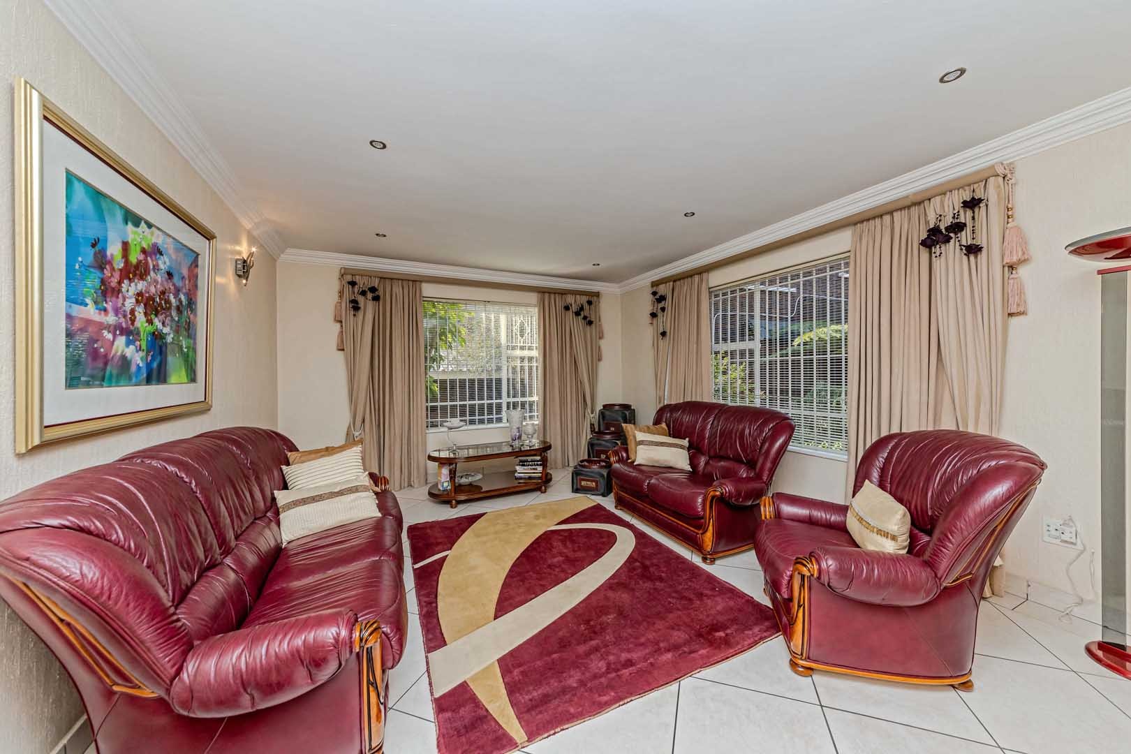 Outside, the home truly comes alive. A mature, low-maintenance garden frames the property, while the sparkling swimming pool and covered braai and entertainment area create the perfect setting for relaxed summer afternoons or elegant evening gatherings. With four secure garages, an alarm system, and a staff room, every detail has been considered to offer peace of mind and convenience.