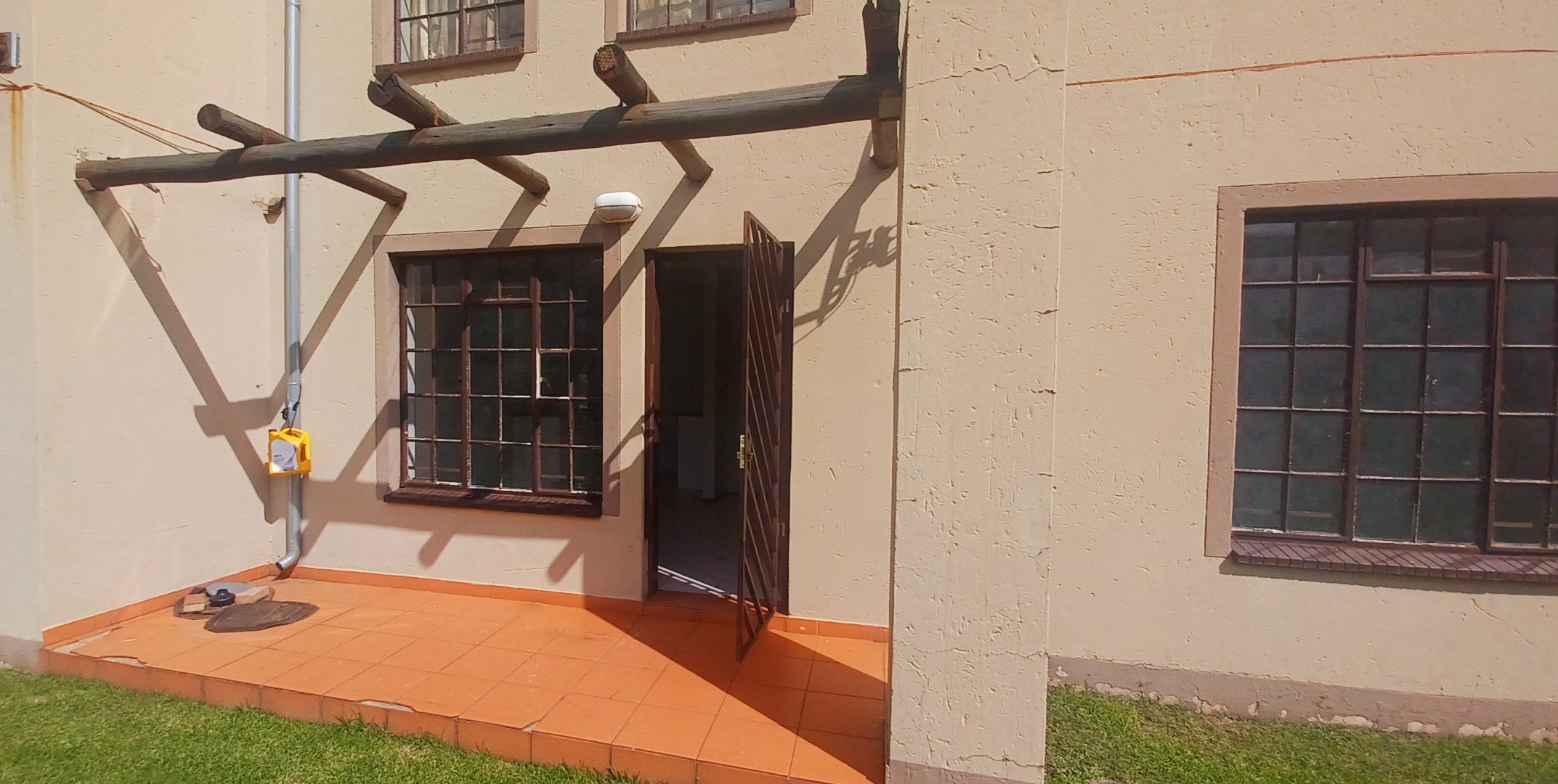 This inviting 2-bedroom, 1-bathroom apartment offers a comfortable living space within a secure complex in Lindhaven, Roodepoort. Spanning 45.00 sqm of floor area on a 54.00 sqm erf, this ground-floor unit provides direct access to well-maintained communal green lawns, enhancing the outdoor lifestyle. The interior features a functional kitchen equipped with modern white cabinetry, tiled floors, and an included electric stove/oven, making meal preparation convenient. The living areas are bright and airy, benefiting from ample natural light and durable tiled flooring throughout, ensuring easy maintenance. The two bedrooms are freshly painted and also feature tiled floors and large windows fitted with security grilles, offering peace of mind. The bathroom is fully tiled and includes a bathtub, vanity sink, and toilet. Step outside to your private tiled patio, complete with a charming wooden pergola, perfect for enjoying the outdoors or entertaining. This space seamlessly connects to the grassy communal areas. The complex prioritizes security with a gated entrance, controlled access, electric fencing, and security bars on windows and doors, providing a safe environment for residents. Covered parking bays are also available for convenience. Located in Lindhaven, Roodepoort, this property offers a practical and secure home base. The well-kept communal spaces and robust security measures contribute to a pleasant living experience. Key Features: * 2 Bedrooms, 1 Bathroom * Modern Kitchen with Electric Stove * Private Tiled Patio with Pergola * Secure Gated Complex * Electric Fencing & Security Bars * Covered Parking Available * Well-maintained Communal Gardens * Tiled Flooring Throughout