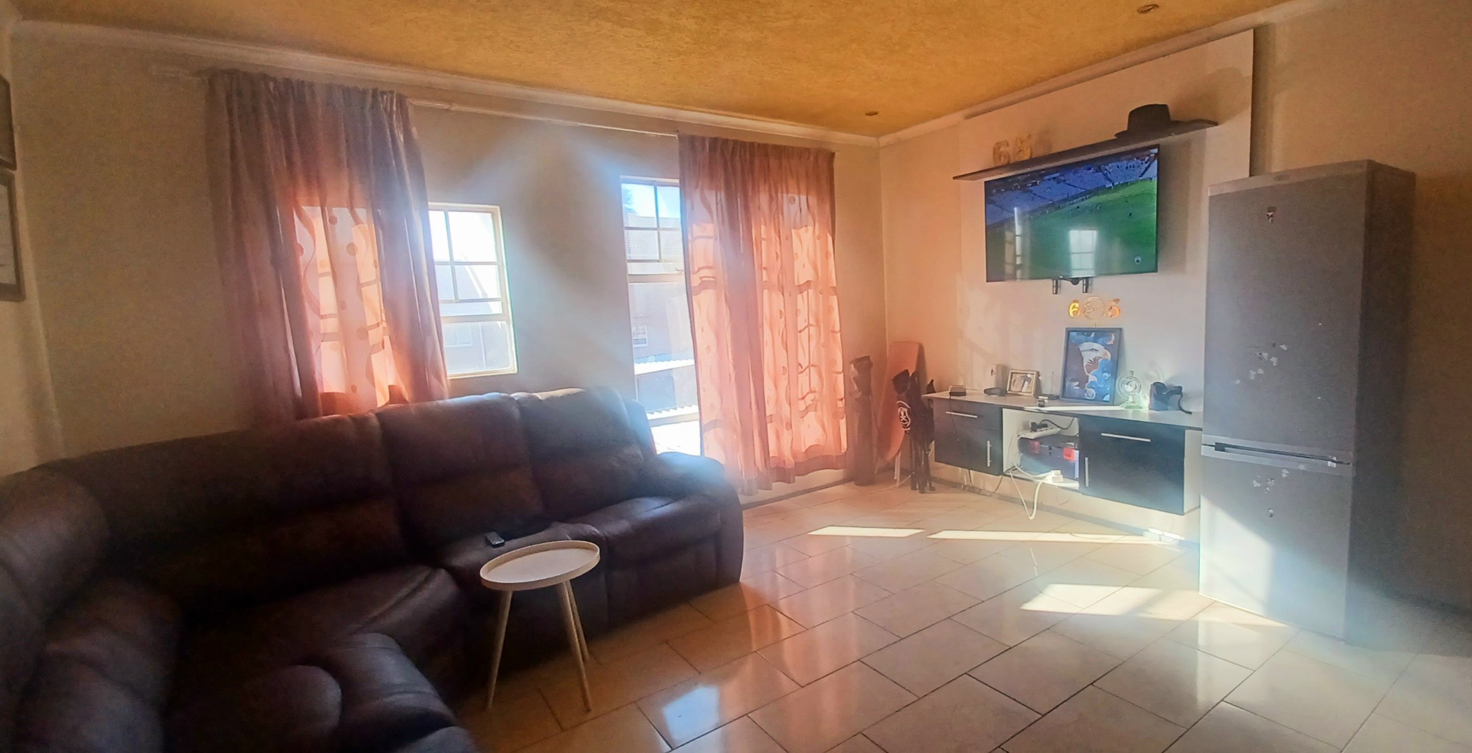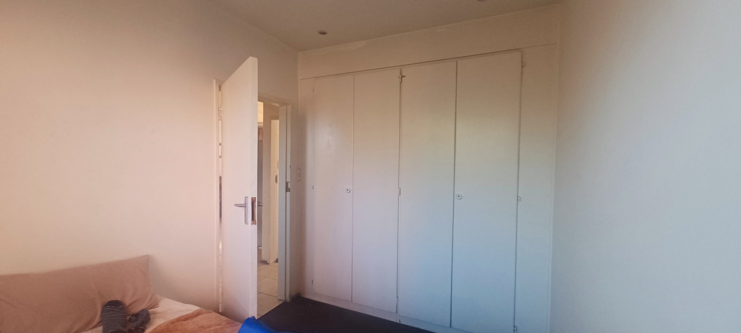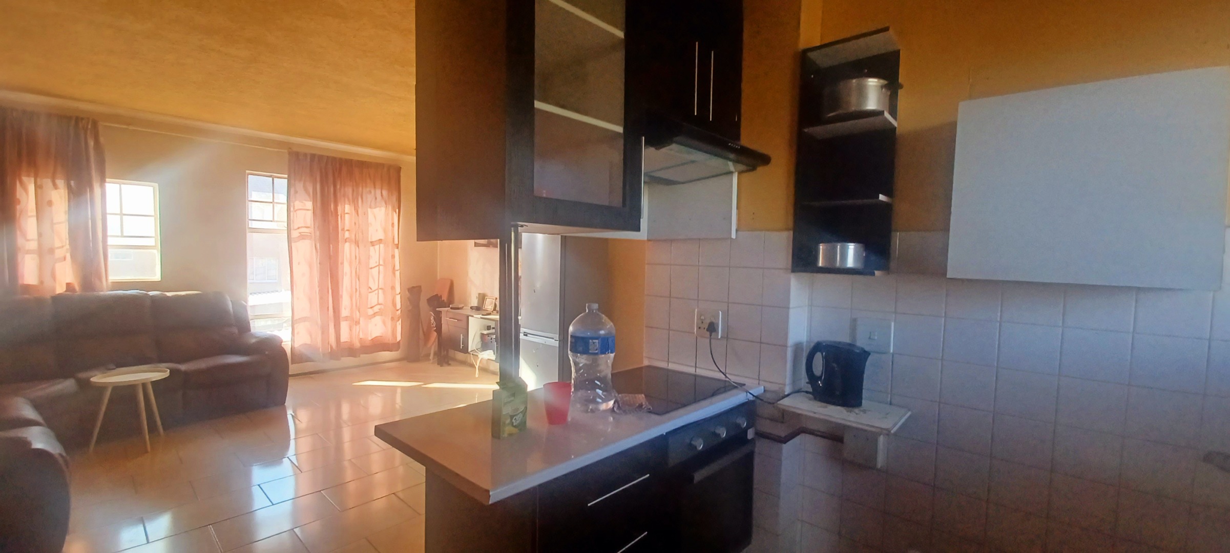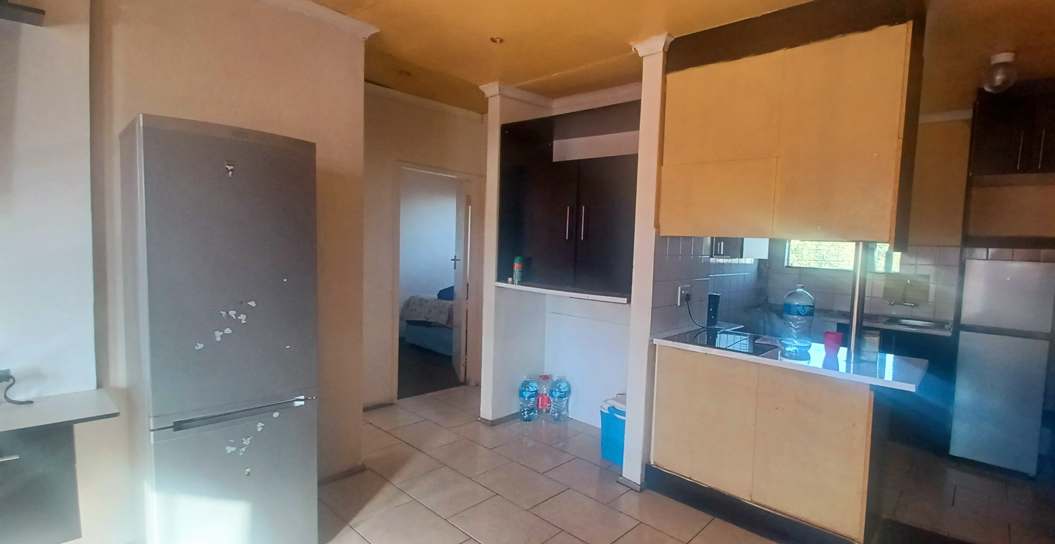 This 60 sqm apartment in Lindhaven, Roodepoort, presents a functional living space ideal for those seeking a property with potential. The combined living and kitchen area features modern dark cabinetry and a built-in microwave, complemented by clean tiled flooring throughout. Ample natural light fills the space, creating a bright and inviting atmosphere for daily living. The layout is designed for practicality, offering a comfortable environment for residents. The residence comprises two bedrooms, each benefiting from natural light and equipped with built-in storage solutions, enhancing functionality. Window security bars are present for added peace of mind. The single bathroom includes a bathtub and tiled walls, providing essential amenities. While functional, this area offers an opportunity for modernisation to align with contemporary tastes and standards. Situated within a multi-story residential building, the property includes access to covered parking facilities. The exterior features a secured perimeter with metal fencing and electric wiring, contributing to resident safety. The building's facade, while showing signs of age, offers a foundation for potential aesthetic improvements. Mature trees on the property add a touch of greenery to the surroundings. Lindhaven is a well-established suburb in Roodepoort, offering convenient access to local amenities and transport routes. This location provides a practical setting for those seeking a residential property with potential. Key Features: * Two bedrooms, one bathroom * 60 sqm floor size * Modern dark kitchen cabinetry * Tiled flooring throughout * Ample natural light * Built-in bedroom storage * Secured perimeter with electric wiring * Covered parking available