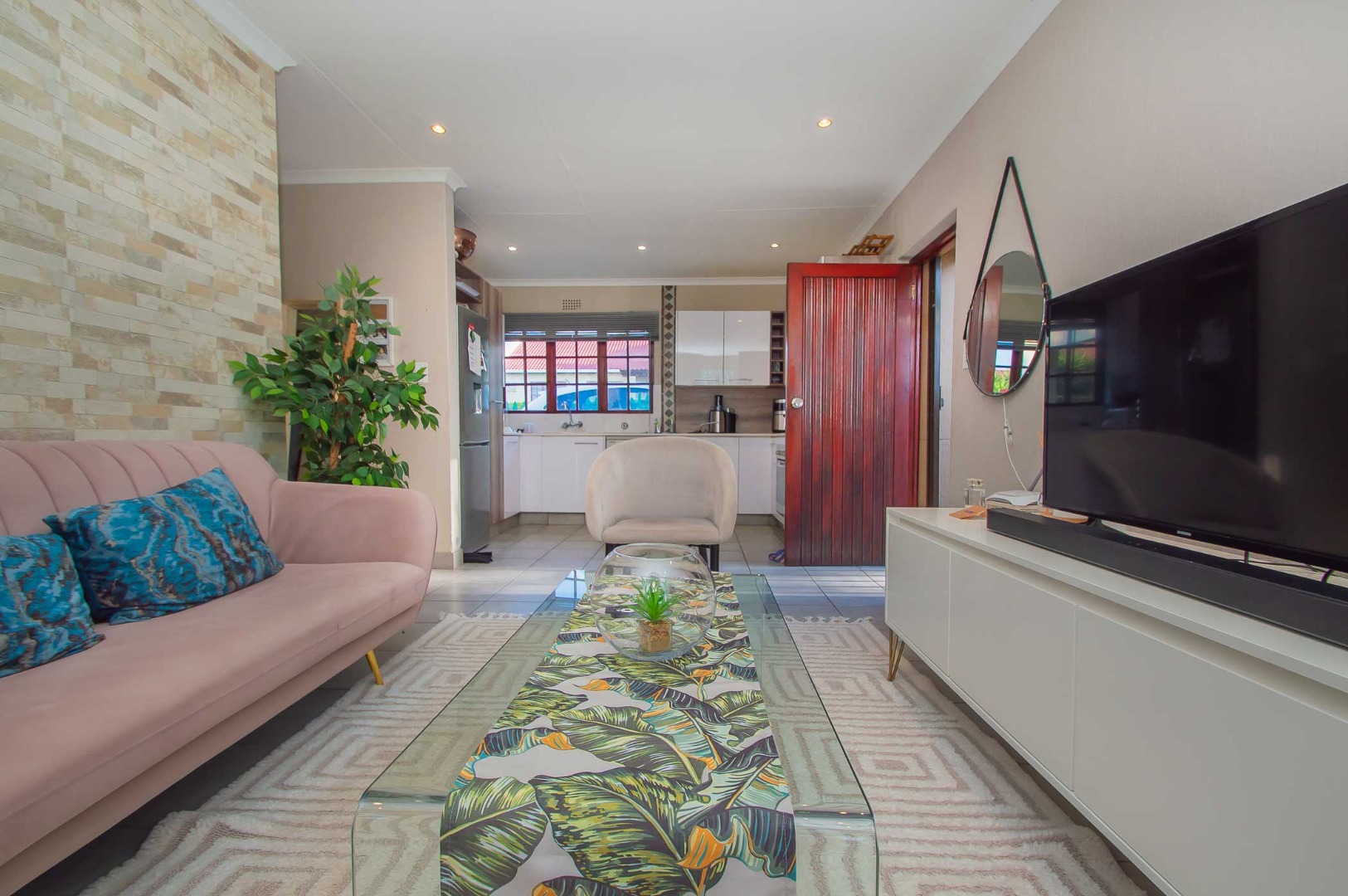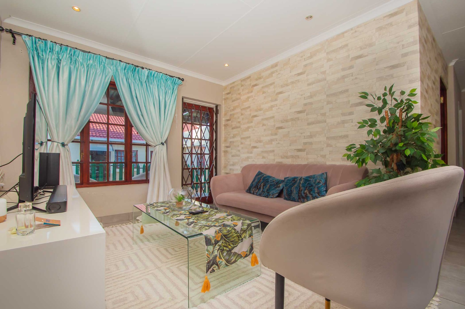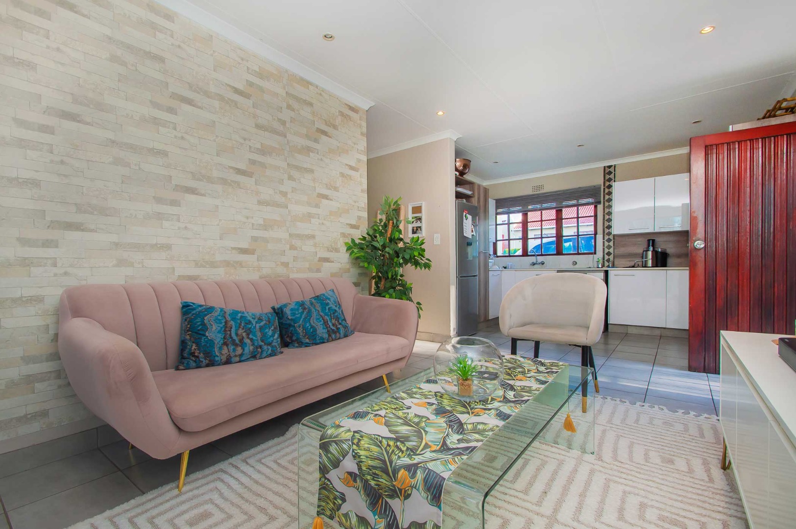 Step inside to discover an inviting open plan lounge perfect for relaxing or entertaining guests. The modern kitchen boasts ample cupboard space and enough room for a dining area, making family meals a breeze. Enjoy the fresh air on the covered patio overlooking a neat, small garden, ideal for outdoor gatherings or simply unwinding after a long day. This lovely townhouse features 3 bedrooms or 2 bedrooms and a study, along with a full bathroom for your convenience.