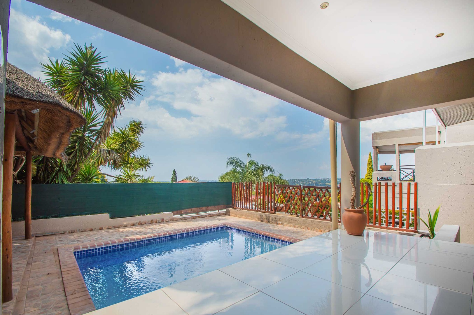 The heart of this home is its seamless open plan design, featuring a contemporary kitchen that flows effortlessly into the lounge and dining area. Perfect for entertaining, the space extends through sliding doors to a covered patio. Step outside to your private haven, where the covered patio overlooks a sparkling swimming pool and breathtaking views, making it the ideal spot for summer gatherings or peaceful relaxation.