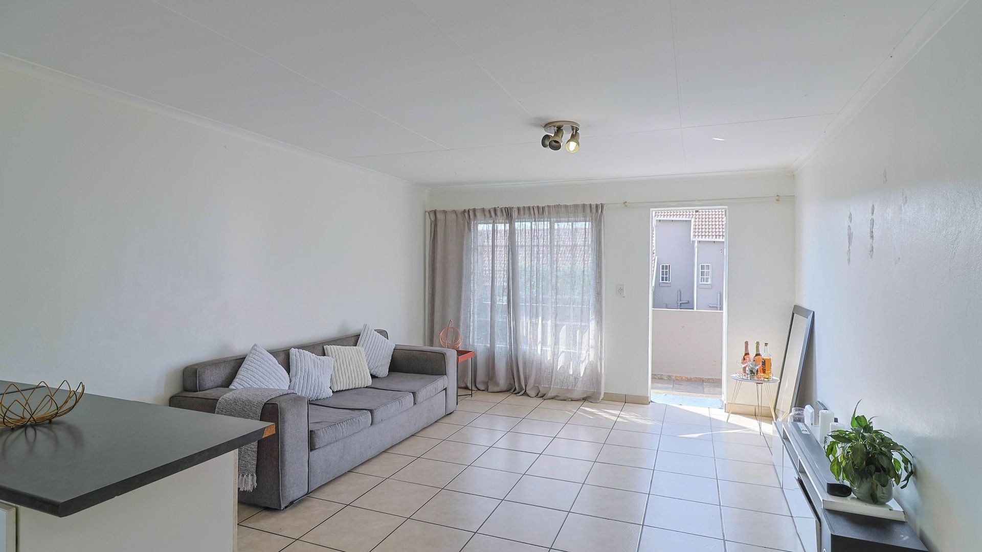 Located on the first floor of a secure, access-controlled complex, this unit is tiled throughout, combining practicality with a sleek, modern finish. The open-plan layout is designed to maximize both light and space, connecting the kitchen, dining, and lounge area effortlessly – perfect for casual living or hosting a few friends.