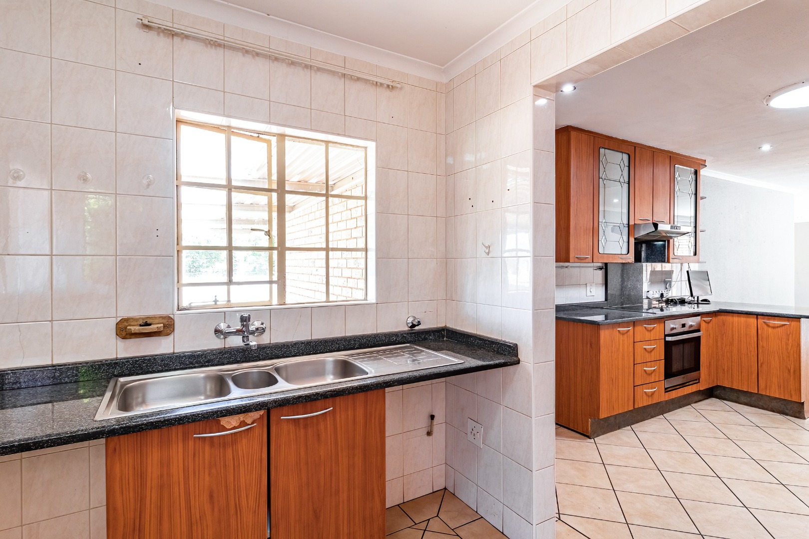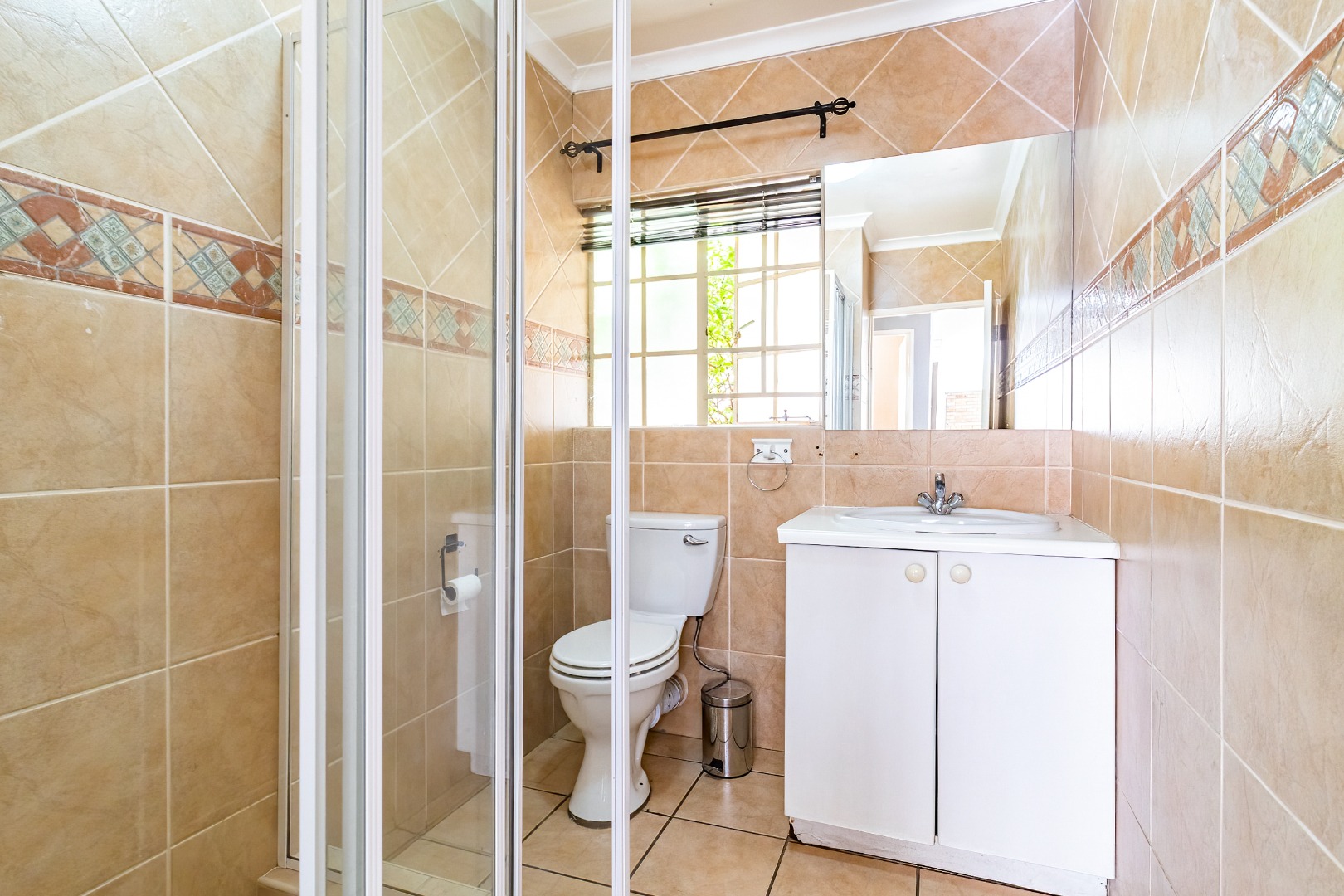 Welcome to this beautiful lock-up-and-go home, ideally situated in the heart of Radiokop. This spacious property offers three bedrooms, including a main bedroom with an en-suite full bathroom, while the other two bedrooms share a bathroom with a shower.