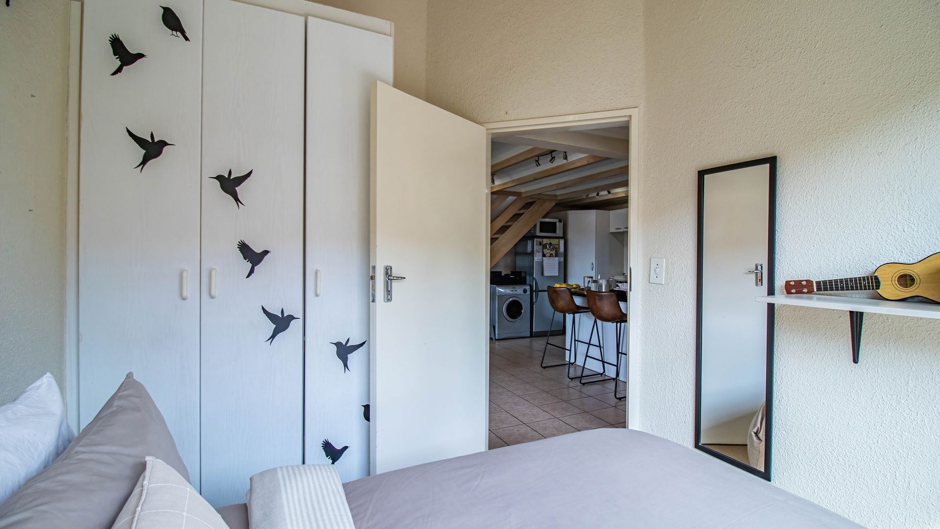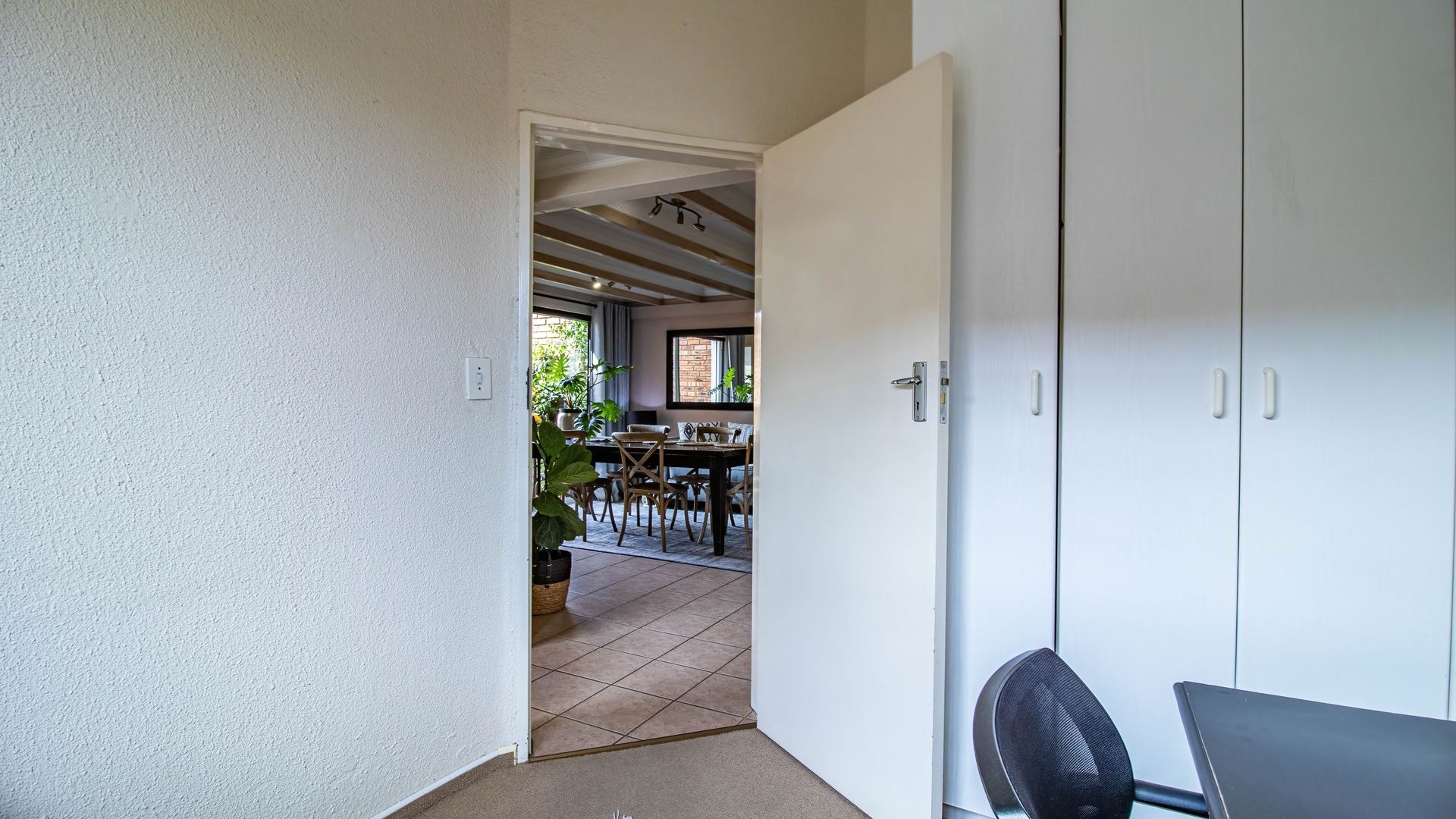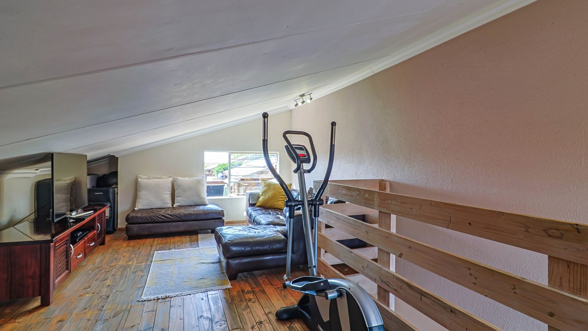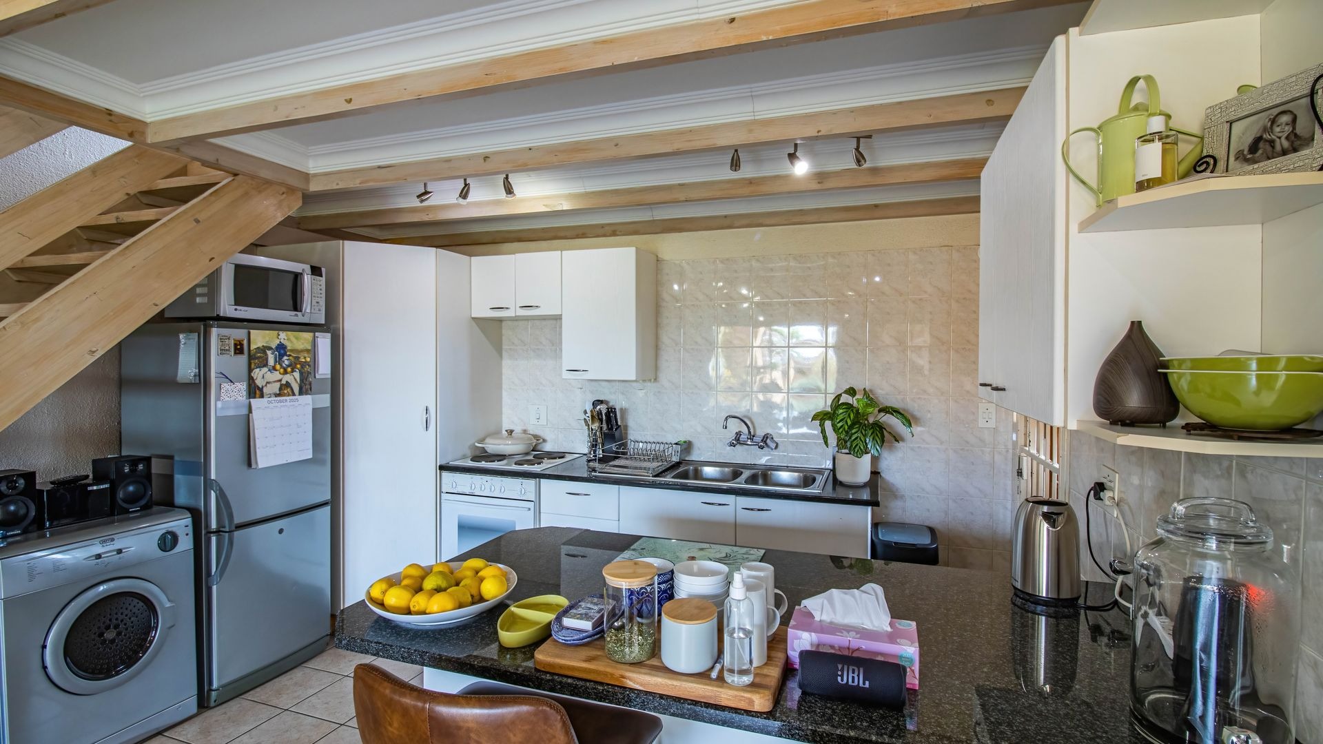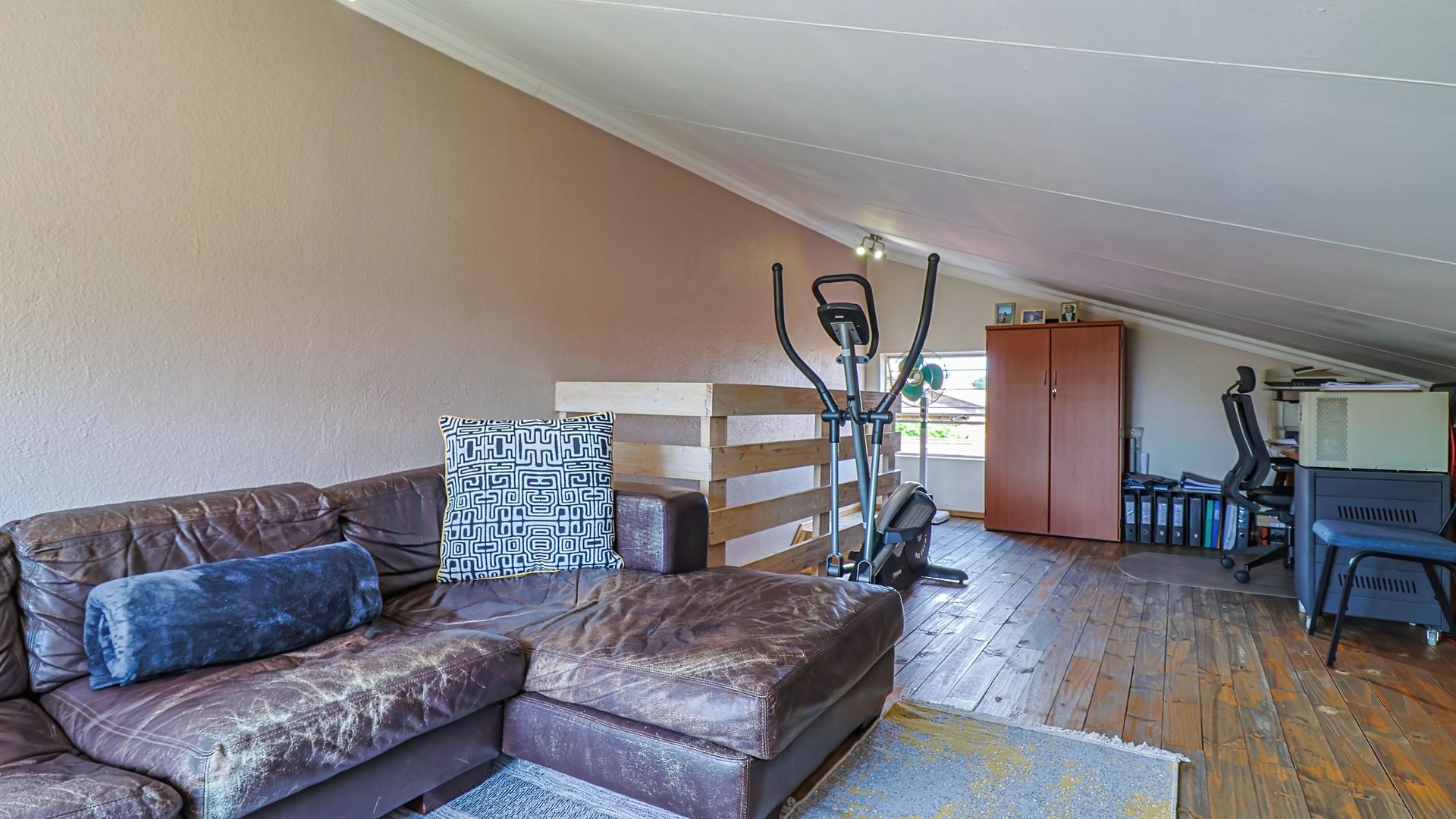 Discover comfortable living in this charming 106 sqm home located within a secure complex in Radiokop, Roodepoort. This property offers a blend of functional design and inviting spaces, perfect for a modern lifestyle. The open-plan layout seamlessly connects the living, dining, and kitchen areas, creating a spacious and interactive environment. Character is added by exposed wooden ceiling beams and track lighting, while the kitchen features white cabinetry with granite countertops, a practical island with seating, and space for your essential appliances. A natural wood staircase provides access to the upper level. Upstairs, you will find a versatile loft — perfect as an additional lounge, extra guest bedroom, home office, gym, or whatever your heart desires.