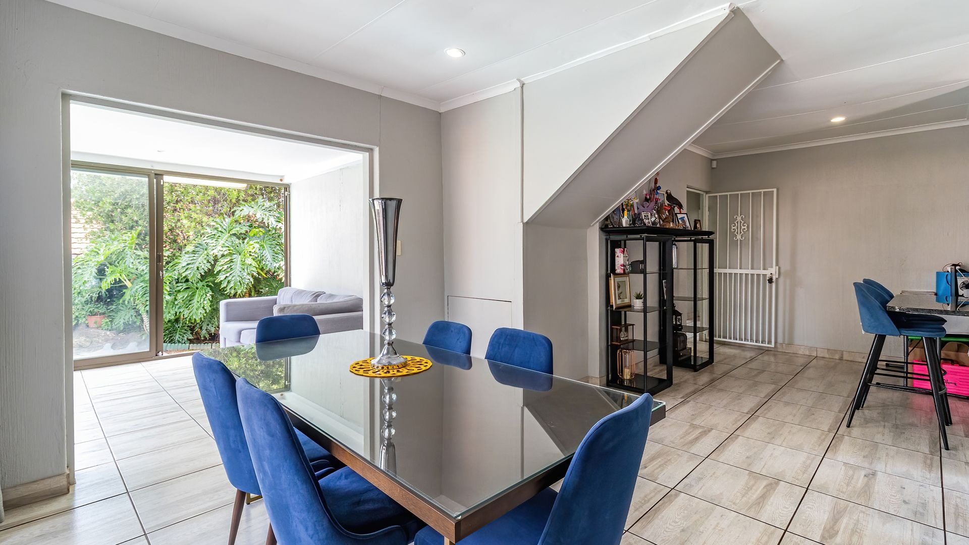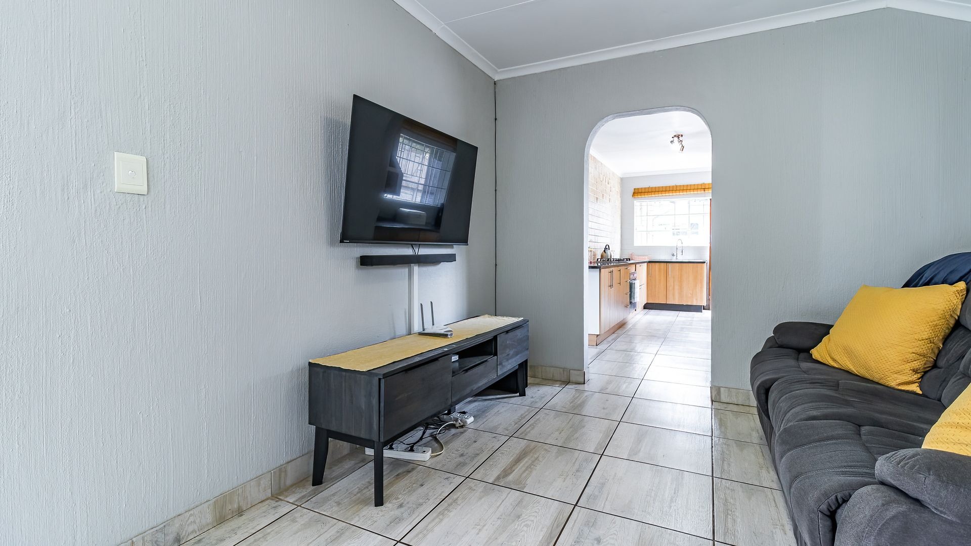 Discover an exquisite suburban sanctuary nestled in the heart of Radiokop, Roodepoort, offering a lifestyle of exceptional comfort, space, and versatility. This impressive residence spans approximately 320 sqm under roof on a generous 850 sqm erf, showcasing a modern design with neutral tones and durable tiled flooring throughout, creating a seamless and welcoming flow.