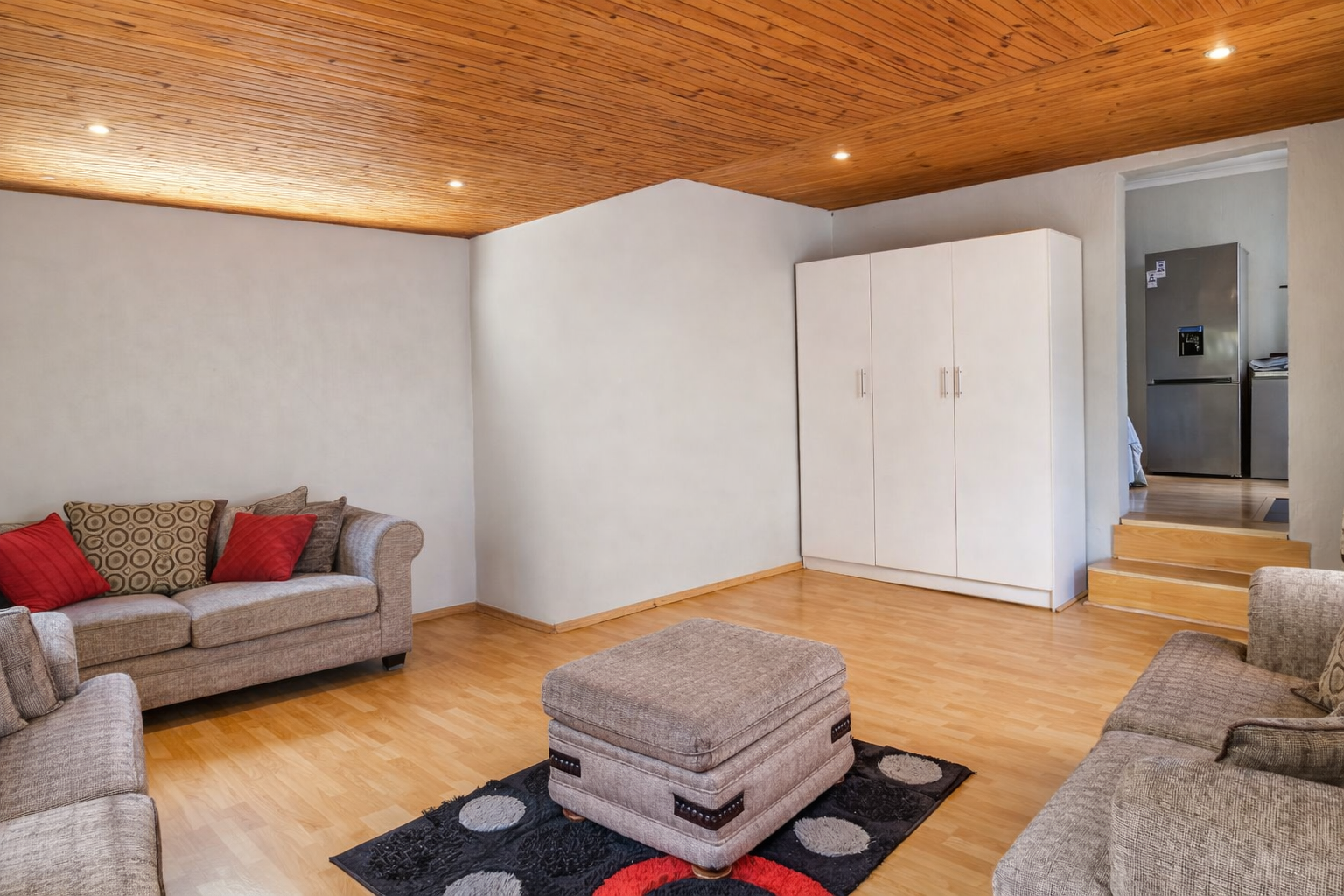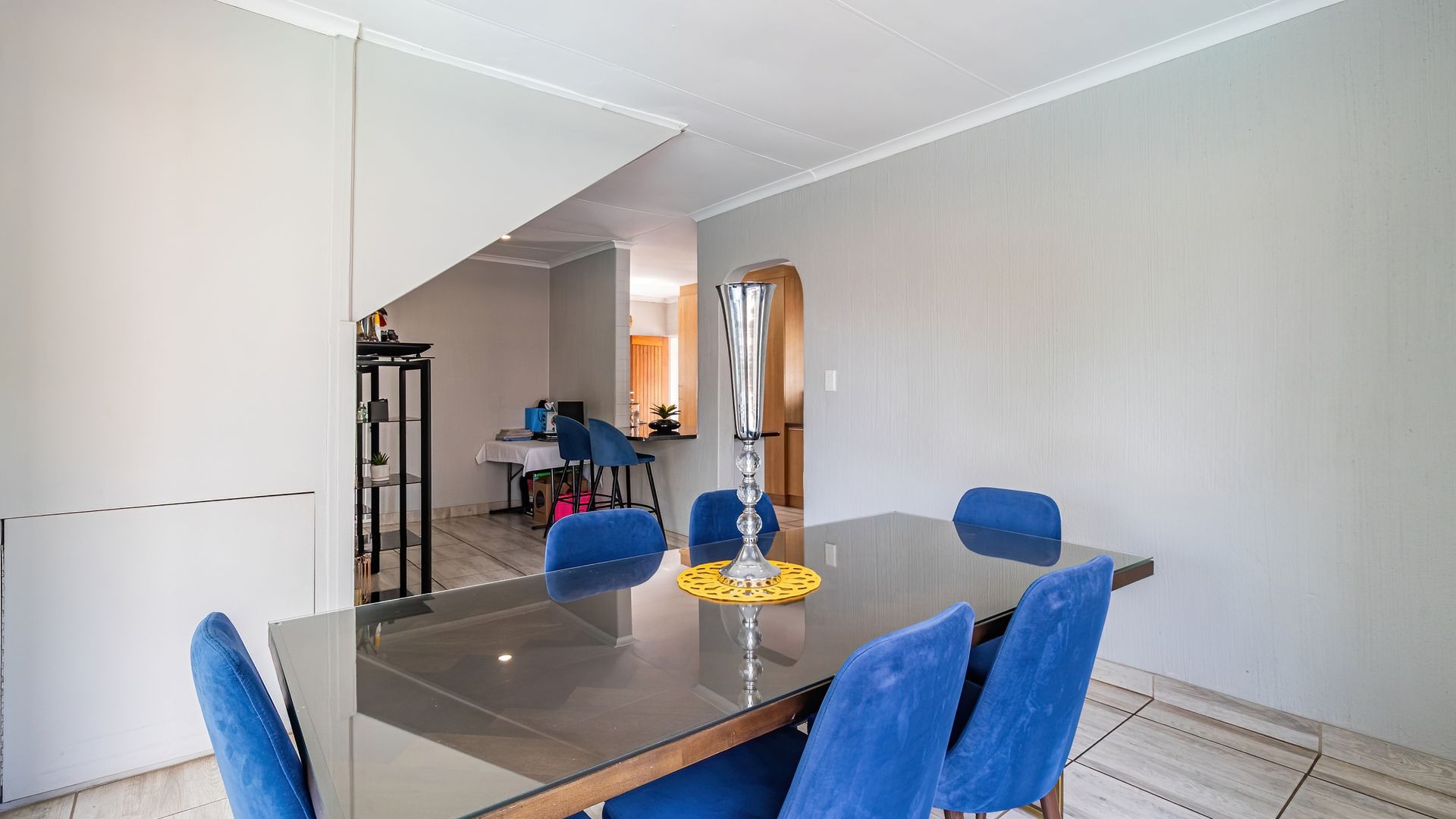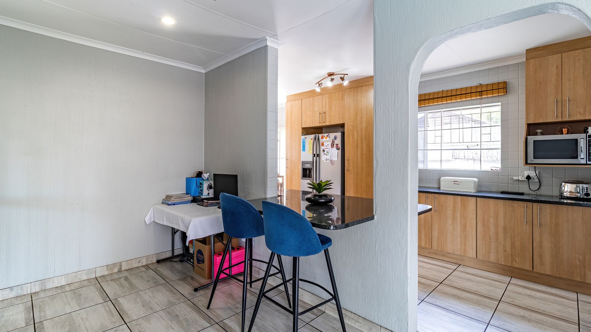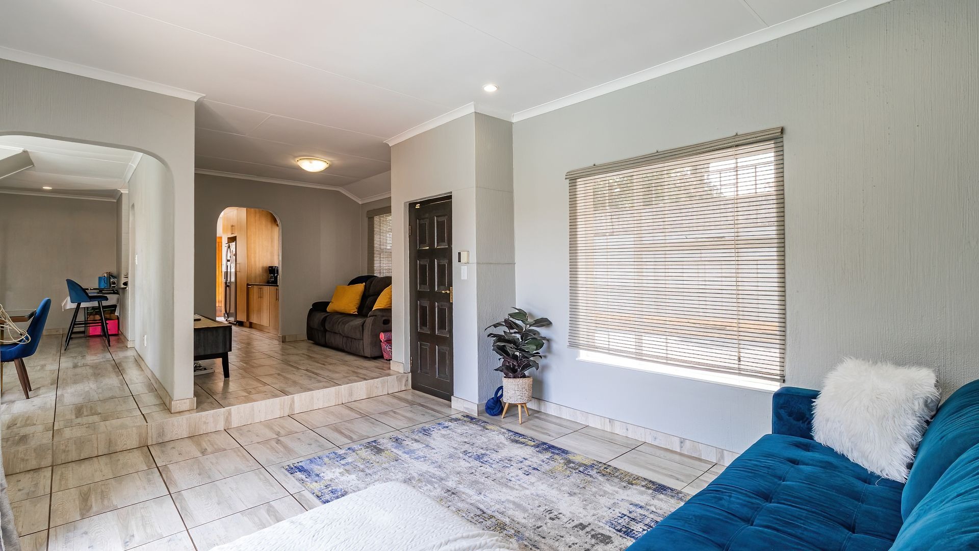 Discover an exquisite suburban sanctuary nestled in the heart of Radiokop, Roodepoort, offering a lifestyle of exceptional comfort, space, and versatility. This impressive residence spans approximately 320 sqm under roof on a generous 850 sqm erf, showcasing a modern design with neutral tones and durable tiled flooring throughout, creating a seamless and welcoming flow.