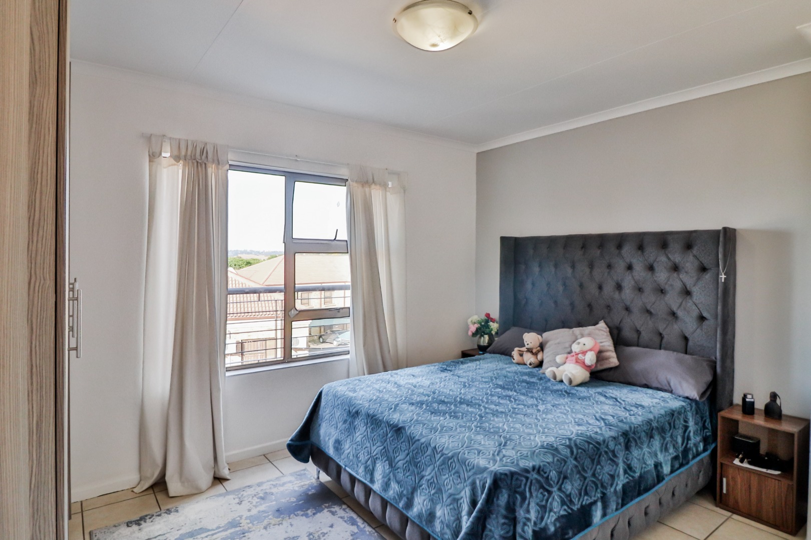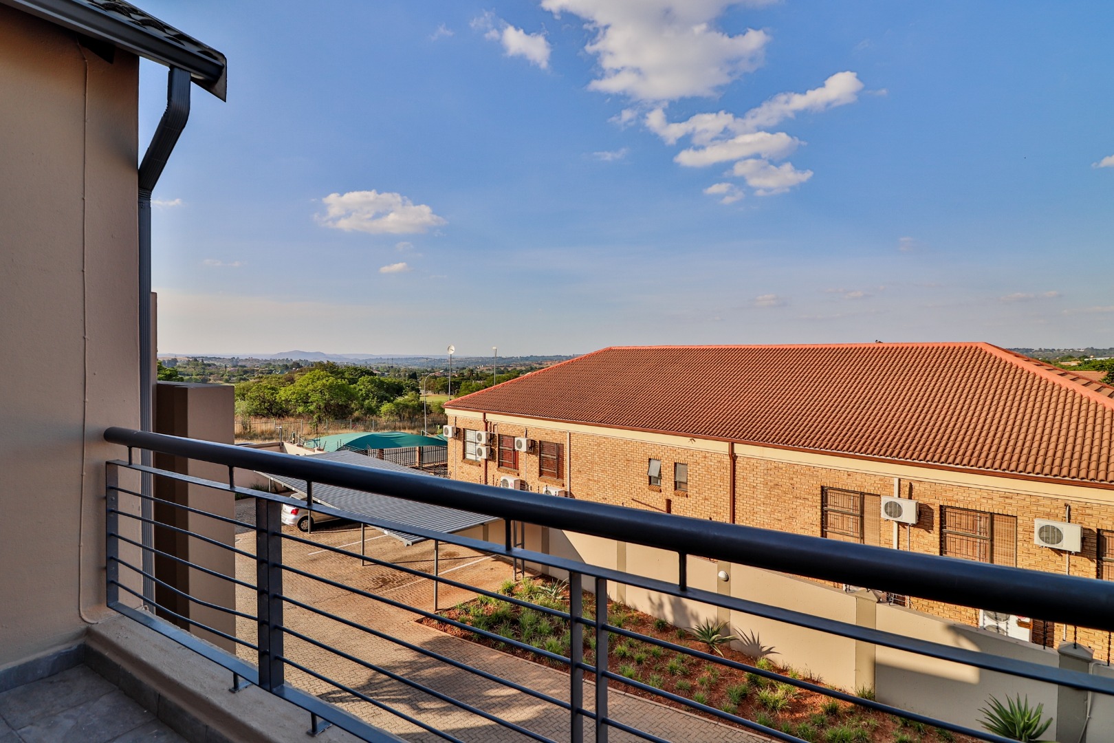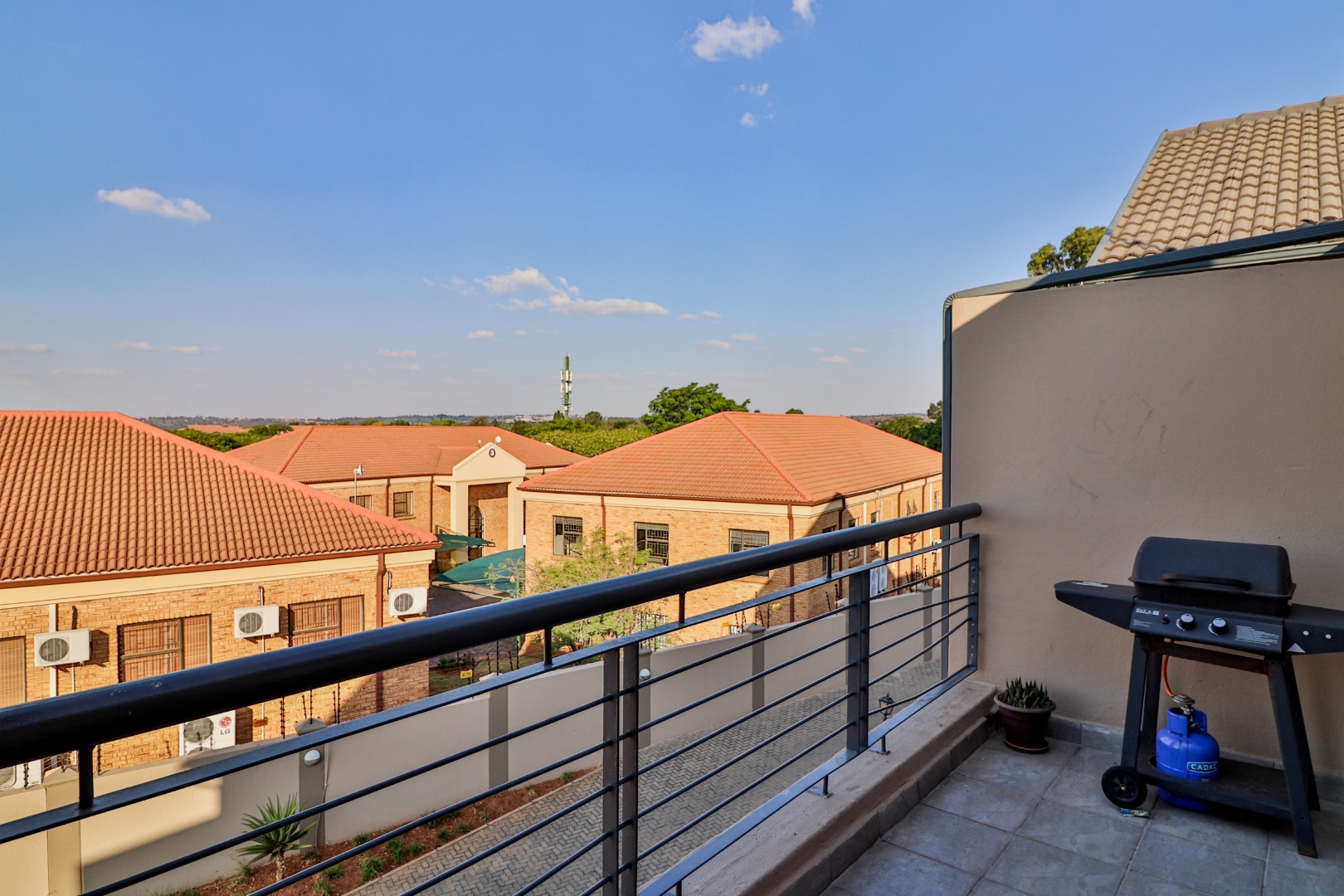 Outside, you've got your own private balcony, ideal for those weekend braais! Enjoy scenic distant views of Ruimsig Golf course from here. The complex also offers fantastic communal amenities, including a sparkling clean swimming pool and an extensive built-in braai area with stone seating. Plus, there's a clubhouse for residents to enjoy.