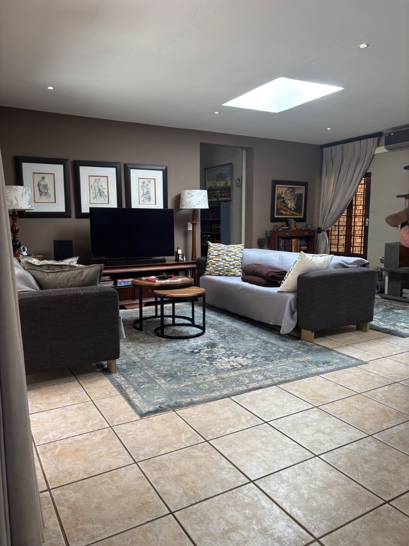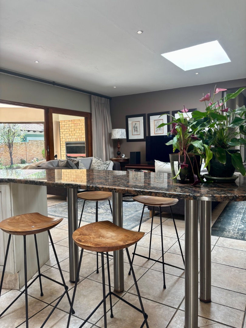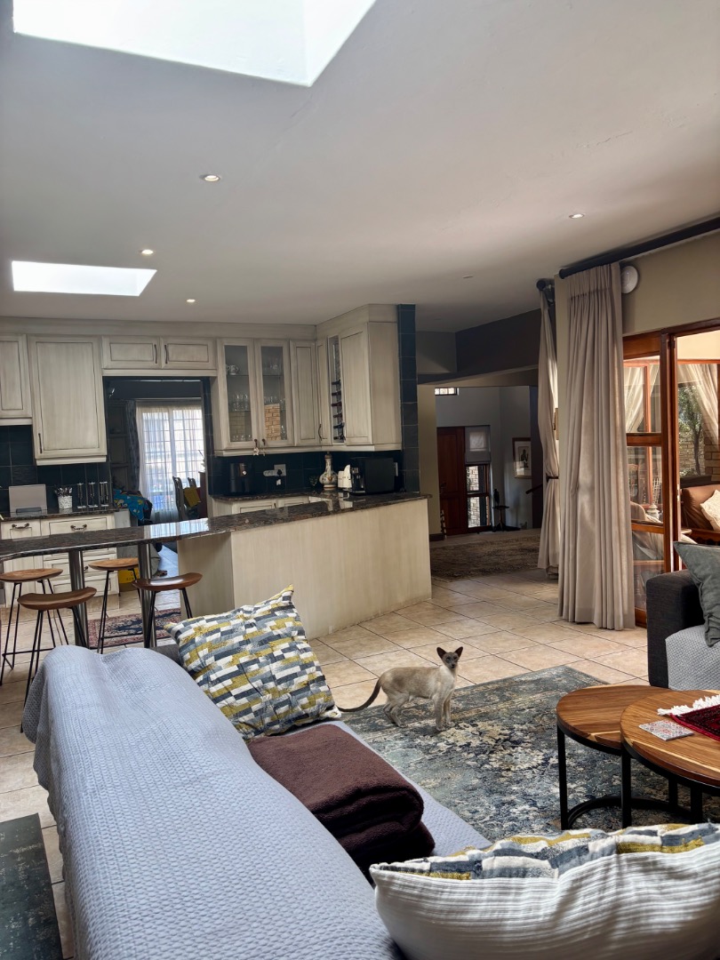 This easy-flow family home is immaculately loved. Situated neatly on a 857m2 stand in the heart of Two Rivers Country Estate, the home offers 3 separate Family rooms, all romantically positioned around the heart of the home- a stunning French style kitchen.