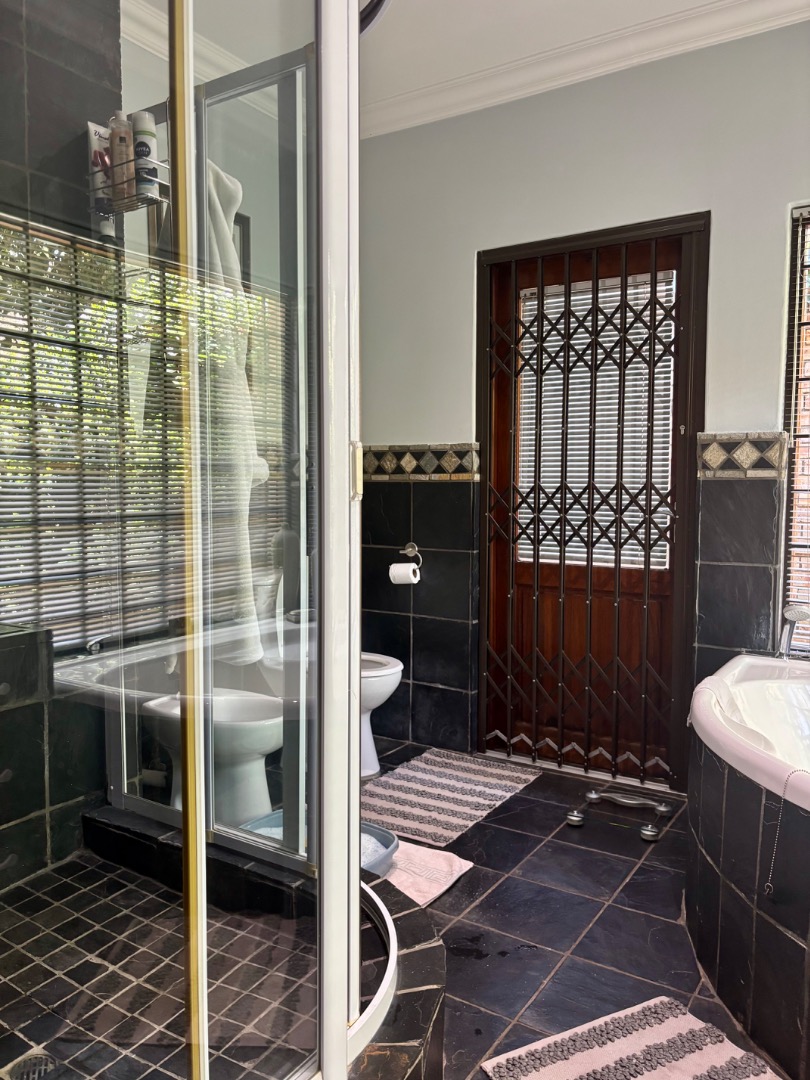 On the other side of the family areas, another guest bedroom as well as a dream office for the executive in the home. This office leads onto the patio with stagger doors and is also fitted with an aircon. a lovely guest toilet completes all requirements.