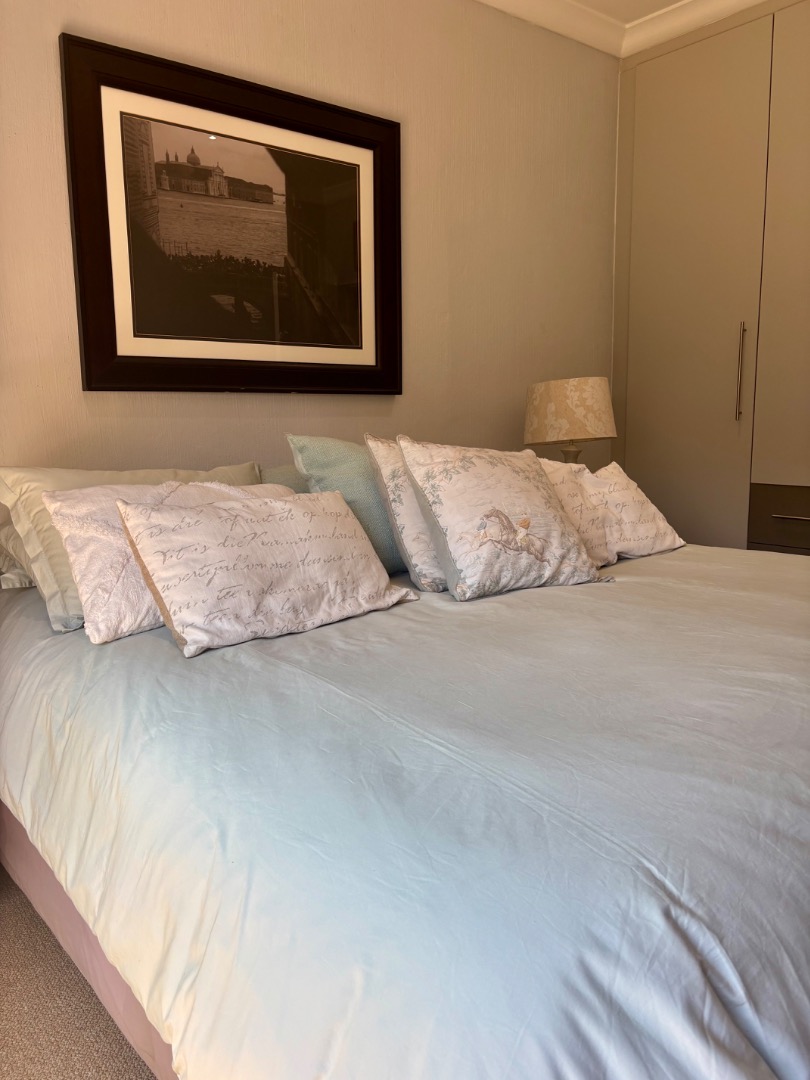 The main bedroom caters for an extra length king size bed with the greatest ease, ample walk-in cupboard space and a full bathroom en-suite as well as airconditioner unit.
