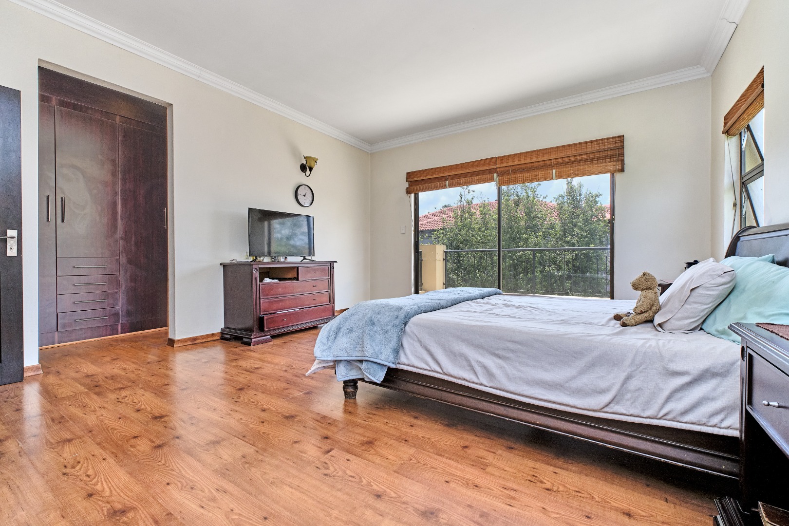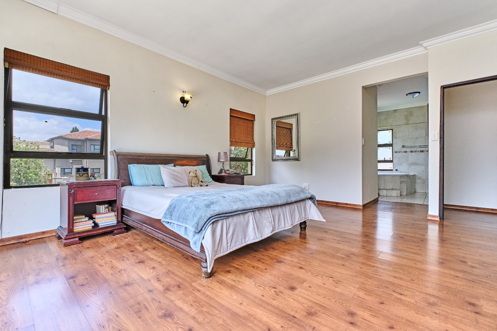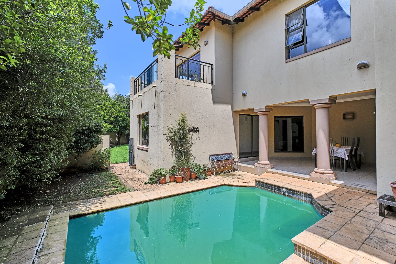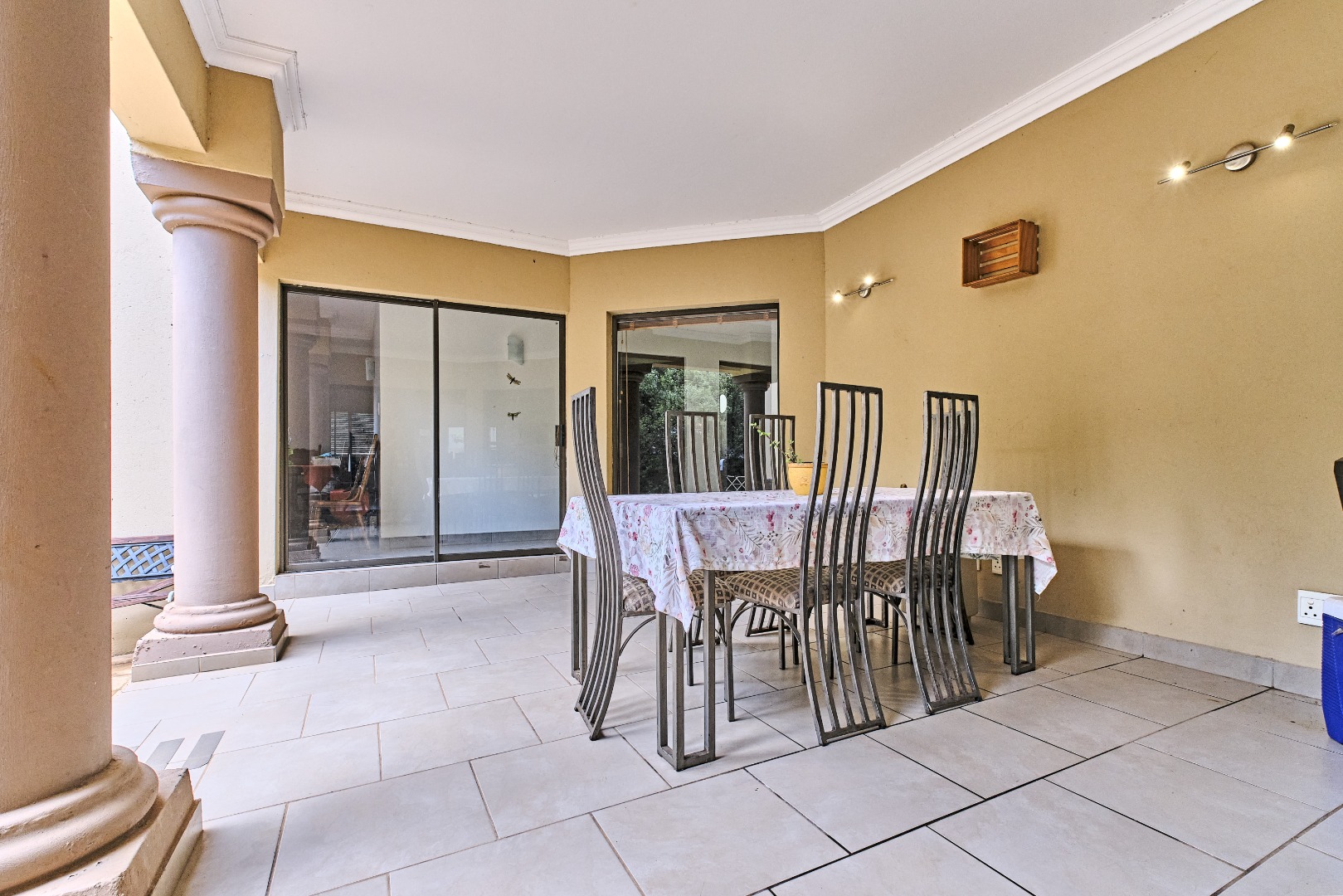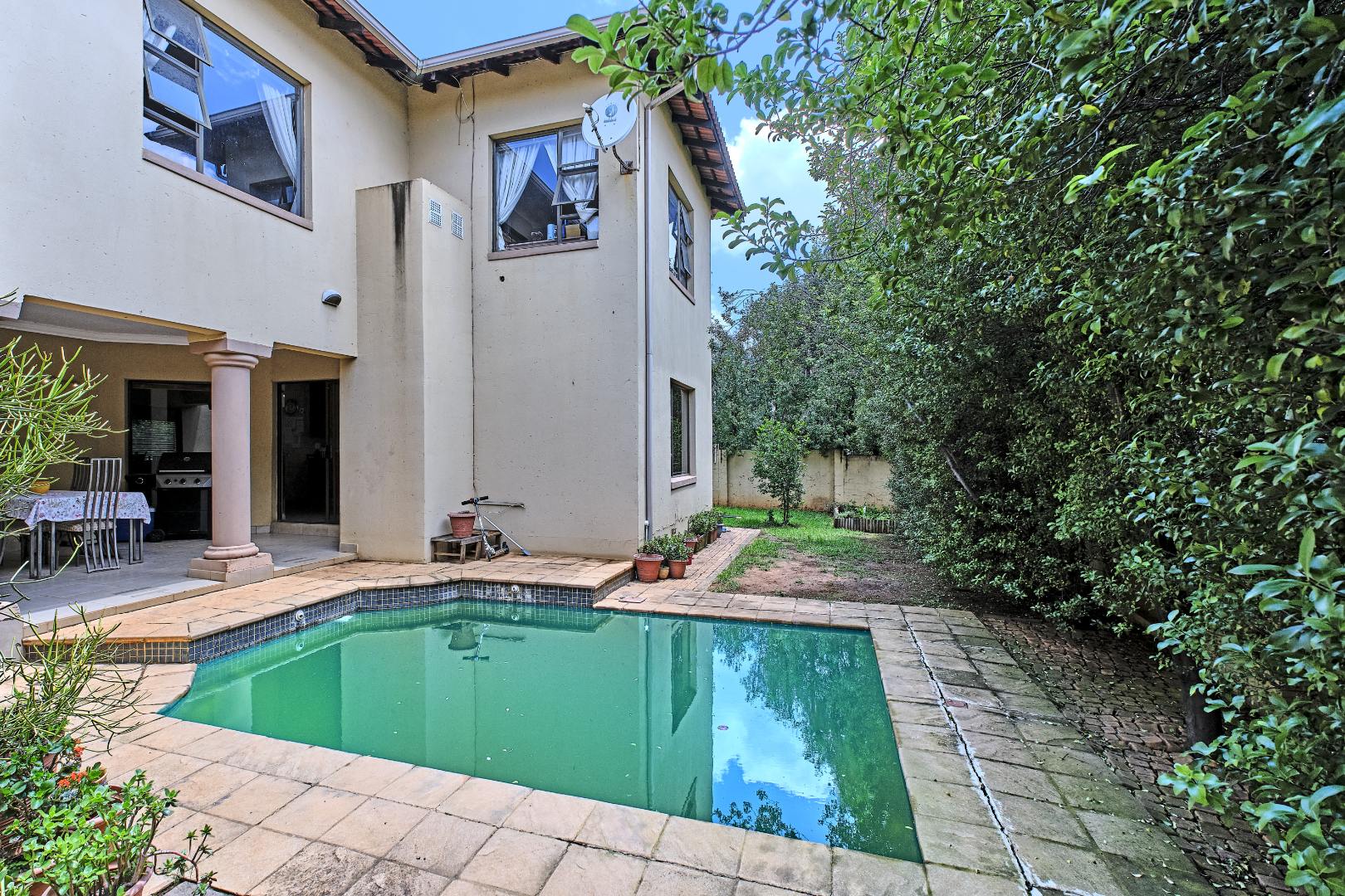Set on an expansive 858 sqm erf, the property extends its appeal outdoors with a refreshing swimming pool, a welcoming covered patio, with a built-in gas braai, perfect for outdoor entertaining. The established garden provides a serene backdrop. Practical amenities include three garages and four additional parking spaces, catering to multiple vehicles. For added convenience, staff quarters are also available. Residing within a secure estate, with access to the golf course for members, residents benefit from 24-hour security and controlled access, ensuring peace of mind. Fibre connectivity is also available.