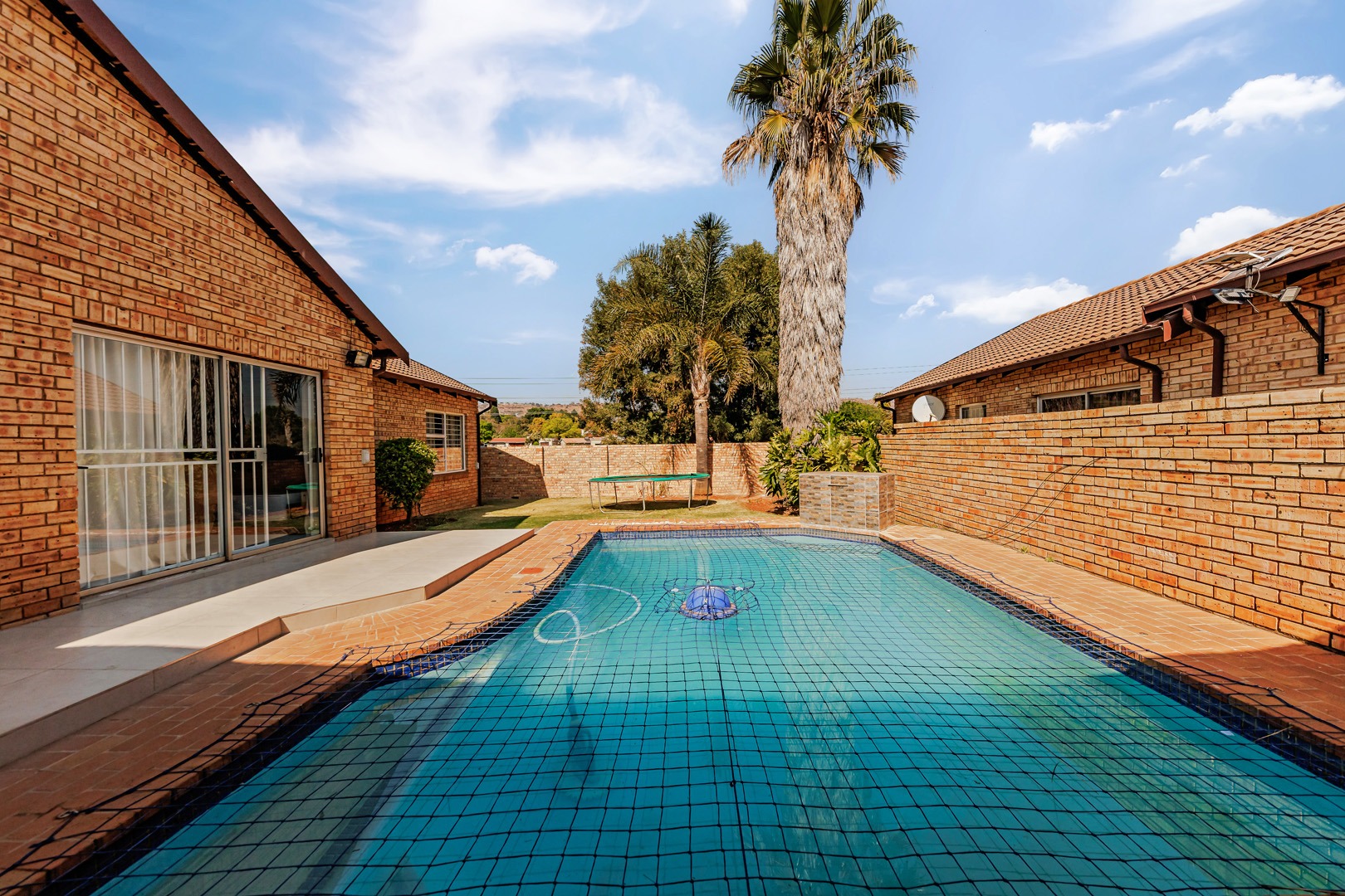 The open concept of the living room offers well deserved natural light that floods the entire space. This living room has sufficient space for a four seater dining area and a family sized sofa. It also opens out to a well sized yard with a sparkling pool and a fountain feature that makes swimming something special to look forward to. A spacious lapa area where you can host barbecues that will leave your neighbours envious. The double car garage leads you to the living room entrance making it convenient to enter your home. A simplex with its own twist for sure!… Small dogs allowed with body corps permission. A bonus of an alarm system linked to armed response and beams around the unit. Ready to move in without hassles of home flipping?
