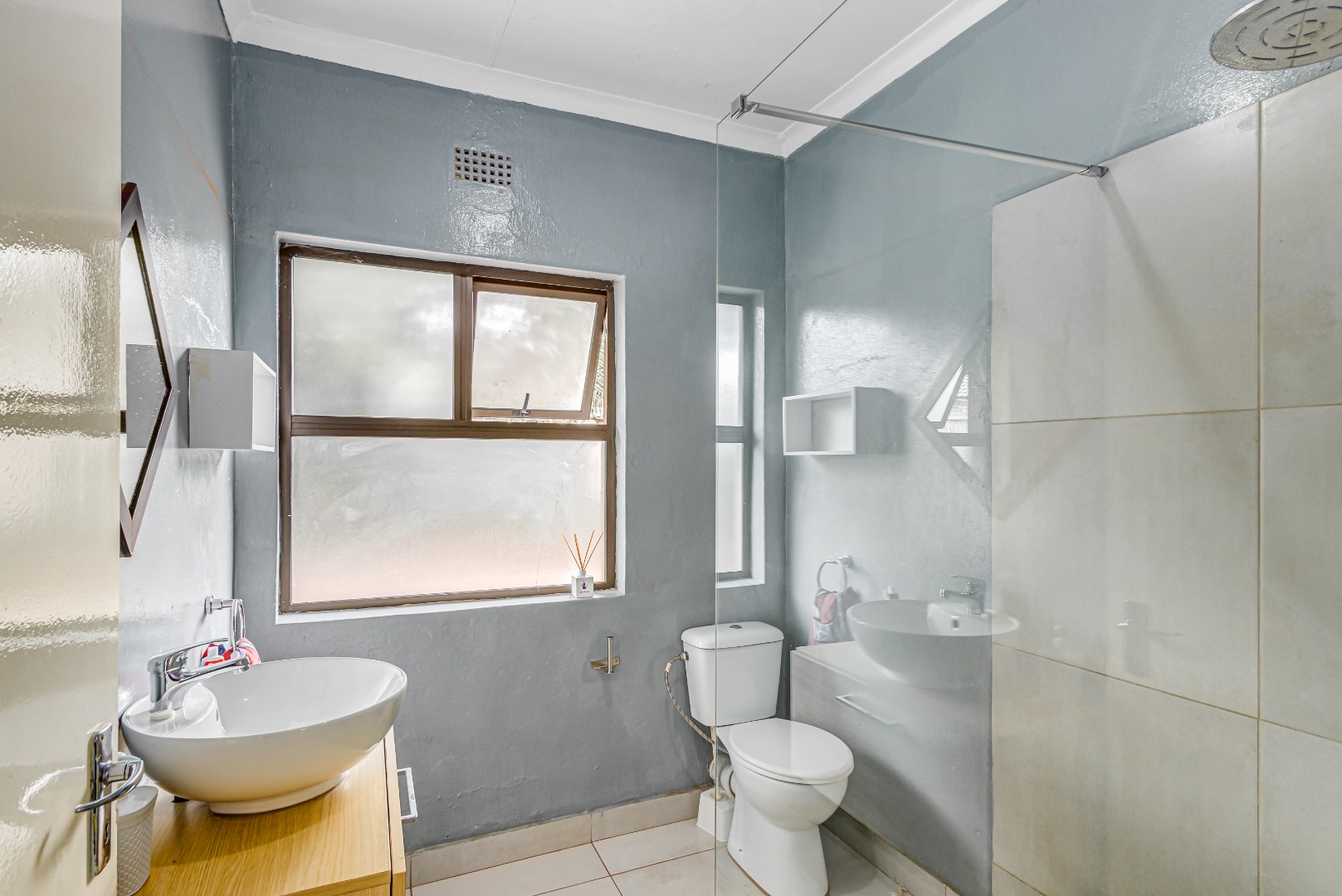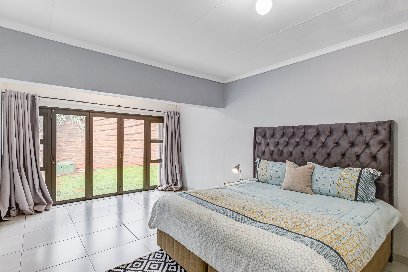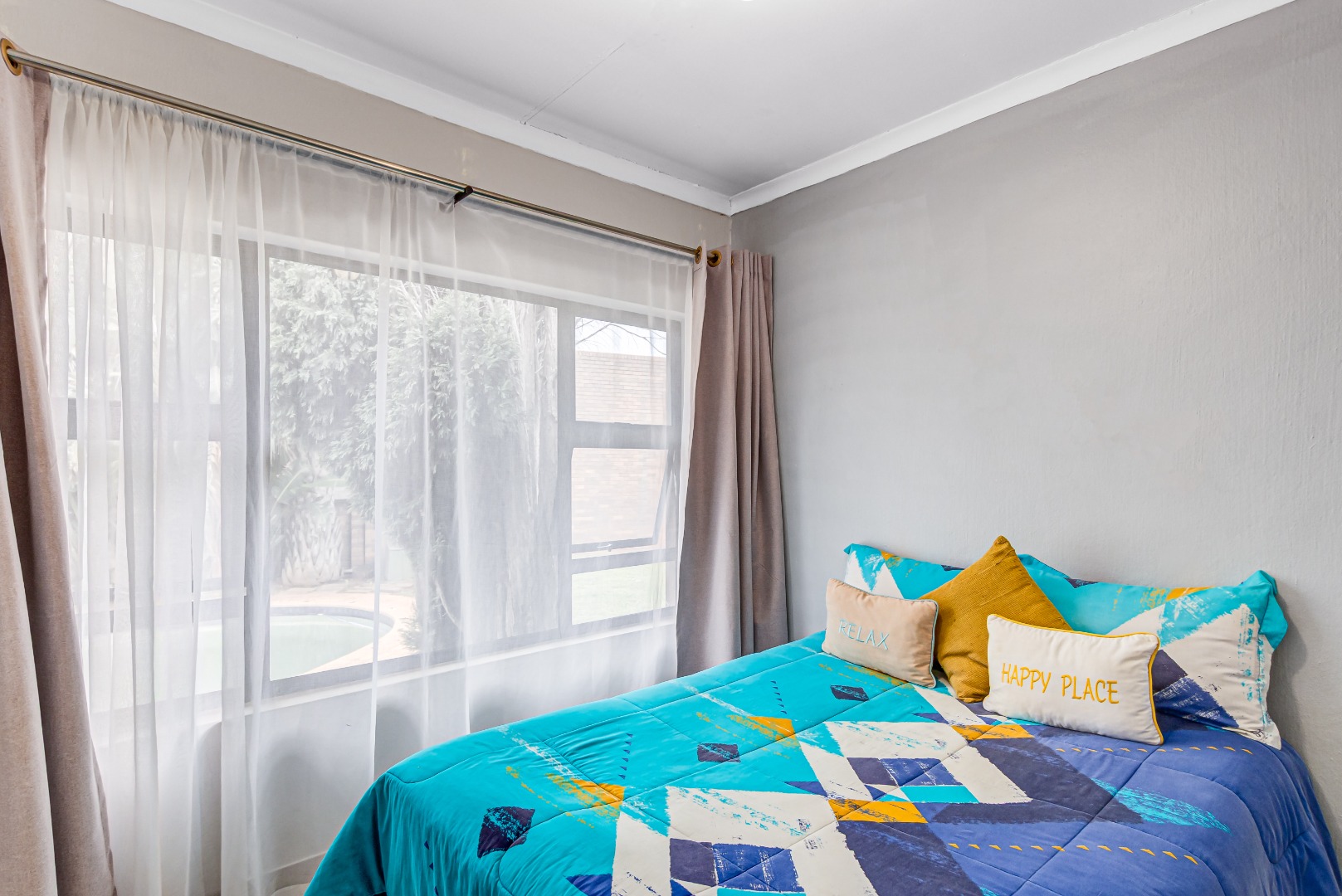 The spacious main bedroom features an en-suite bathroom and sliding doors that open onto the garden and pool area. Two additional bedrooms share a neat family bathroom. A separate study, ideal as a work-from-home office or teen pad, and an *en-suite guest suite* complete the flexible layout.