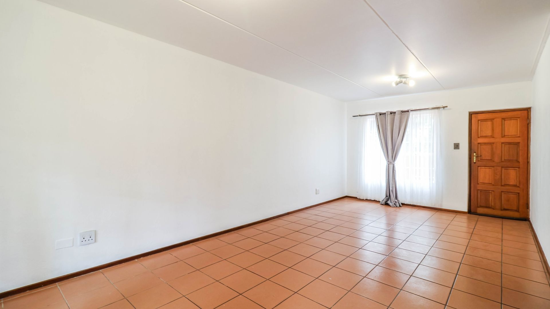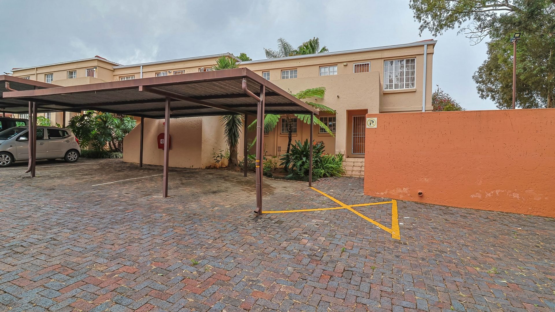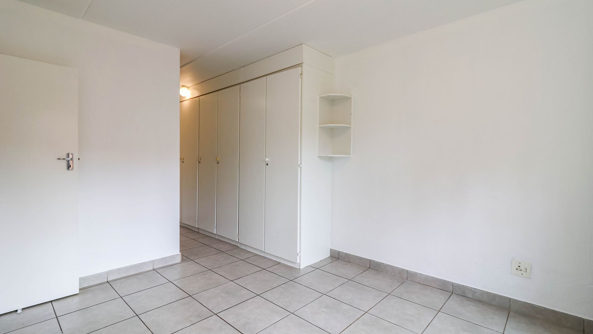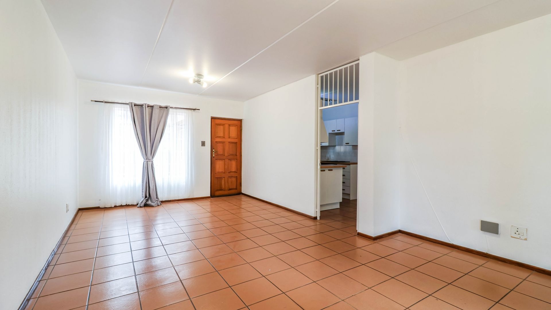 Entrance with security gate. Tiled lounge/dining area with glass door to covered tiled patio with 2 dropdown blinds . Spacious kitchen on. Space for a fridge, 2 appliances and microwave, double sink, under-counter oven, solid hob. Lots of cupboards. Large main bedroom (tiled) 7 BIC, TV bracket. MES with loo, basin and shower. 2nd bedrooom (tiled) 2 BIC and shelving. 2nd bathroom, with loo, vanity and bath. Linen cupboard. Courtyard with washline. Double electric fencing on perimeter. Single carport. Lots of visitors parking. Pool, lapa in complex. Pet friendly for dogs and cats.