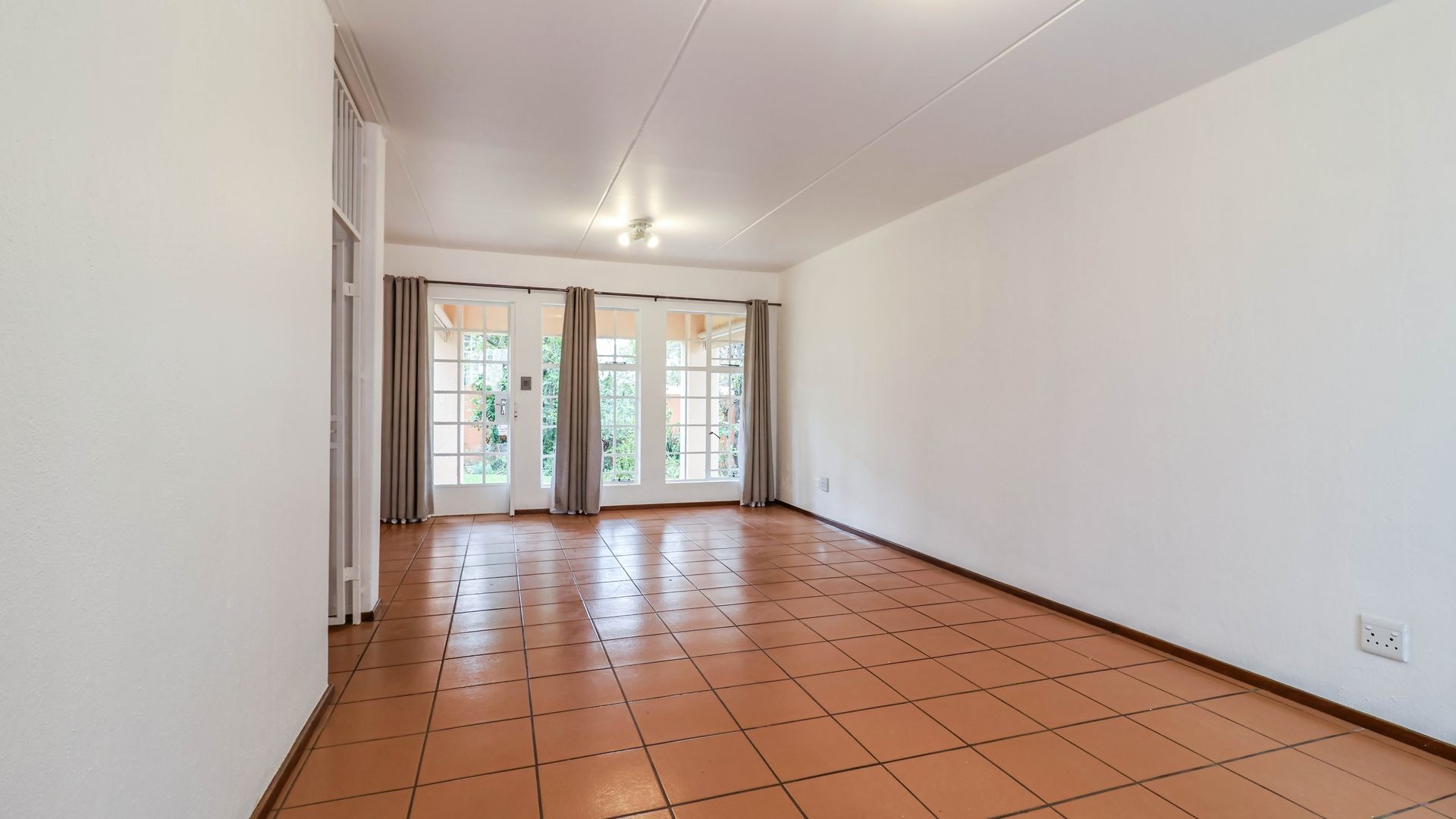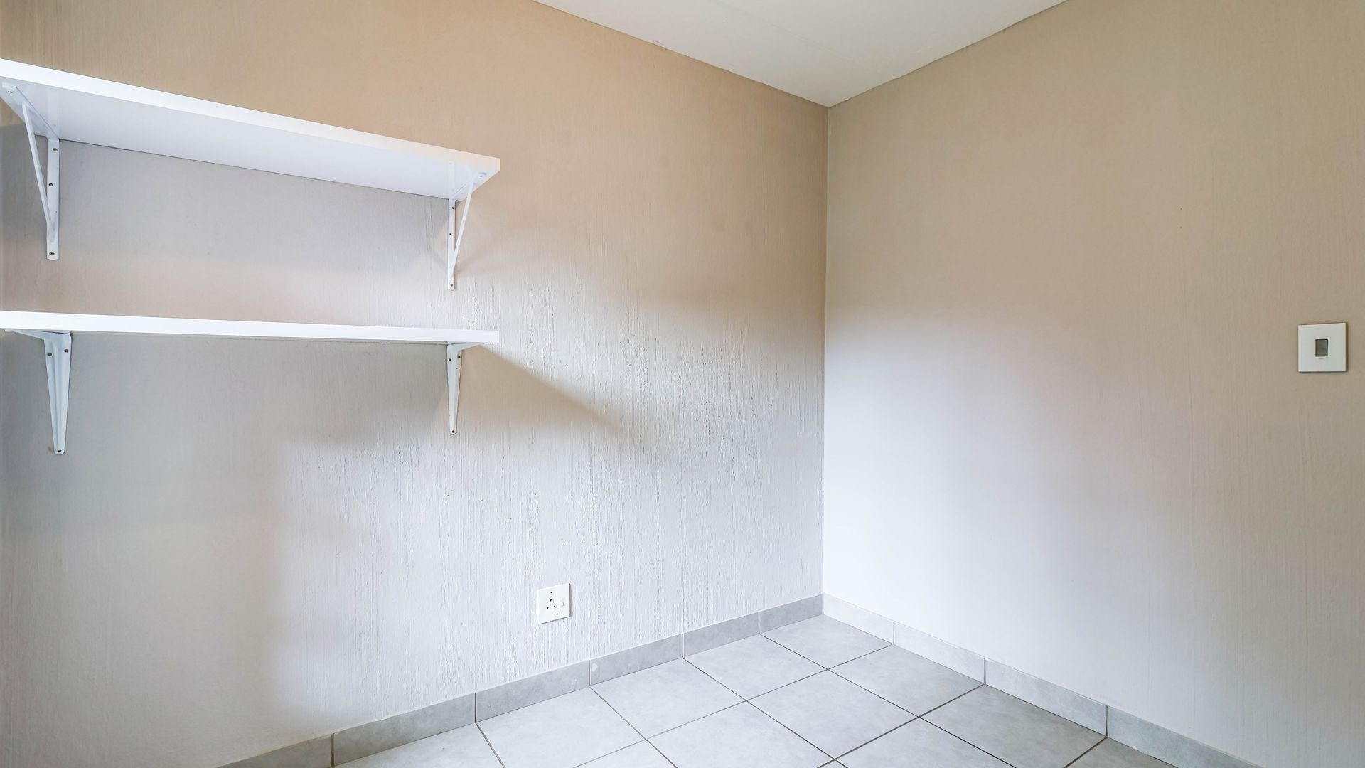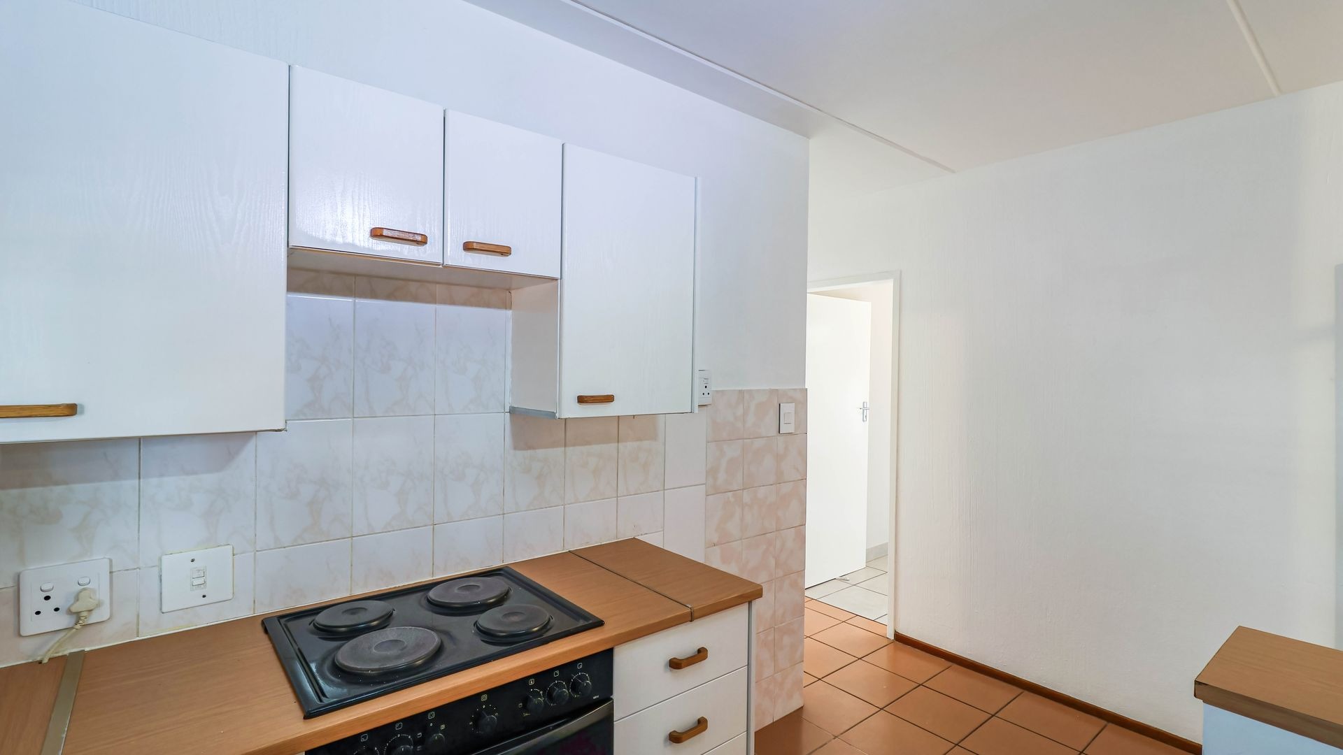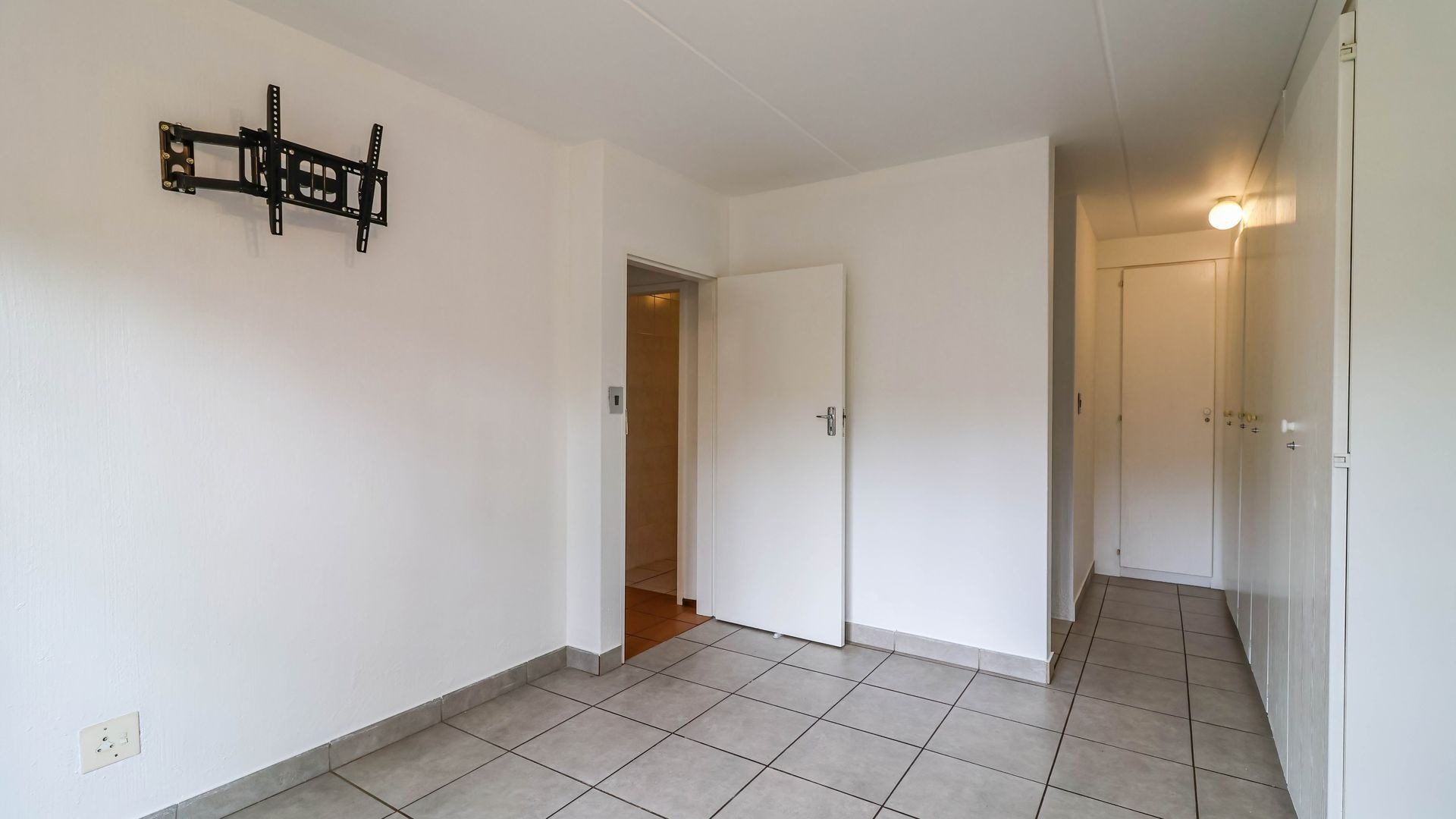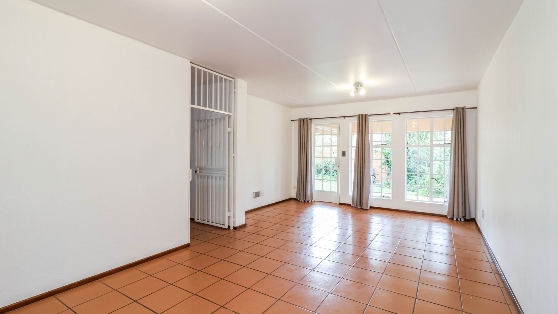 Entrance with security gate. Tiled lounge/dining area with glass door to covered tiled patio with 2 dropdown blinds . Spacious kitchen on. Space for a fridge, 2 appliances and microwave, double sink, under-counter oven, solid hob. Lots of cupboards. Large main bedroom (tiled) 7 BIC, TV bracket. MES with loo, basin and shower. 2nd bedrooom (tiled) 2 BIC and shelving. 2nd bathroom, with loo, vanity and bath. Linen cupboard. Courtyard with washline. Double electric fencing on perimeter. Single carport. Lots of visitors parking. Pool, lapa in complex. Pet friendly for dogs and cats.