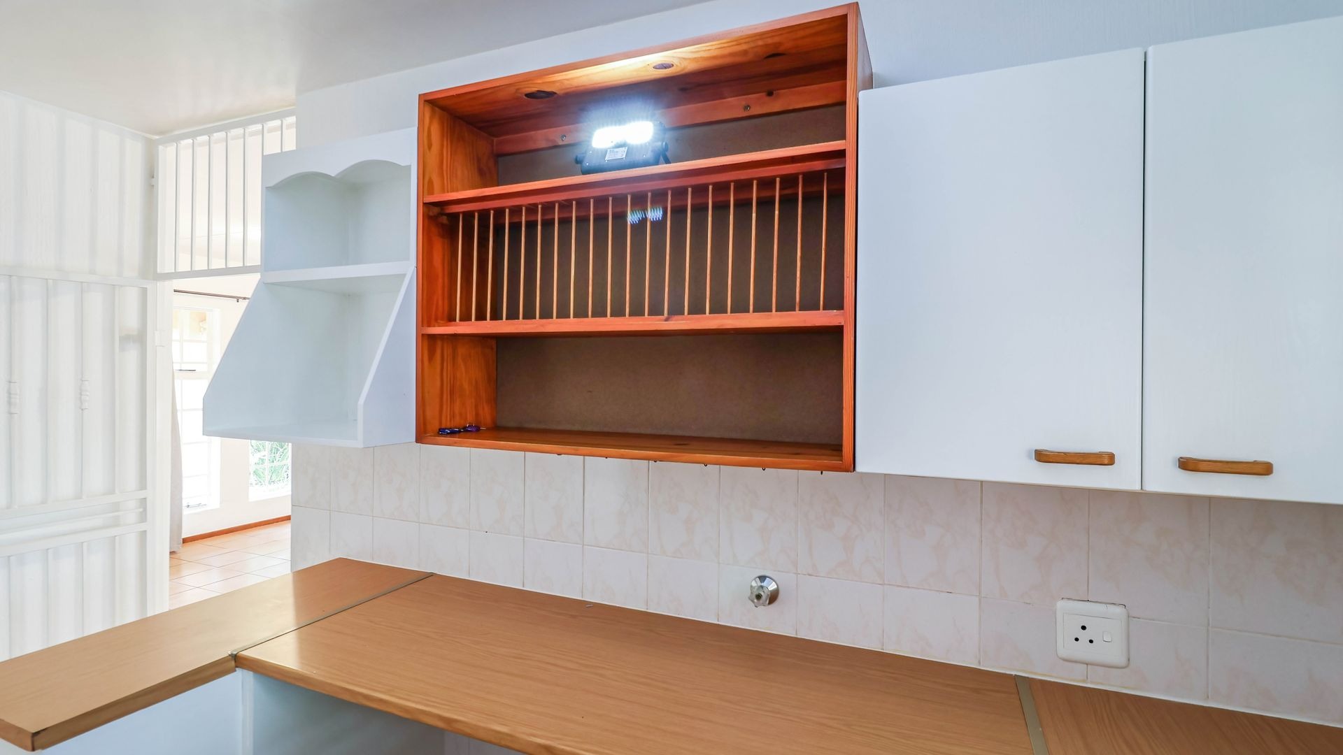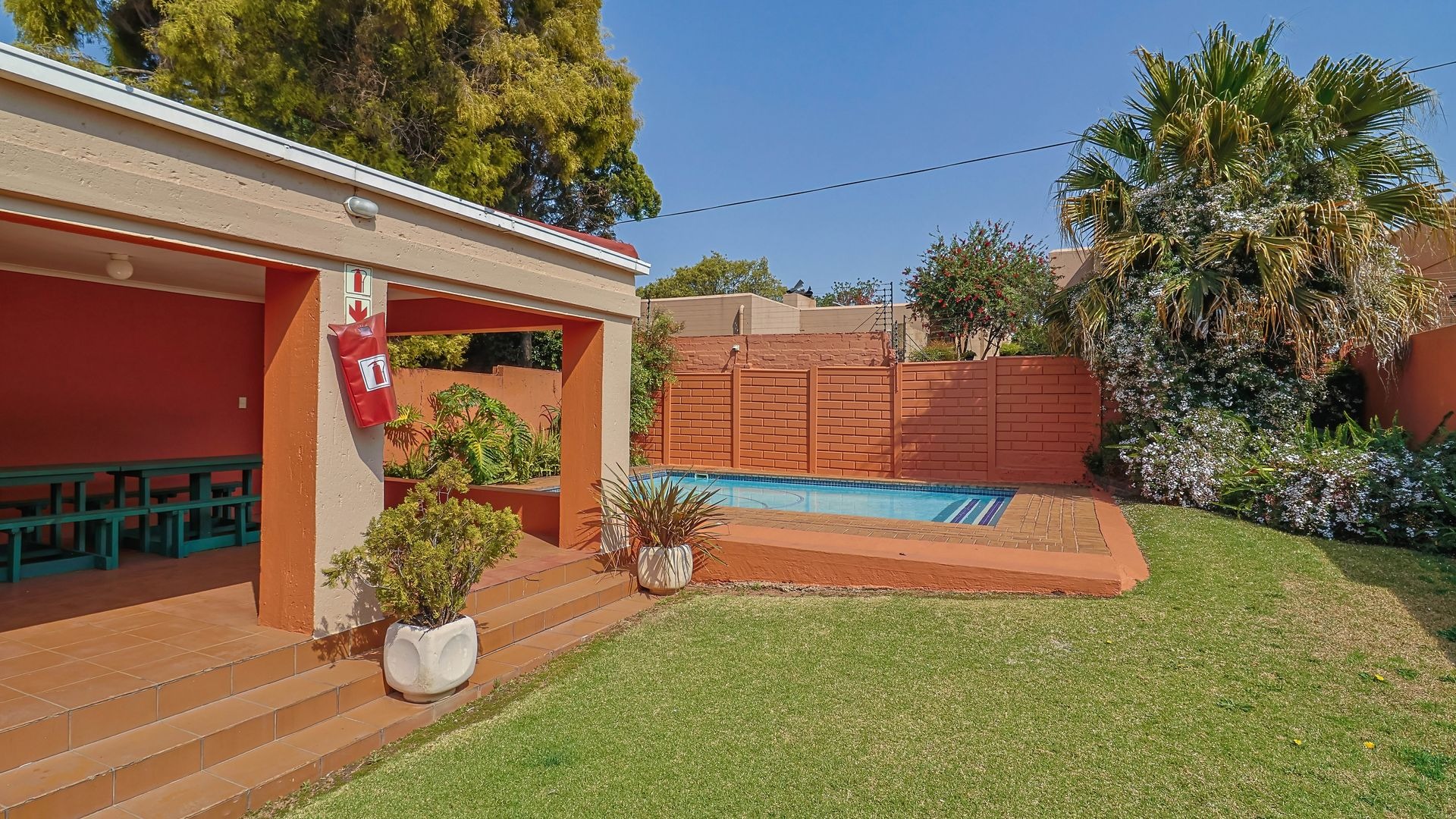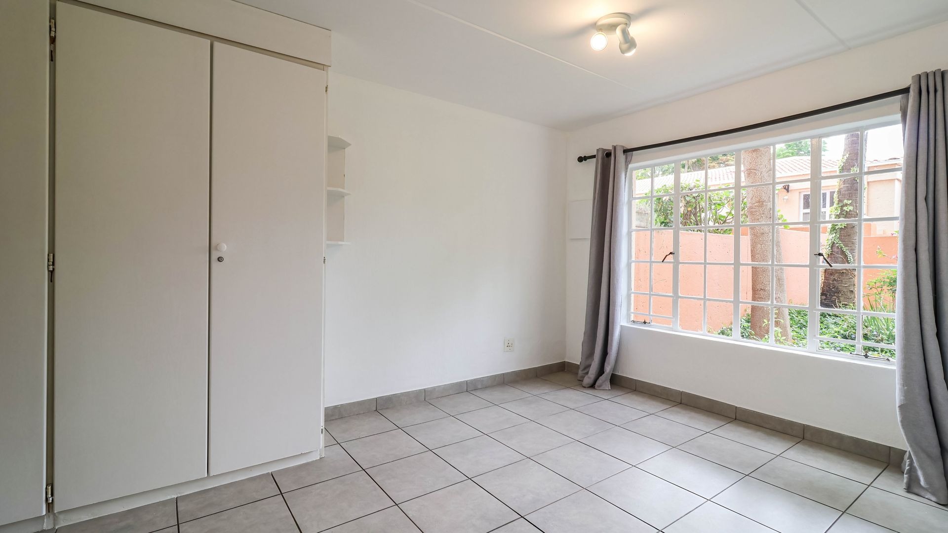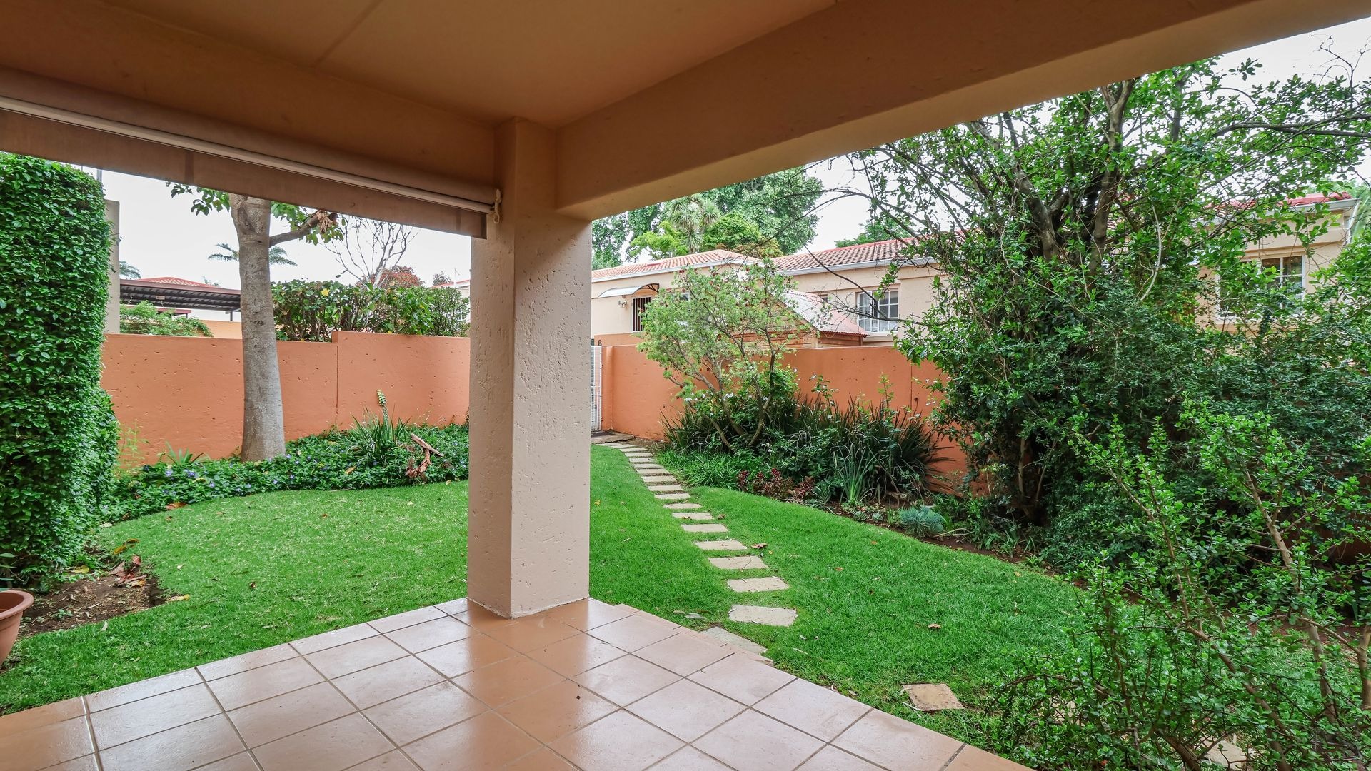 Entrance with security gate. Tiled lounge/dining area with glass door to covered tiled patio with 2 dropdown blinds . Spacious kitchen on. Space for a fridge, 2 appliances and microwave, double sink, under-counter oven, solid hob. Lots of cupboards. Large main bedroom (tiled) 7 BIC, TV bracket. MES with loo, basin and shower. 2nd bedrooom (tiled) 2 BIC and shelving. 2nd bathroom, with loo, vanity and bath. Linen cupboard. Courtyard with washline. Double electric fencing on perimeter. Single carport. Lots of visitors parking. Pool, lapa in complex. Pet friendly for dogs and cats.