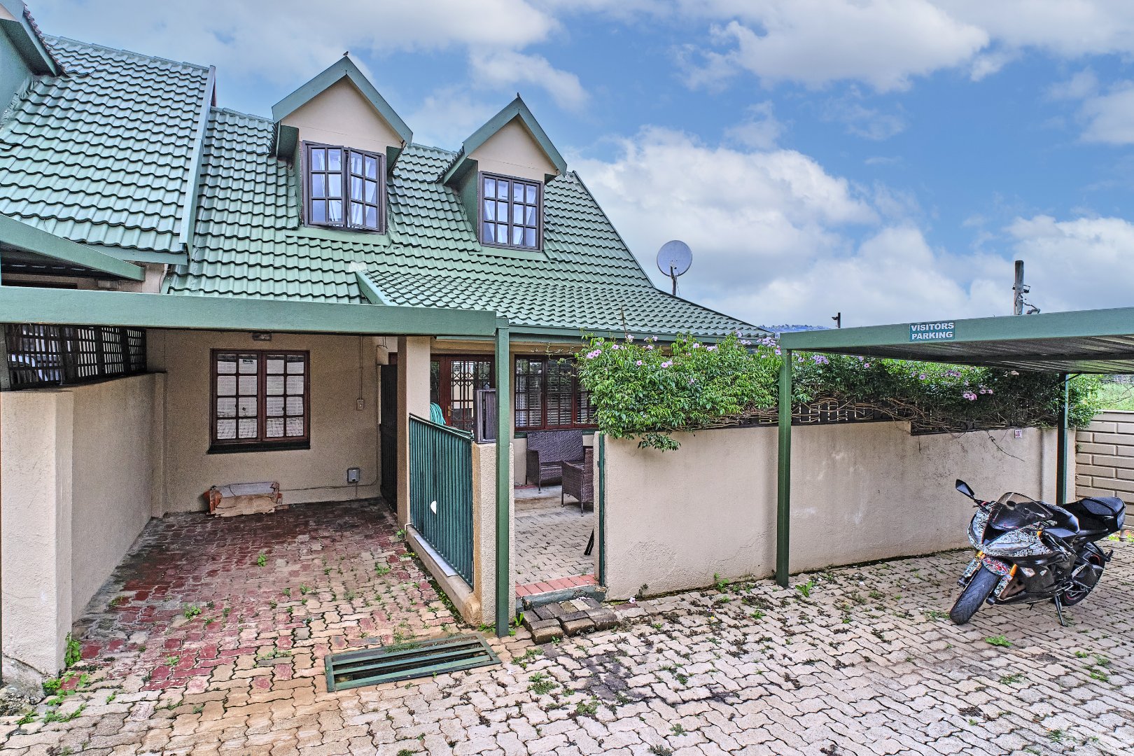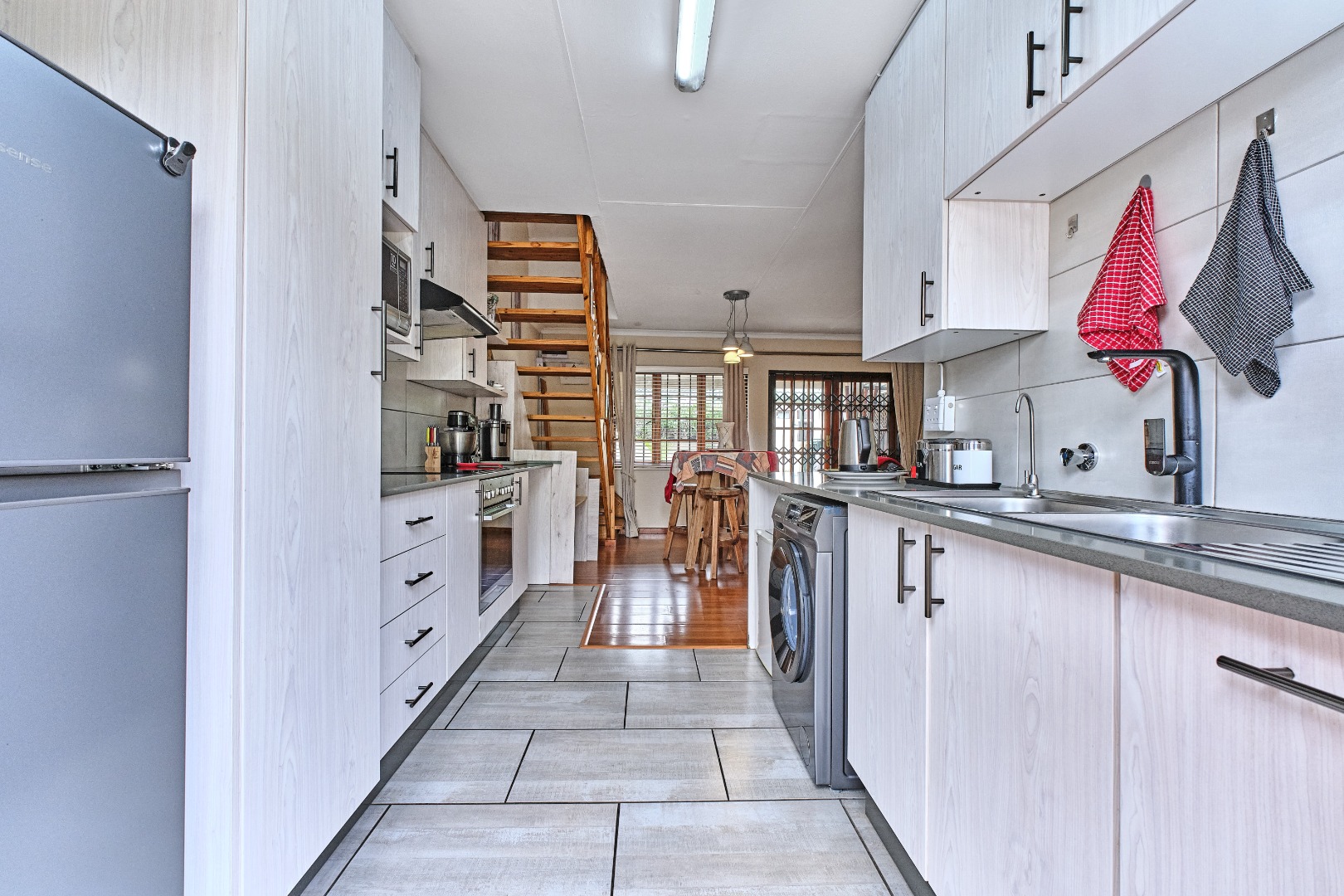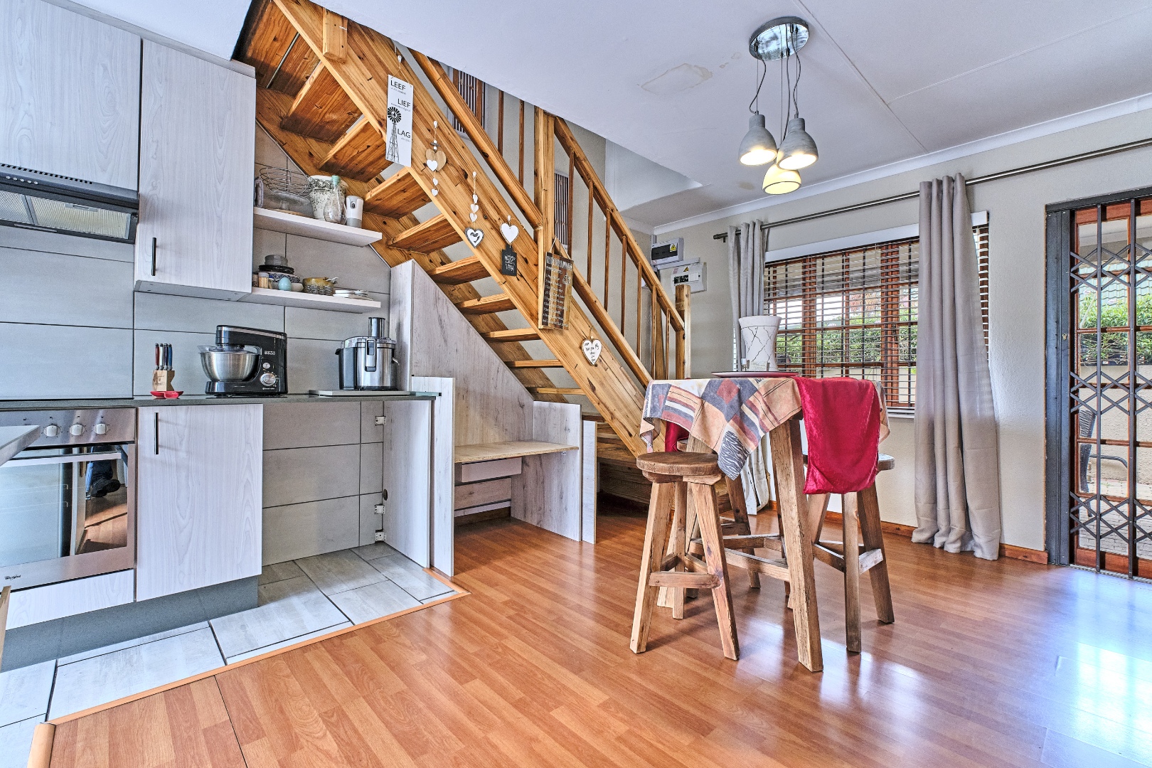 Security is a priority within this complex, featuring an access gate, security gate, and burglar bars for peace of mind. For modern living, the home is equipped with fibre connectivity, solar panels, and a battery inverter, ensuring energy efficiency and uninterrupted power supply. Air conditioning adds to the comfort during warmer months, which can be run on the solar.