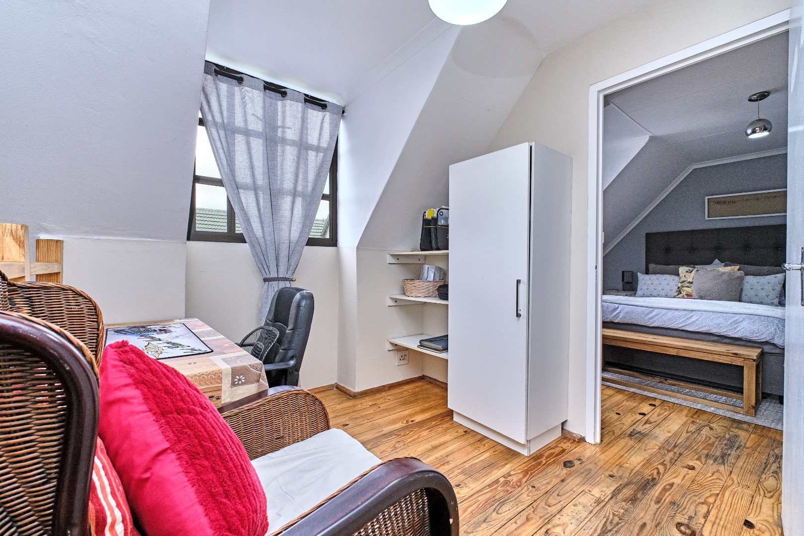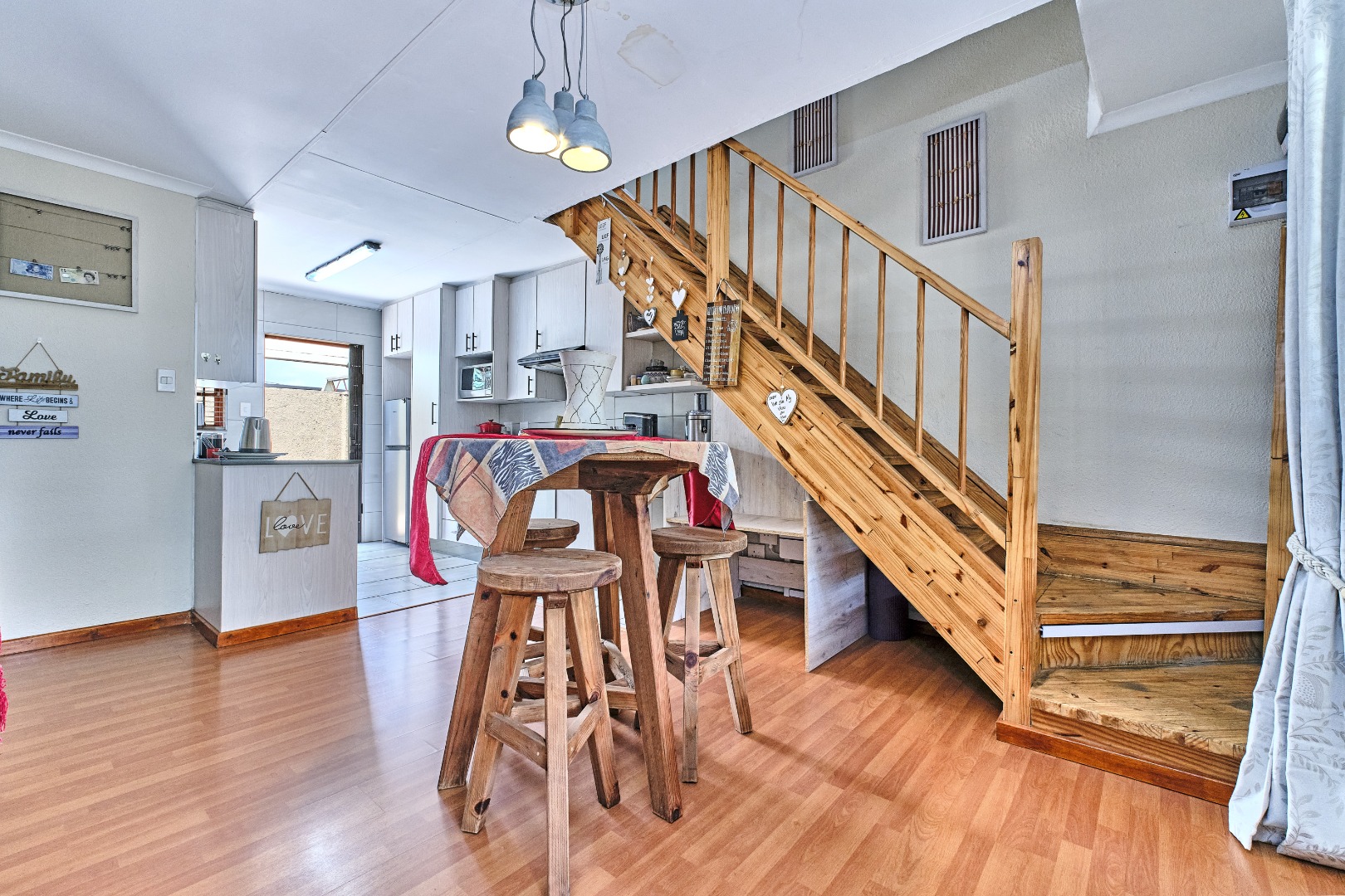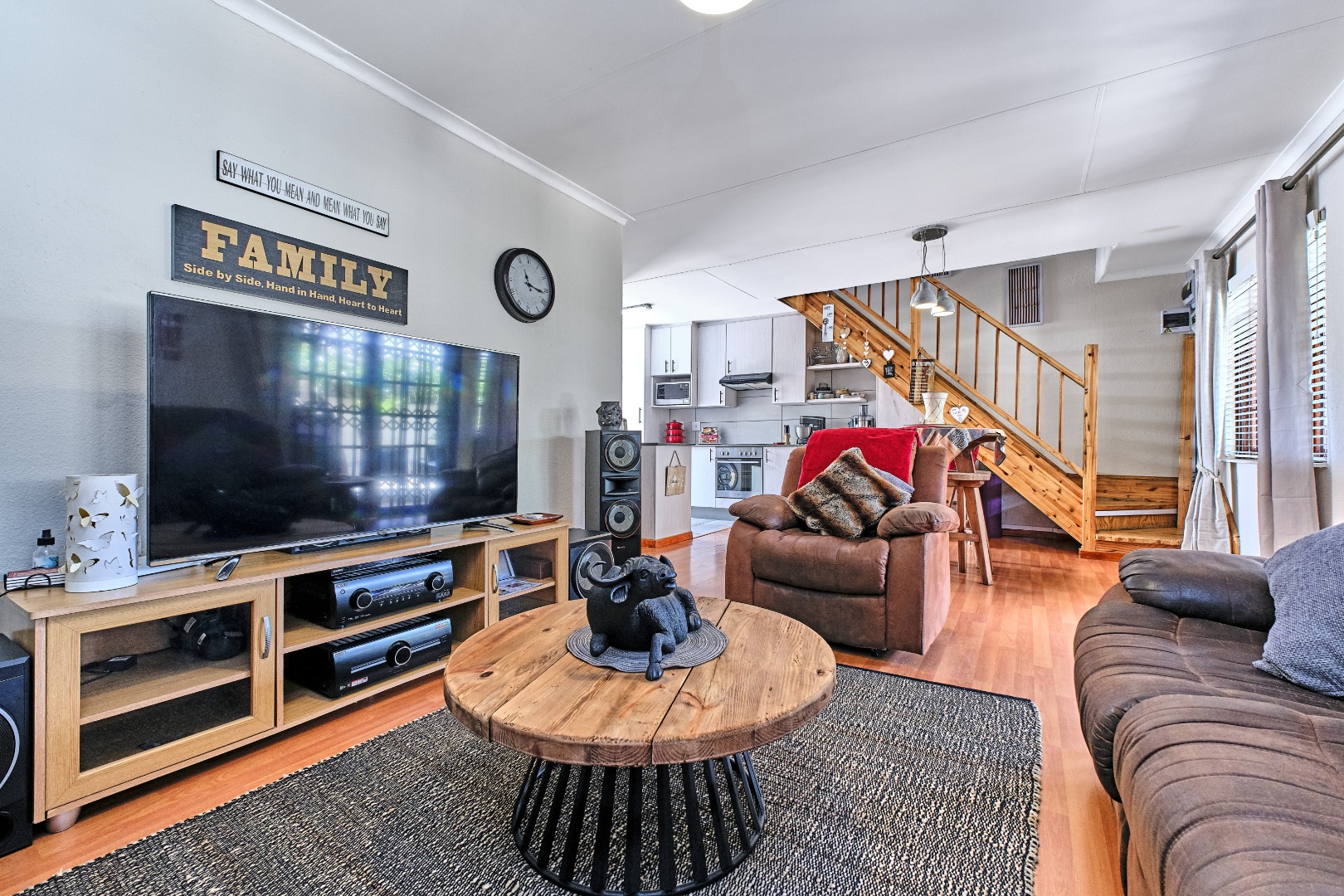 Security is a priority within this complex, featuring an access gate, security gate, and burglar bars for peace of mind. For modern living, the home is equipped with fibre connectivity, solar panels, and a battery inverter, ensuring energy efficiency and uninterrupted power supply. Air conditioning adds to the comfort during warmer months, which can be run on the solar.
