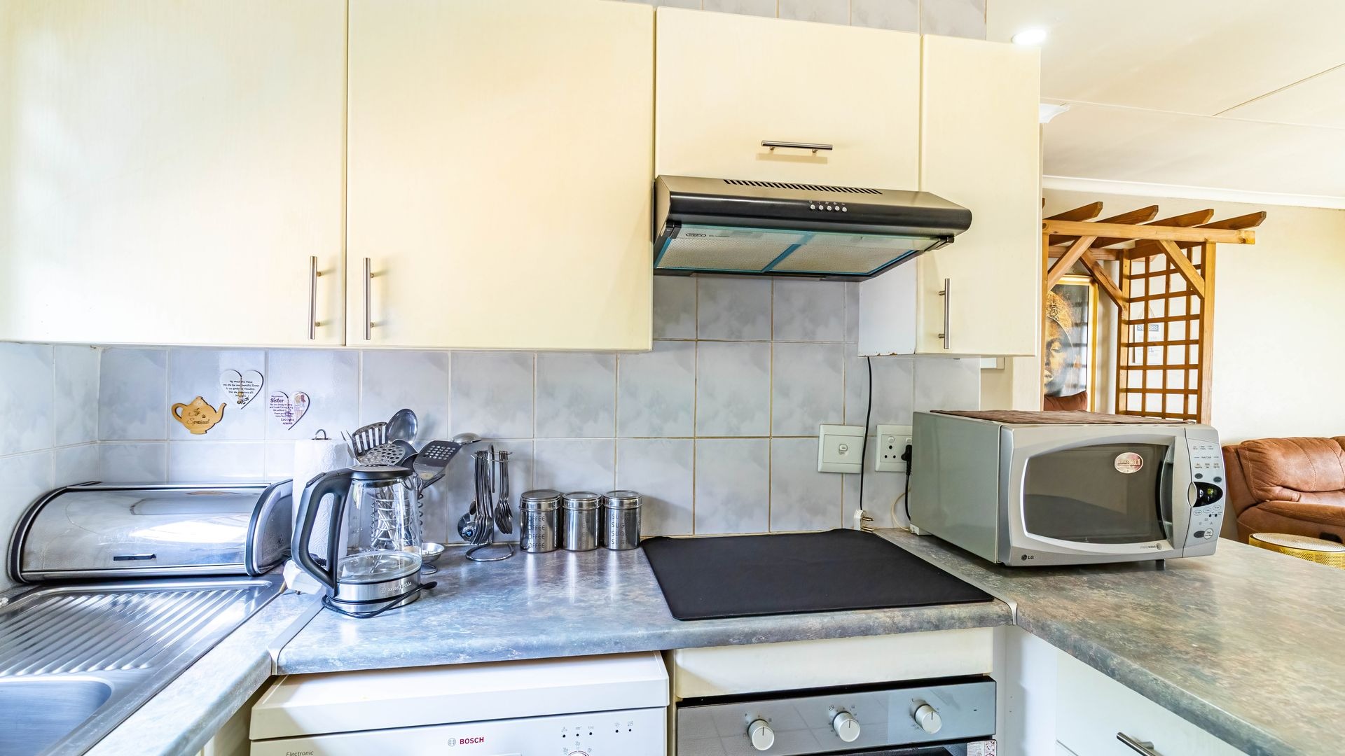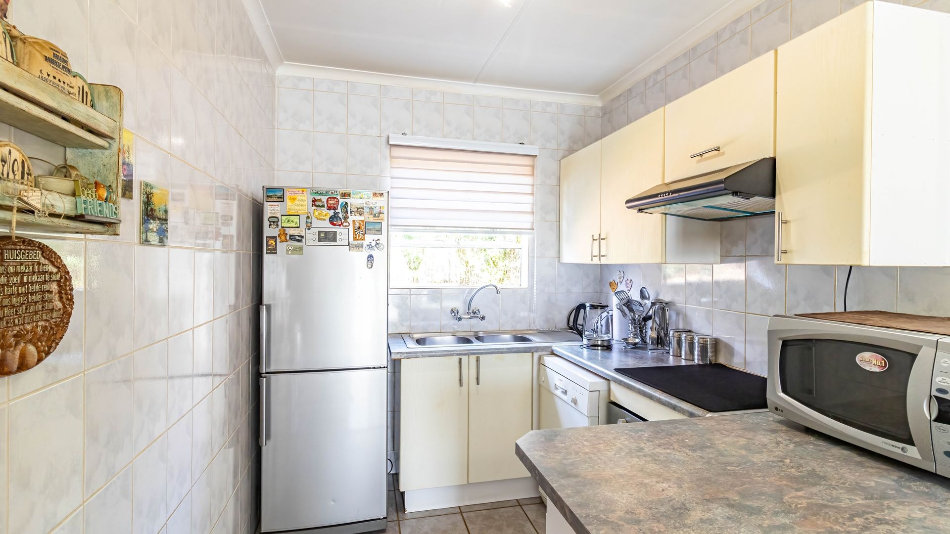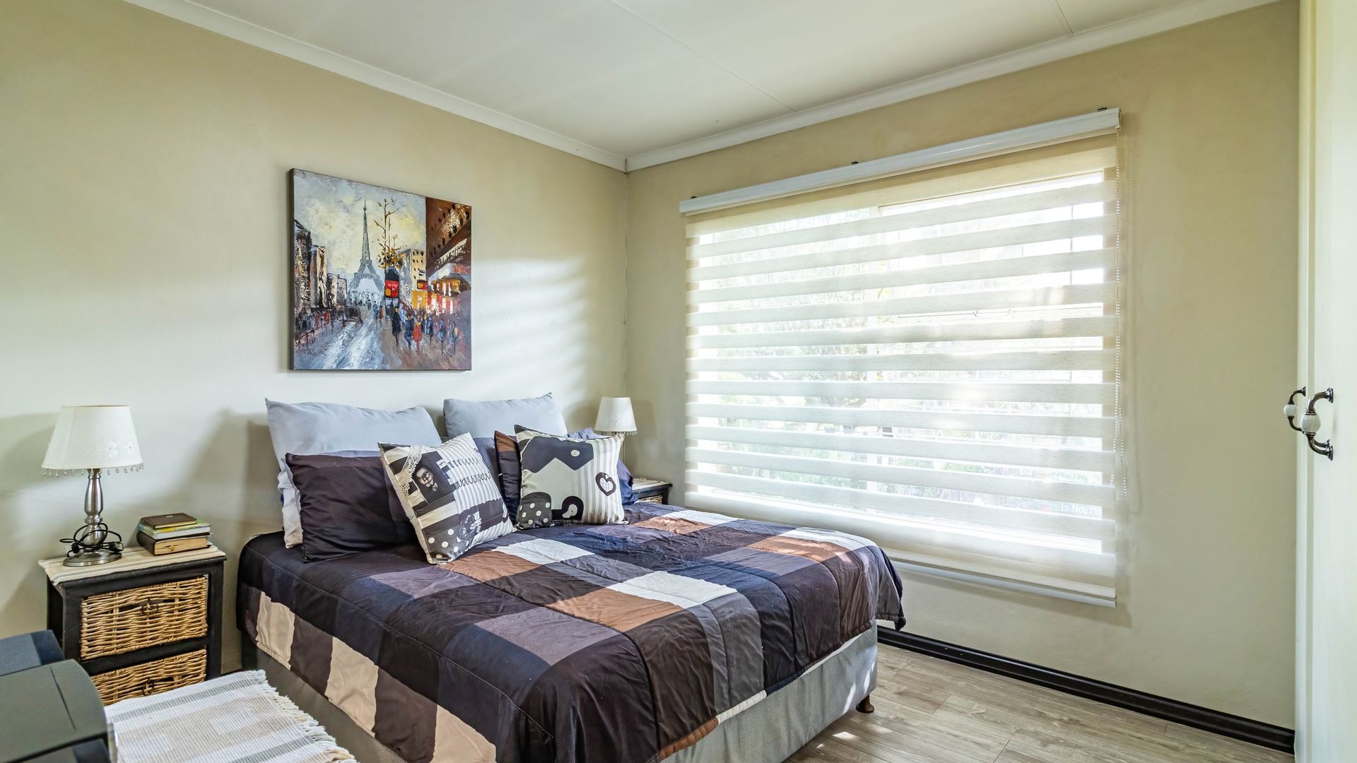 The home features two well sized bedrooms, both fitted with built in cupboards, offering plenty of storage. The main bedroom includes a private en suite bathroom, providing a peaceful retreat at the end of the day. The second bedroom is ideal for guests, children, or even a home office. The home is neatly tiled throughout, making it both stylish and low maintenance.