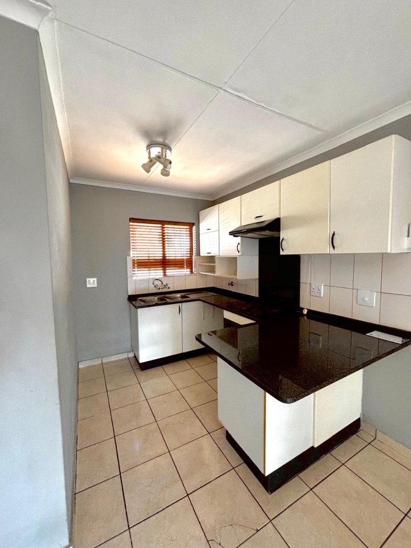 Discover comfortable living in this well-appointed 2-bedroom, 1-bathroom unit located within the secure Summer Acres complex in Weltevreden Park, Roodepoort. Designed for modern convenience, the interior features an open-plan layout that seamlessly connects the living spaces. The lounge area boasts clean tiled flooring, freshly painted grey walls, and white trim, creating a neutral canvas for personal touches. Natural light floods the space through a sliding glass door, which also provides direct access to an outdoor area, secured by a robust security gate for peace of mind. An air conditioning unit ensures year-round comfort. The compact kitchen is efficiently designed with white cabinetry, dark contrasting countertops, and an integrated breakfast bar, perfect for casual dining. It includes a double sink and an extractor fan, complemented by a window for natural ventilation. Both bedrooms are fitted with neutral grey walls, durable tiled flooring, and practical built-in wardrobes, offering ample storage. The bathroom is neatly tiled from floor to ceiling, featuring a vanity sink, toilet, and a glass-enclosed shower, with a window providing light and ventilation. Outside, the complex entrance showcases established landscaping, mature trees, and a paved driveway, contributing to a pleasant kerb appeal. Residents benefit from two dedicated parking bays and the peace of mind offered by a security complex with an access gate and security post. Weltevreden Park is a desirable suburban area, known for its convenient location and community atmosphere. Key Features: * 2 Bedrooms, 1 Bathroom * Open-plan living area * Modern kitchen with breakfast bar * Tiled flooring throughout * Built-in wardrobes * Air conditioning * Sliding doors with security gate * Private garden access * 2 Parking bays * Secure complex with access control