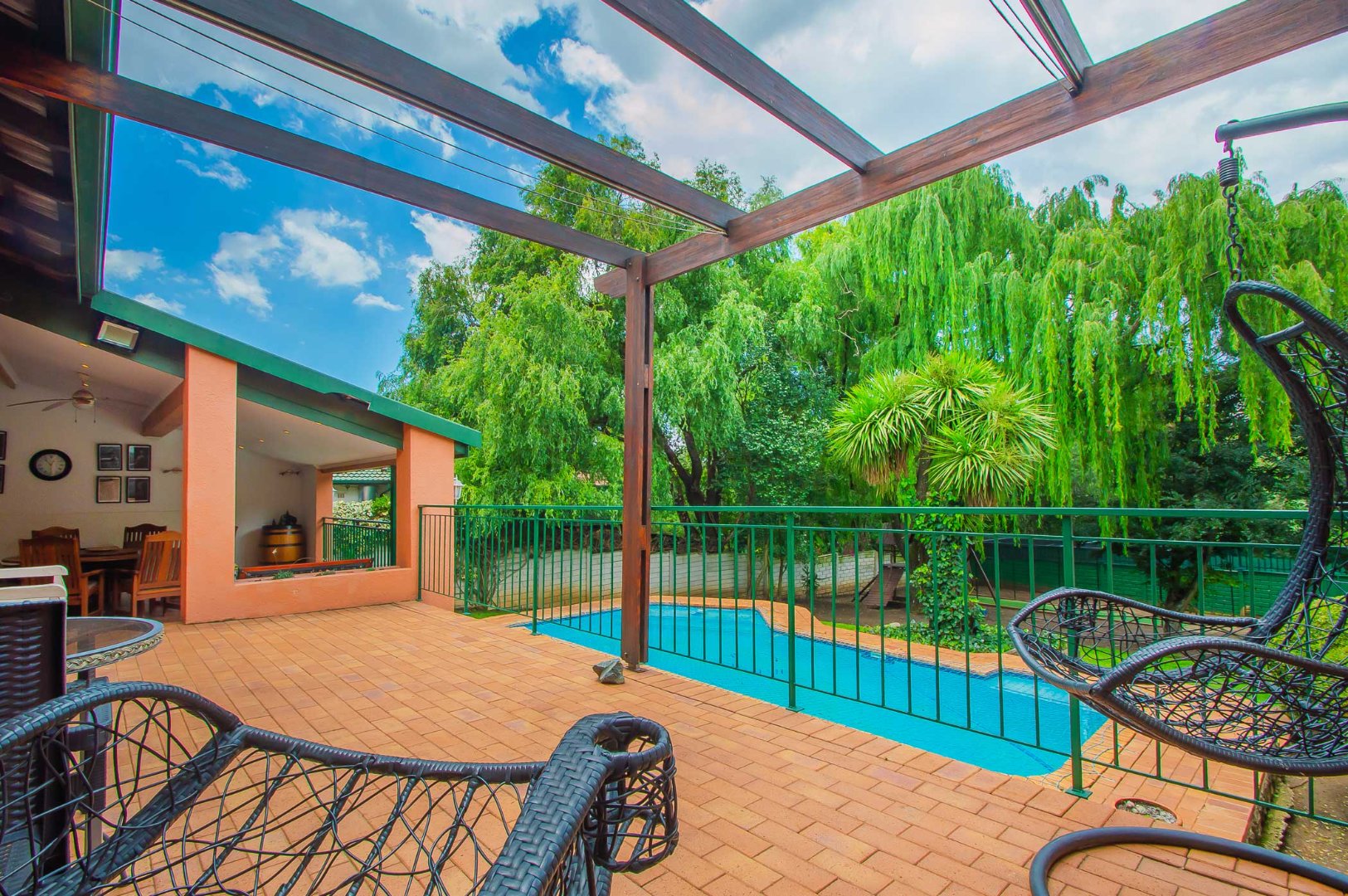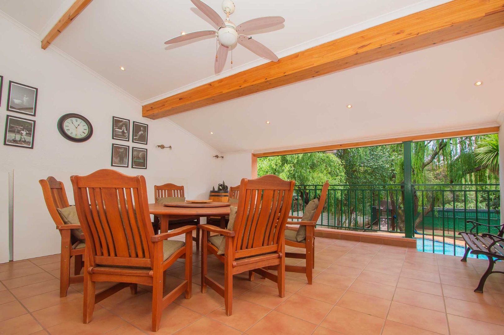 Step into the inviting lounge and dining room, perfect for hosting family gatherings and special occasions. For more casual family time, the separate family room, complete with a cozy fireplace, offers a warm retreat. This room seamlessly opens out to the patio, creating an ideal flow for indoor-outdoor living. The patio boasts a covered entertainment area that overlooks a sparkling, solar-heated swimming pool. Whether you're hosting a summer braai or enjoying a quiet evening by the pool, this space promises countless hours of enjoyment. The back garden is a haven for sports enthusiasts, featuring a cricket net that provides endless fun for all ages.