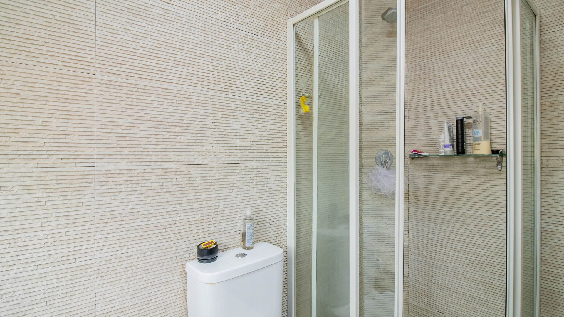 The ground floor also includes two well sized bedrooms. The second bedroom is a comfortable double room with built in cupboards and direct access to the garden. A full bathroom, finished to a high standard, includes both a bath and a shower.