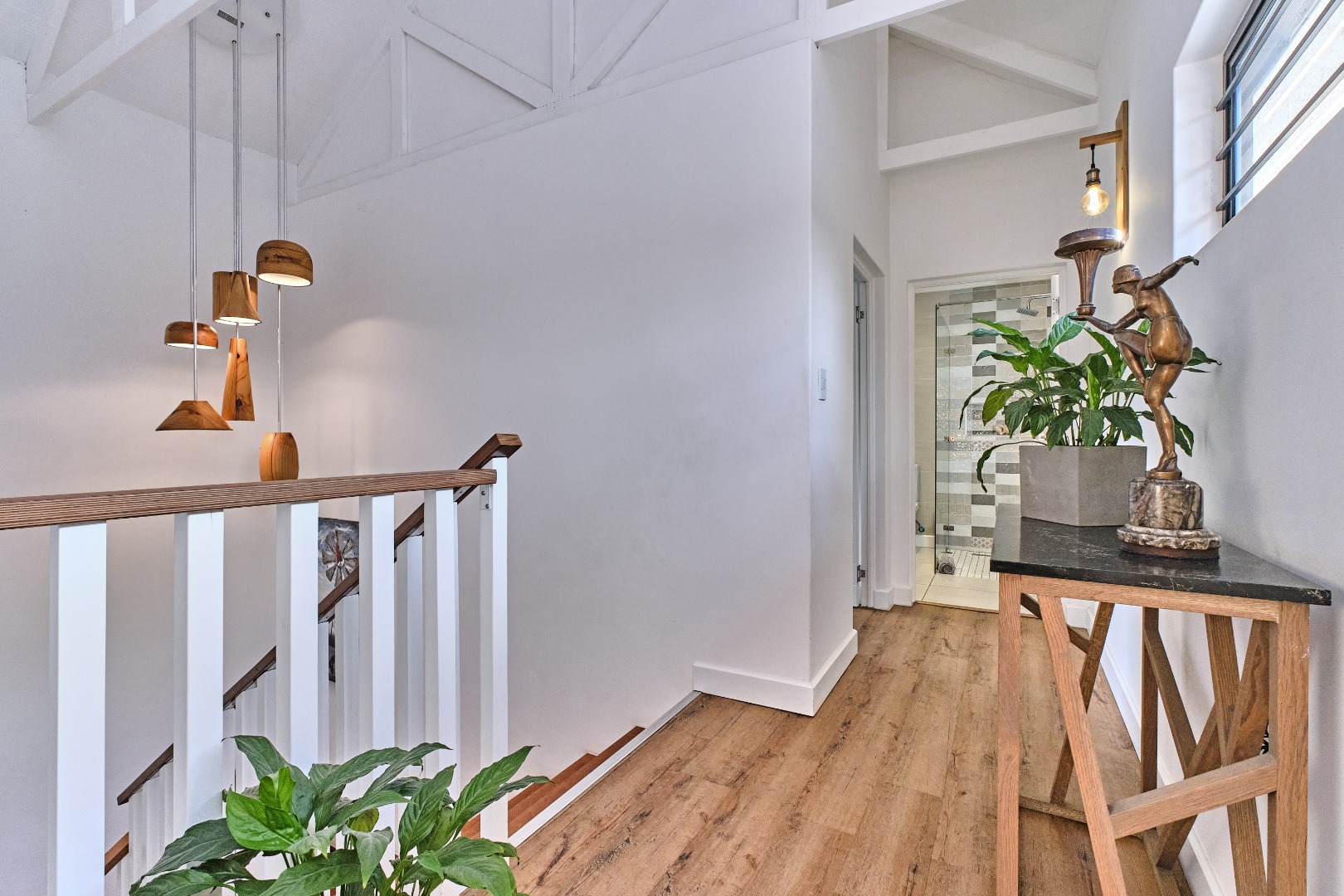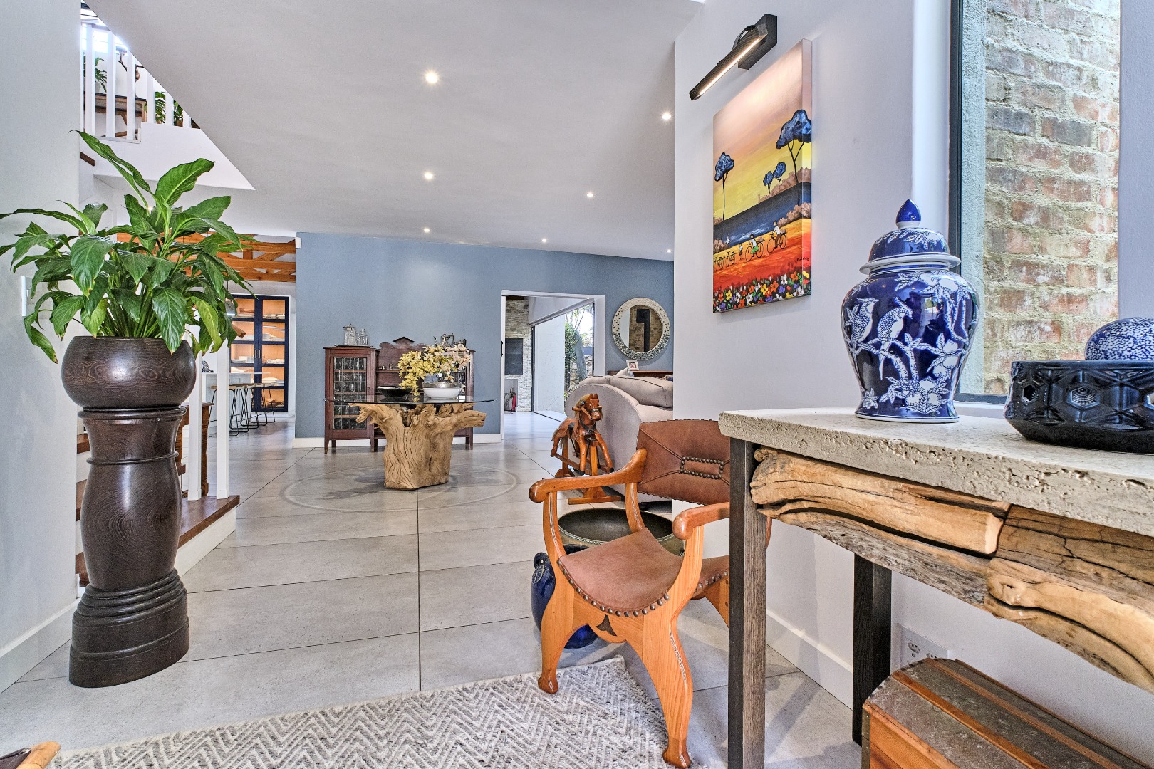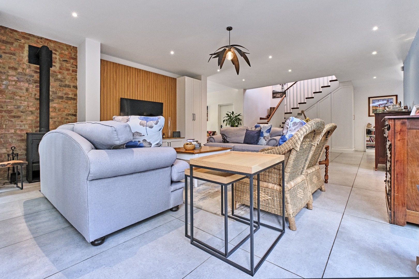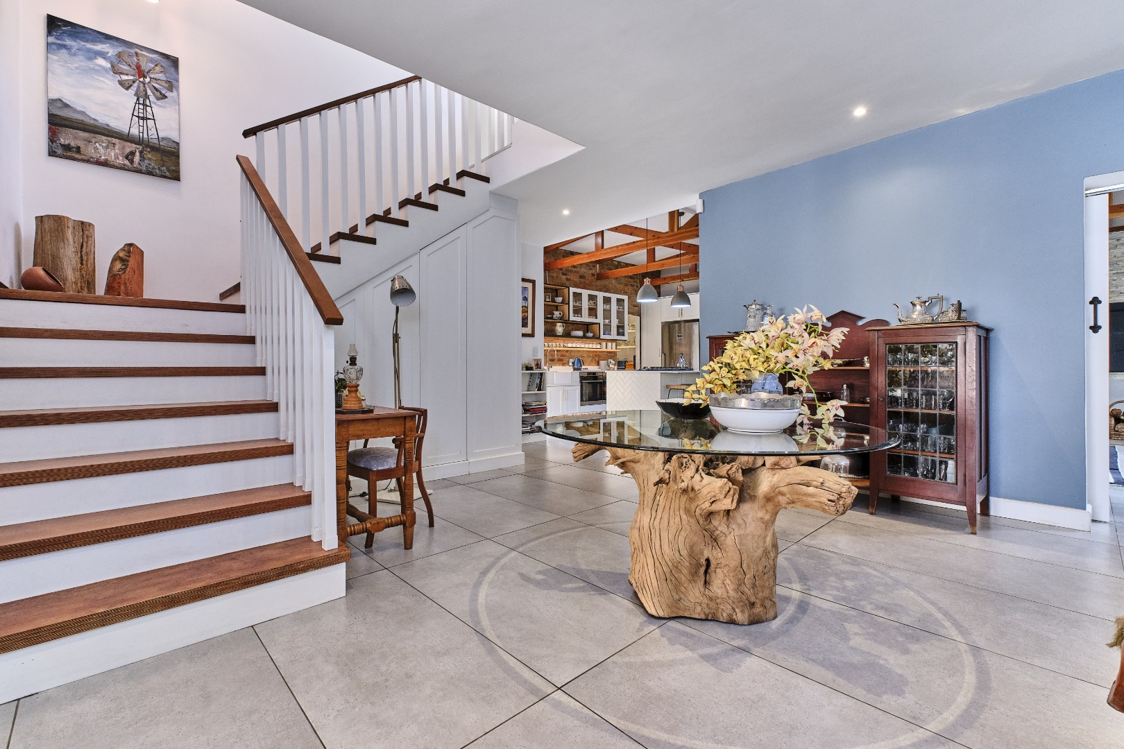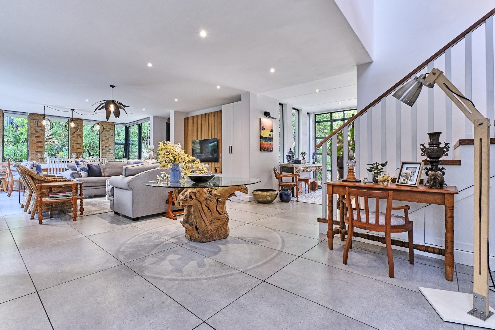 Discover this exceptional 4-bedroom, 3-bathroom residence, perfectly positioned in the sought-after suburb of Weltevredenpark. Designed with a seamless blend of modern sophistication and warm character, this home welcomes you with an inviting entrance hall that opens into a bright, open-plan living space.