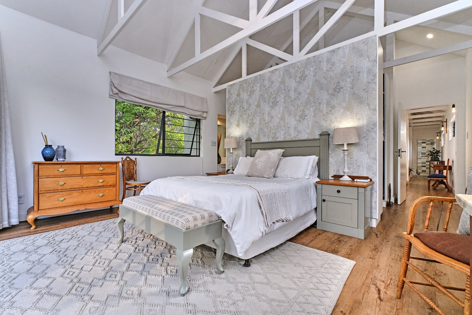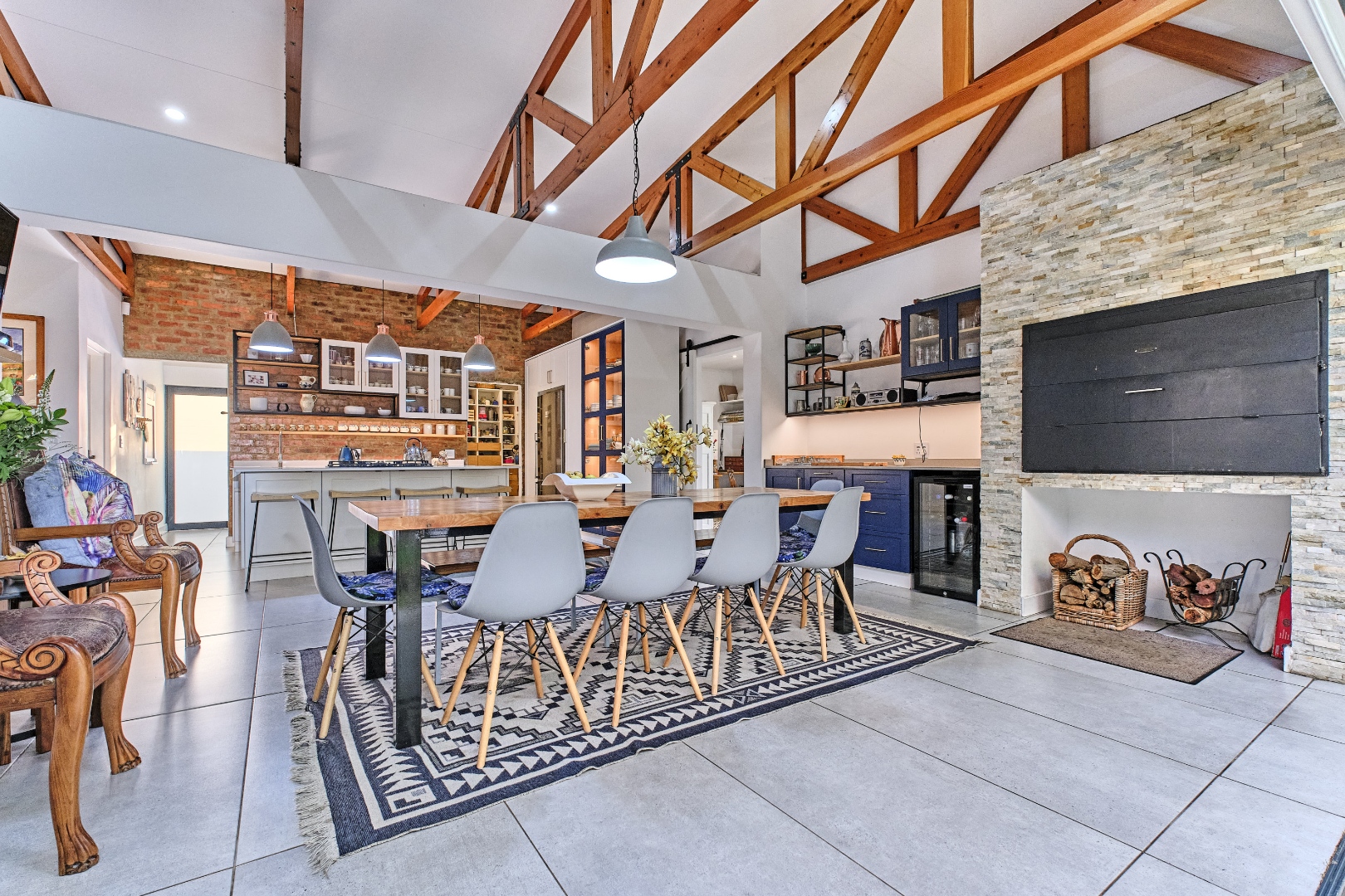 - Vaulted Ceilings with Exposed Beams & Exquisite Woodwork