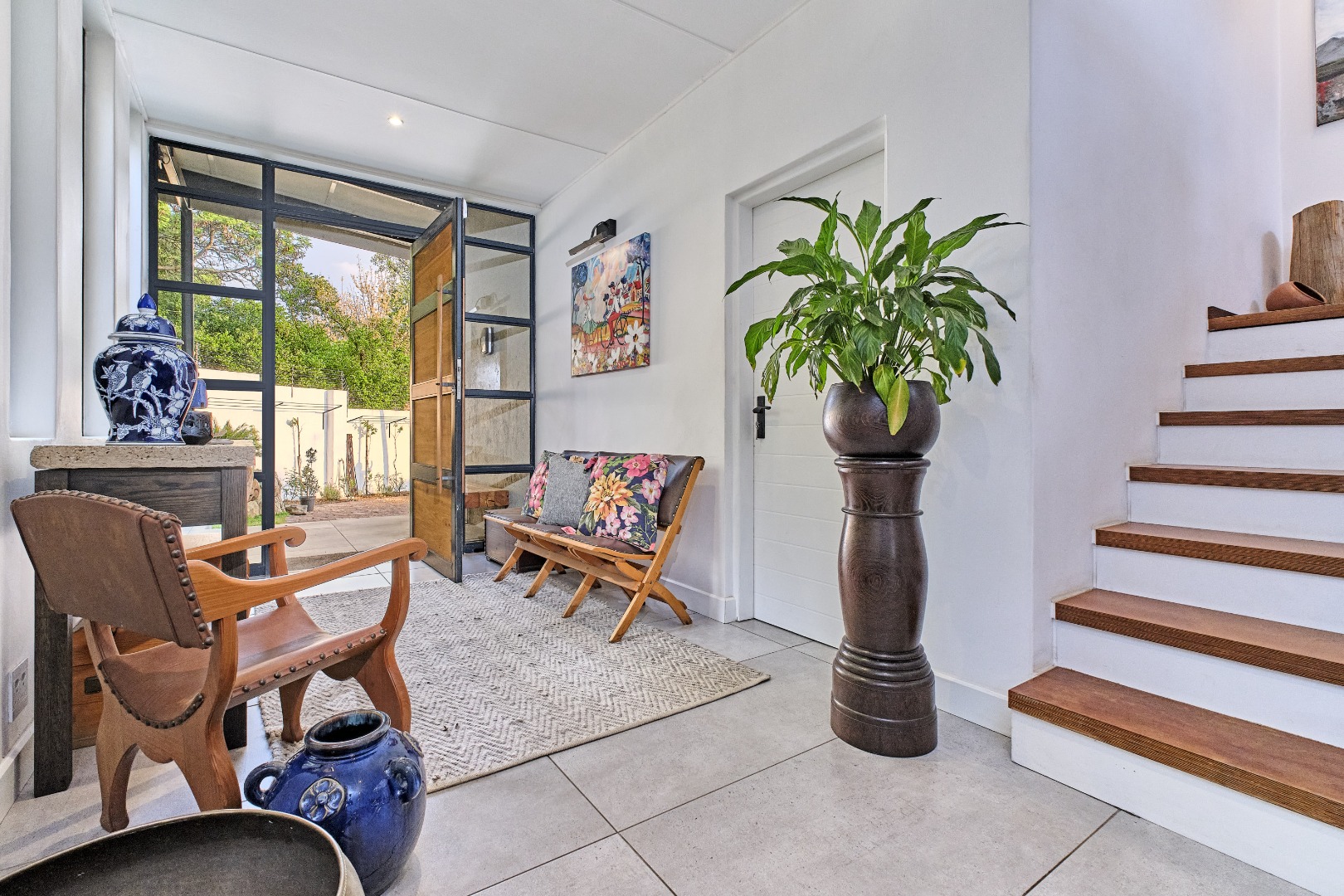 Outdoor living is complemented by a private, well-landscaped garden, with an irrigation system—perfect for relaxing or entertaining. Security and convenience are prioritized, with features such as an alarm system, electric fencing and full boundary walls, ensuring peace of mind.