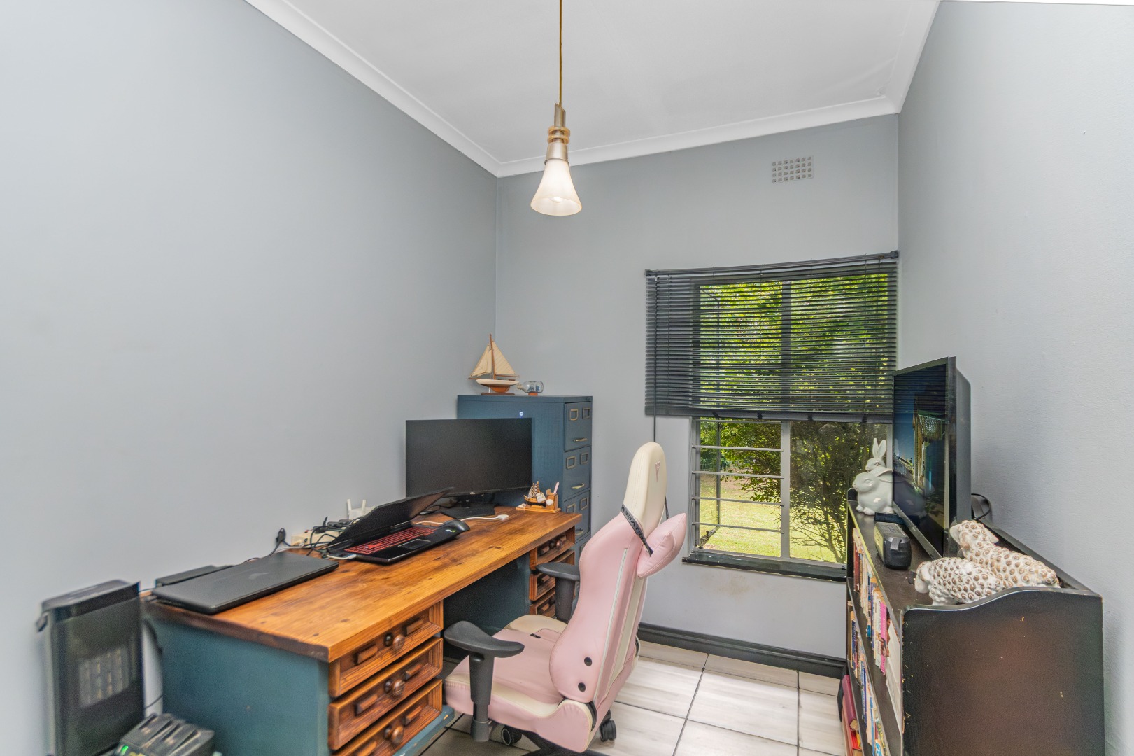 Outside, the large, landscaped garden features fruit trees, space to play, and a lively presence of local birdlife, all within a peaceful and quiet neighborhood.