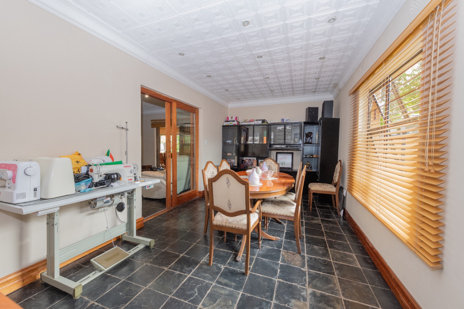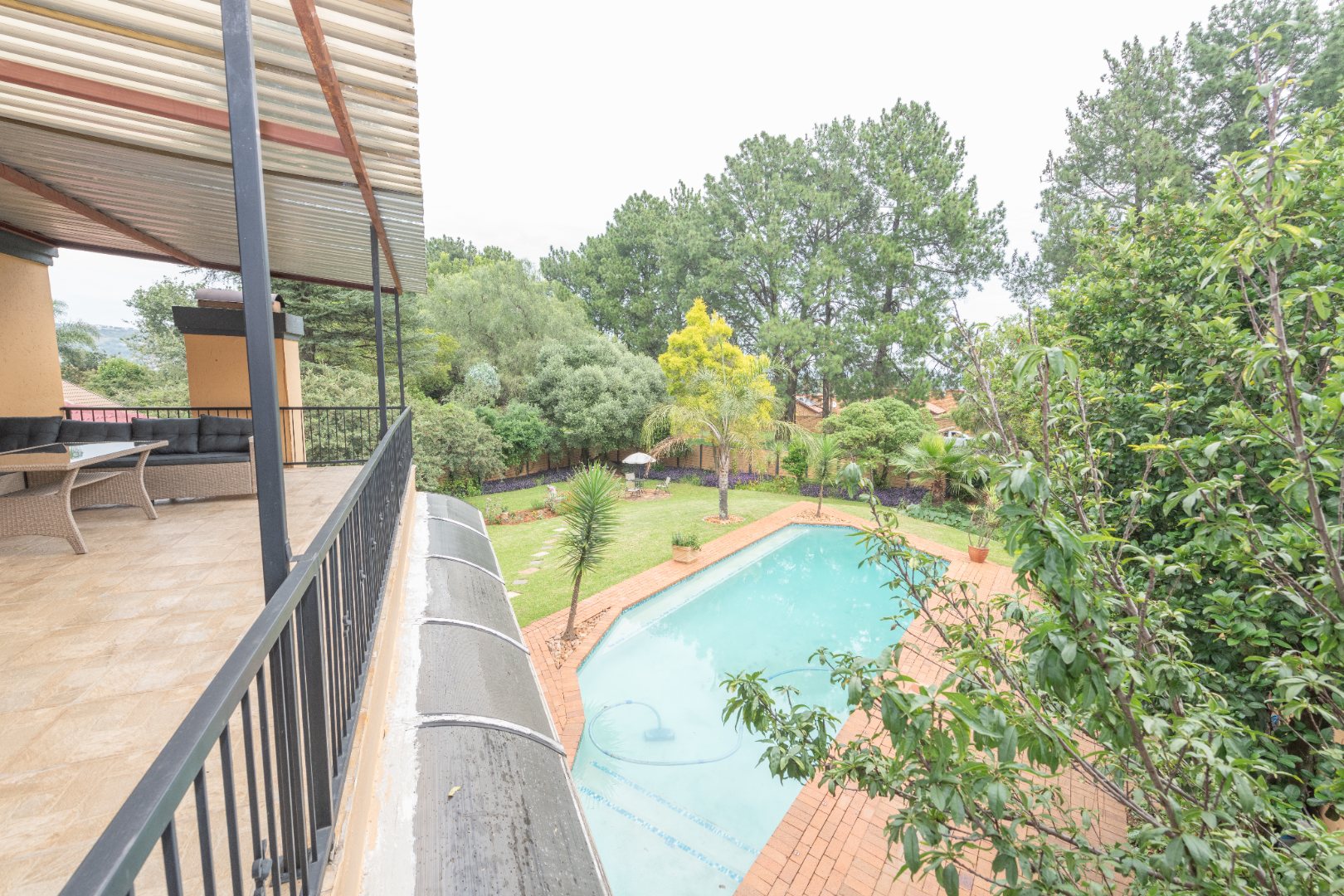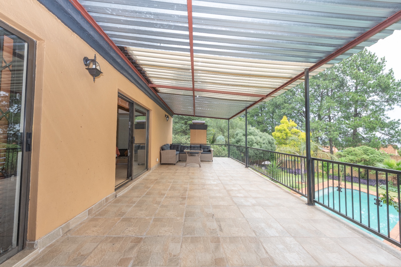 The enormous, covered patio offers an ideal space for entertaining, fully enclosed with sliding doors or windows, allowing you to admire the tranquil garden and sparkling pool.