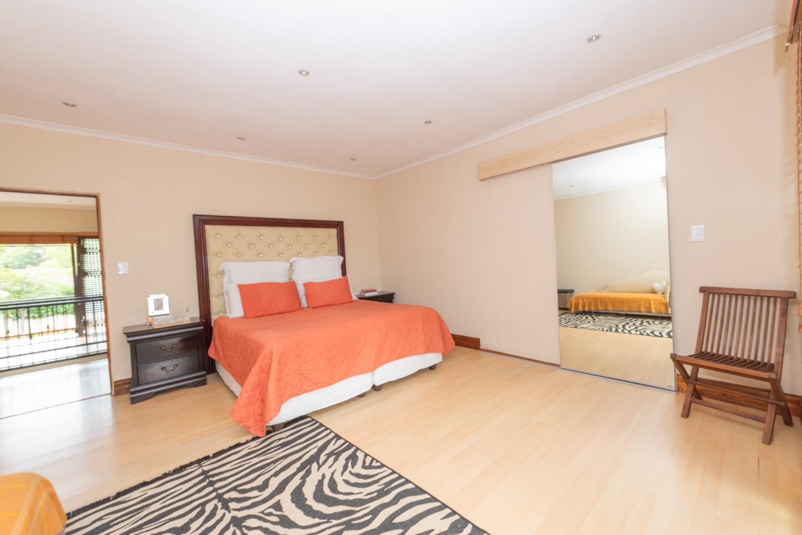 Upstairs features a large, versatile landing area that could easily serve as an additional lounge or cozy sitting nook. Three of the upstairs bedrooms include ample space, with one currently being used as a study. The other two generous bedrooms each boast their own full en-suite bathrooms. The expansive main bedroom can easily accommodate a king-sized bed and more, with plenty of room to spare. Step through the aluminum sliding doors from both the bedroom and study, and onto the generous balcony, where you can enjoy breathtaking sunset views. There’s also a second balcony perfect for watching the sun rise.