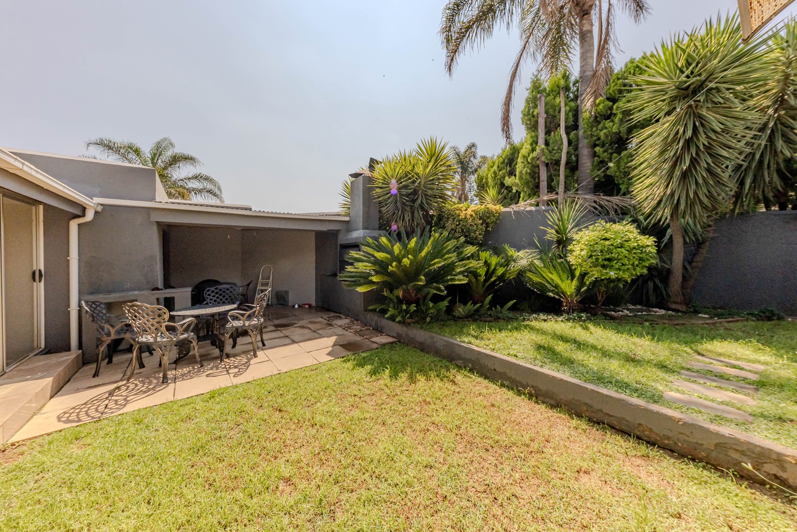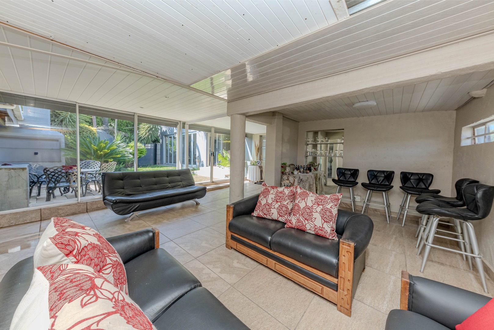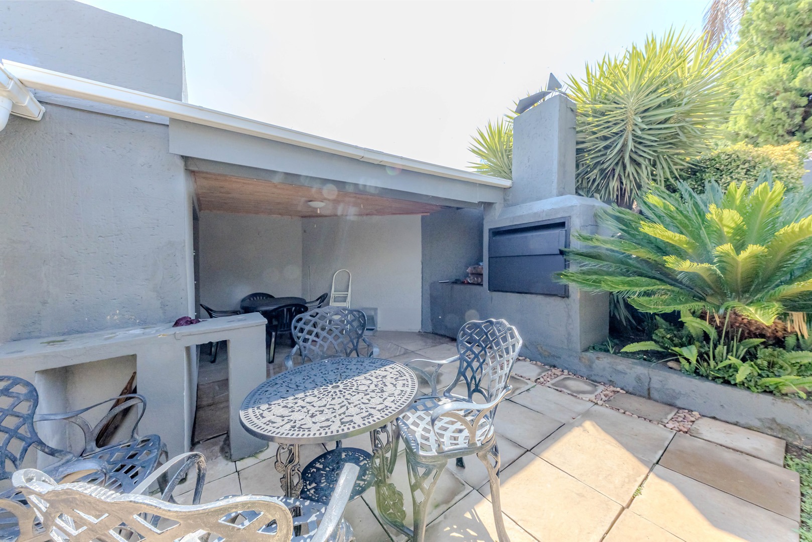 The real showstopper is the covered patio, complete with a built-in braai, where you can host weekend braais, enjoy alfresco dining, or simply soak in the tranquil surroundings. A double garage ensures secure parking and extra storage, adding to the home’s practicality.