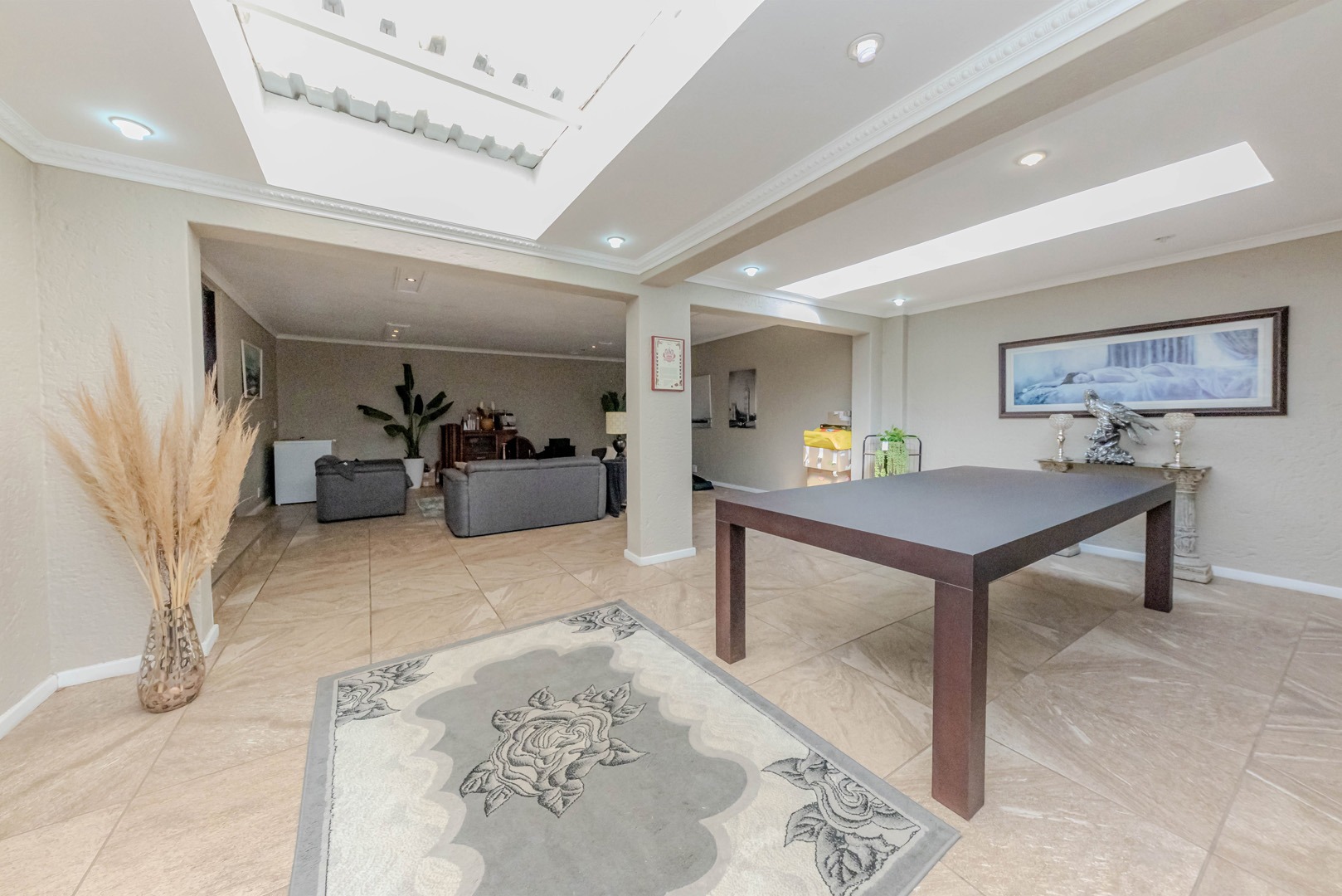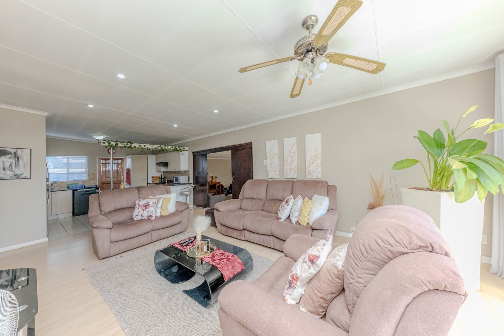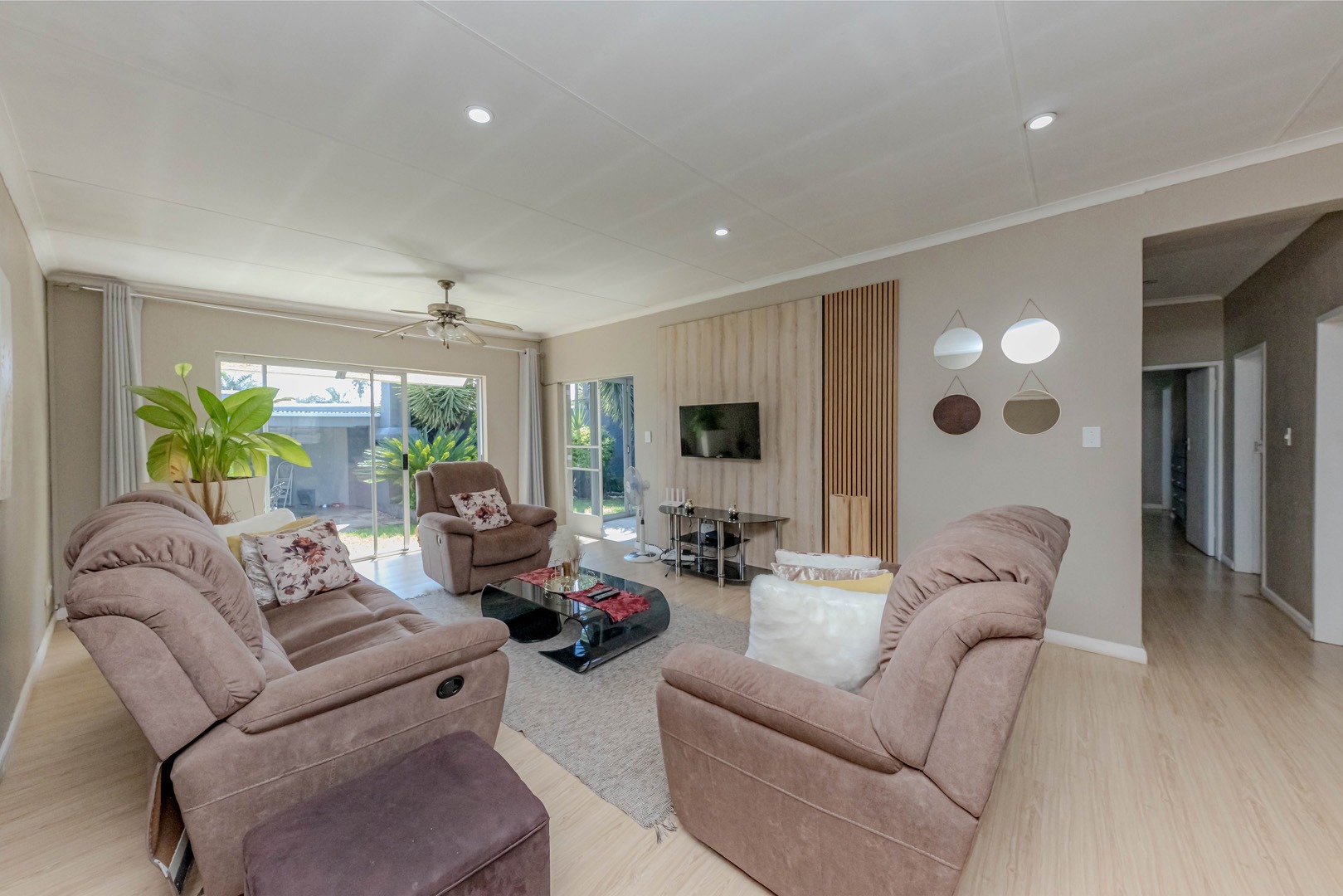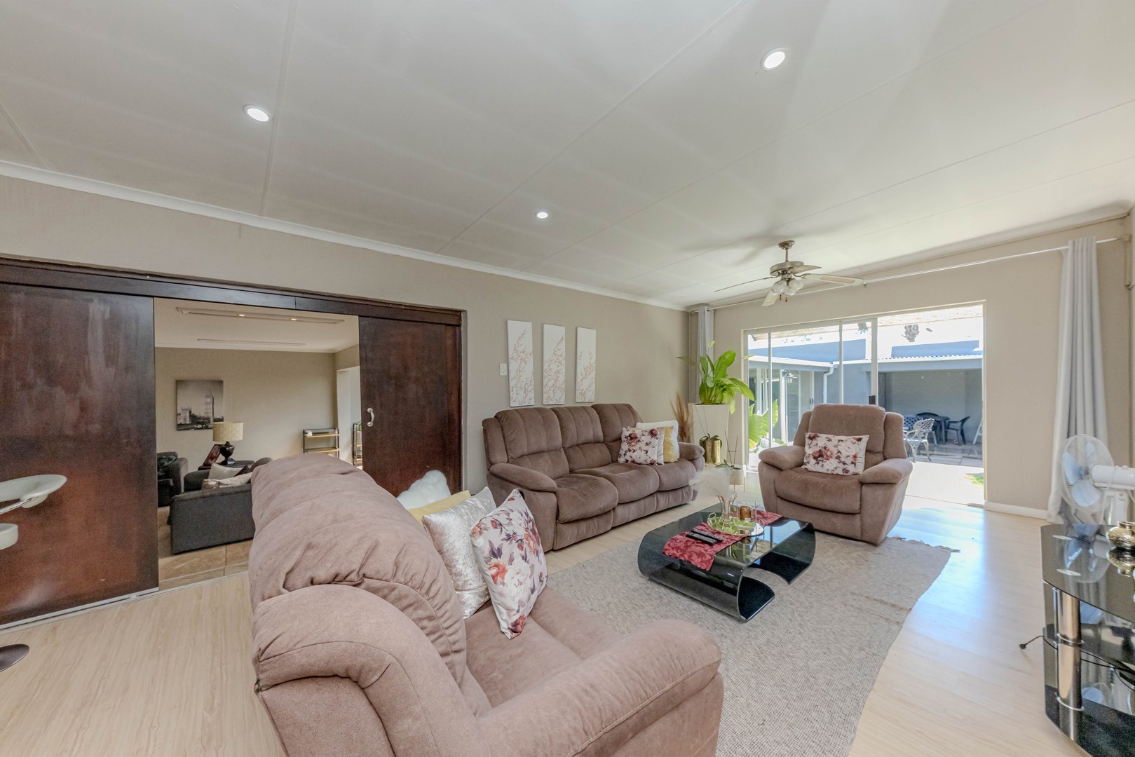 The real showstopper is the covered patio, complete with a built-in braai, where you can host weekend braais, enjoy alfresco dining, or simply soak in the tranquil surroundings. A double garage ensures secure parking and extra storage, adding to the home’s practicality.