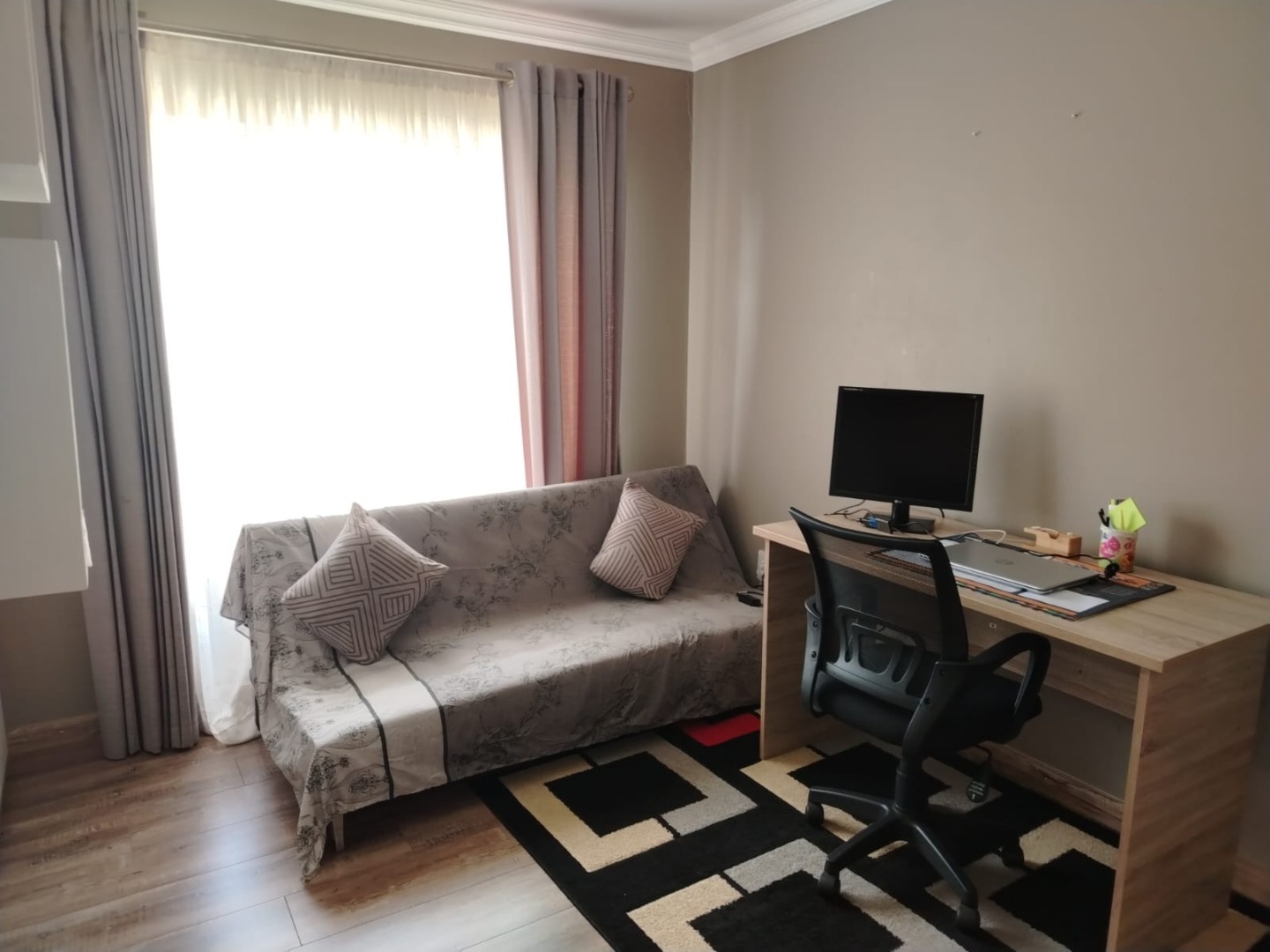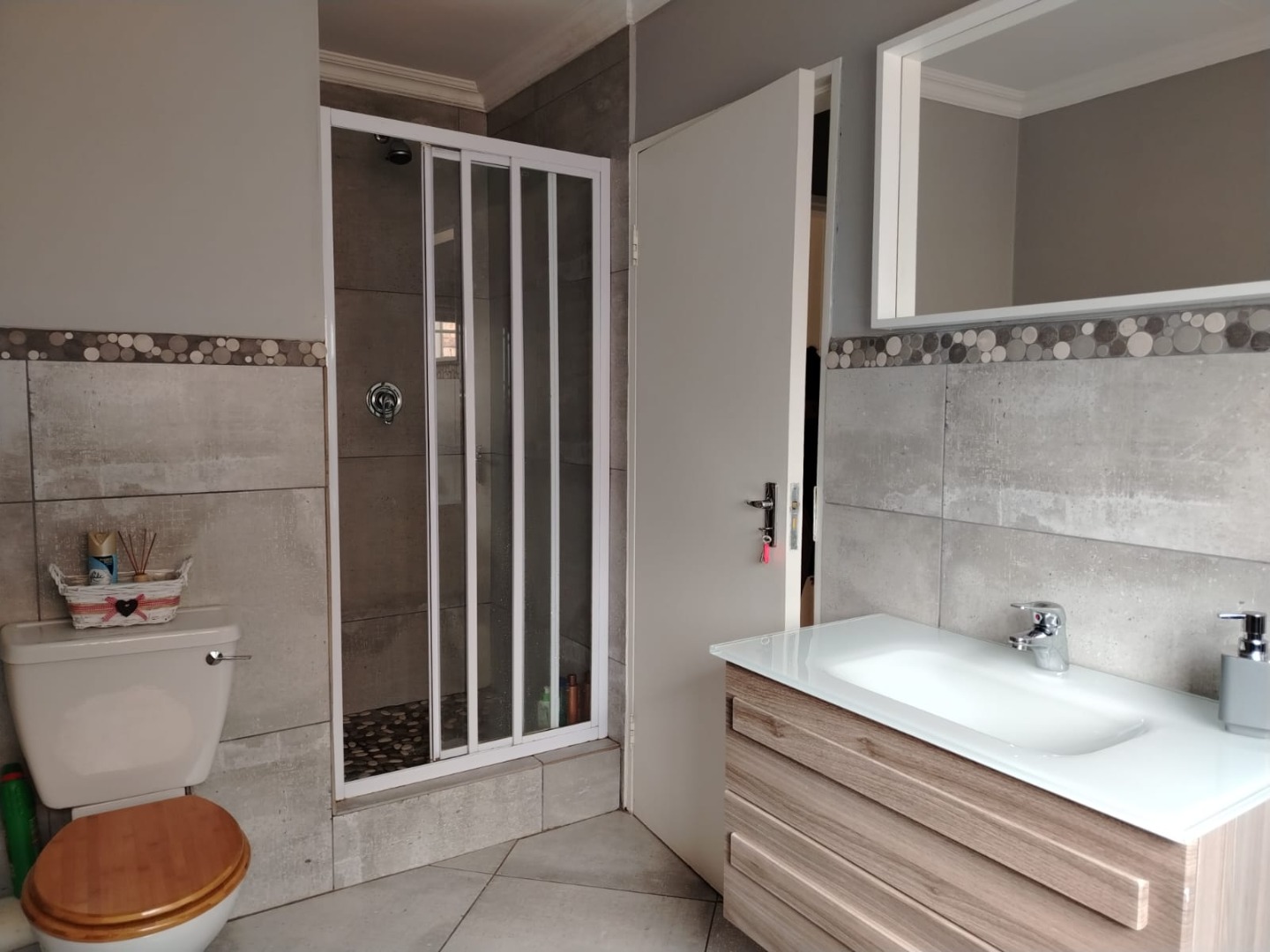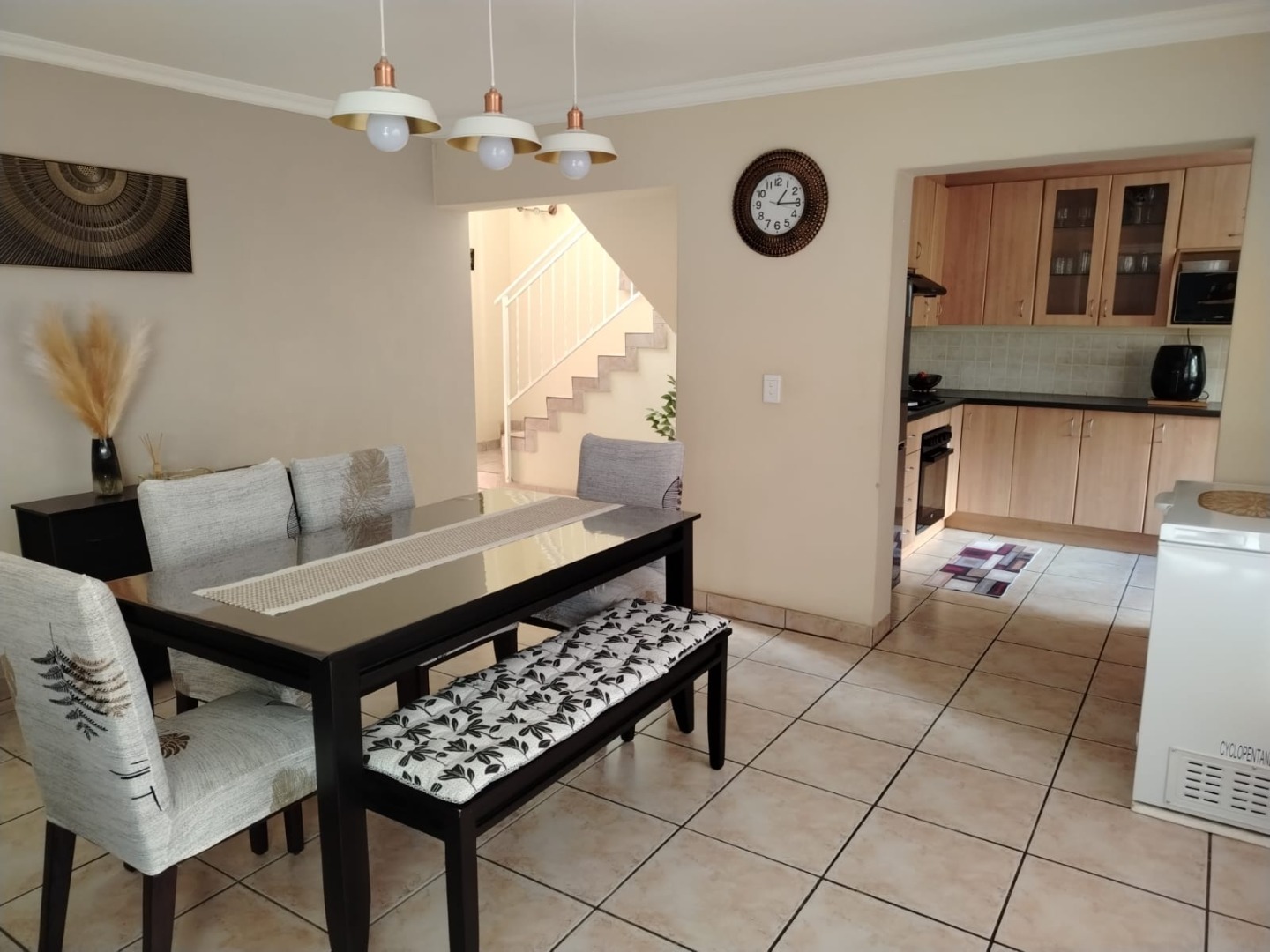 Nestled within the desirable suburban enclave of Wilgeheuwel, Roodepoort, this property offers a prime location within a secure complex, ensuring peace of mind and convenient access to local amenities. The residence presents a robust brick exterior, featuring a paved driveway leading to a single garage and a secure main entrance, establishing a welcoming first impression. The interior boasts an open-plan design, seamlessly connecting the well-appointed kitchen, dedicated dining room, and comfortable lounge. Tiled flooring throughout ensures practicality, complemented by an accent wall in the living area for a contemporary aesthetic. Accommodation comprises three generously proportioned bedrooms and 2.5 bathrooms, including a private en-suite for the main bedroom and a convenient guest toilet. The private outdoor area is a sanctuary for relaxation, featuring a well-maintained garden with lawn and established greenery. A paved patio, shaded by a lapa, provides an inviting space for al fresco dining, accessible via sliding doors. An additional parking bay supplements the single garage. Security is paramount, with 24-hour surveillance, an access gate, and an intercom system. The residence is further secured with burglar bars, security gates, and a totally walled perimeter. Energy efficiency is enhanced by solar panels, and a sprinkler system aids garden maintenance. This pet-friendly home is ideal for discerning buyers seeking comfort and security. Key Features: * Three Bedrooms, 2.5 Bathrooms (en-suite and guest toilet) * Open-plan living and dining areas * Private garden with lapa and paved patio * Single garage and additional parking * 24-hour security complex with access control * Solar panels and sprinkler system * Pet-friendly environment