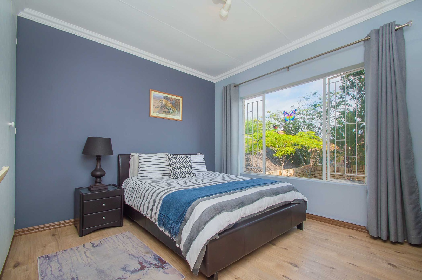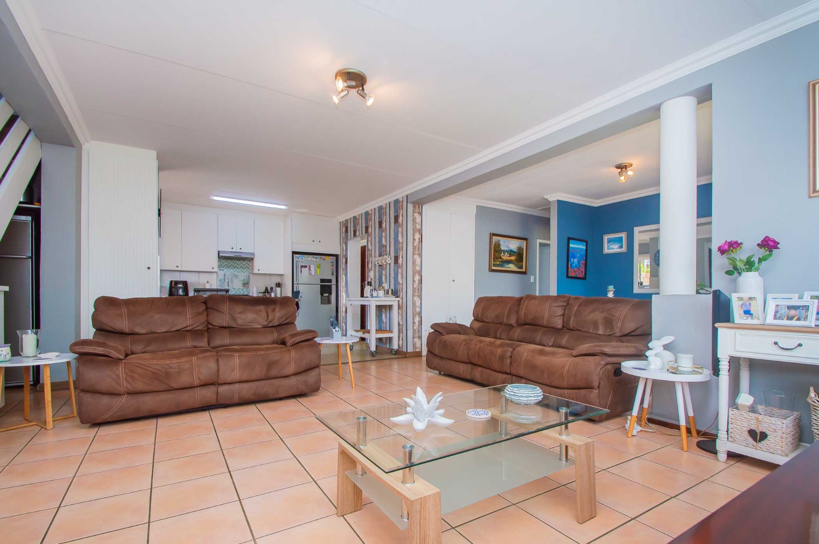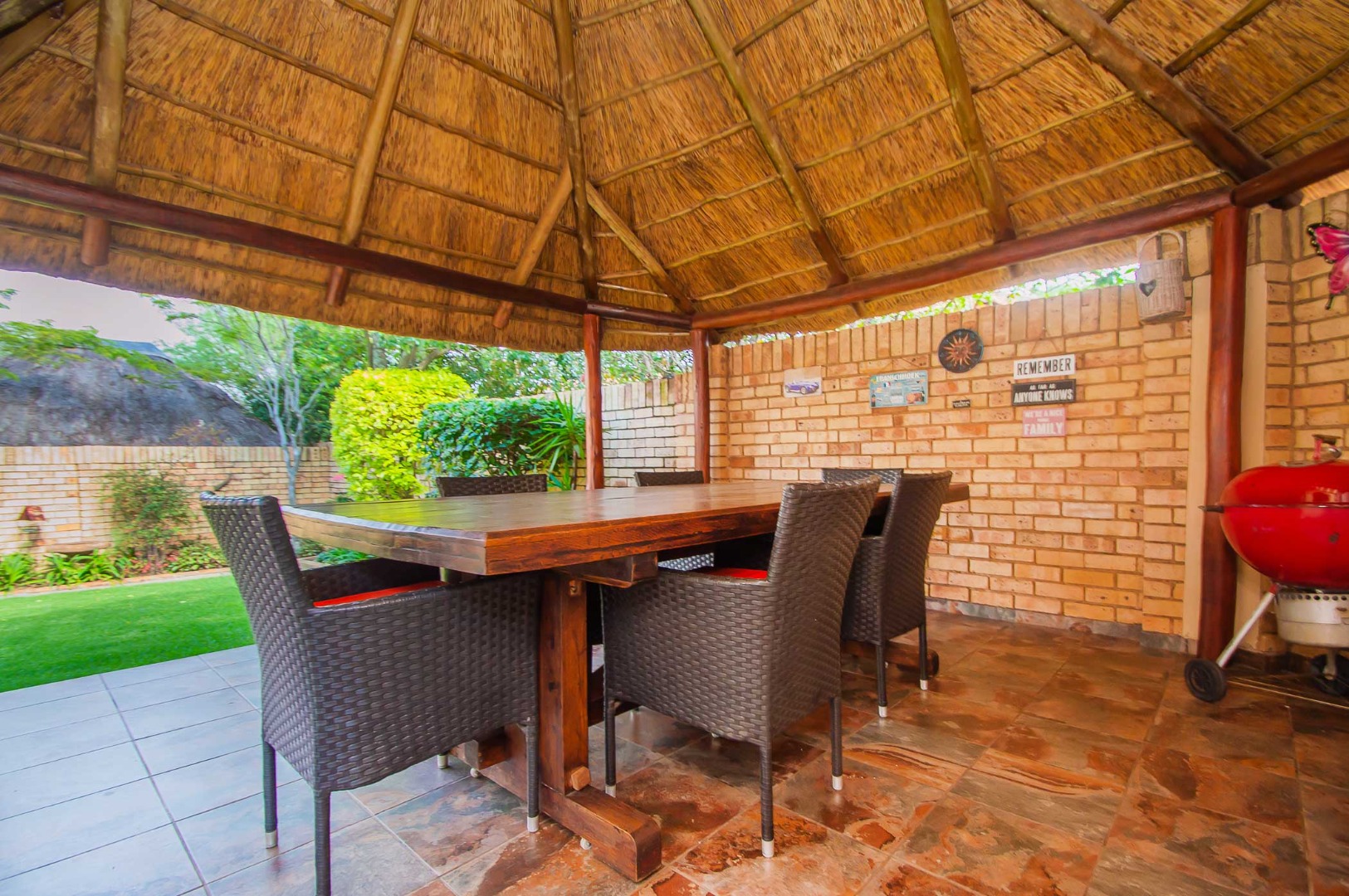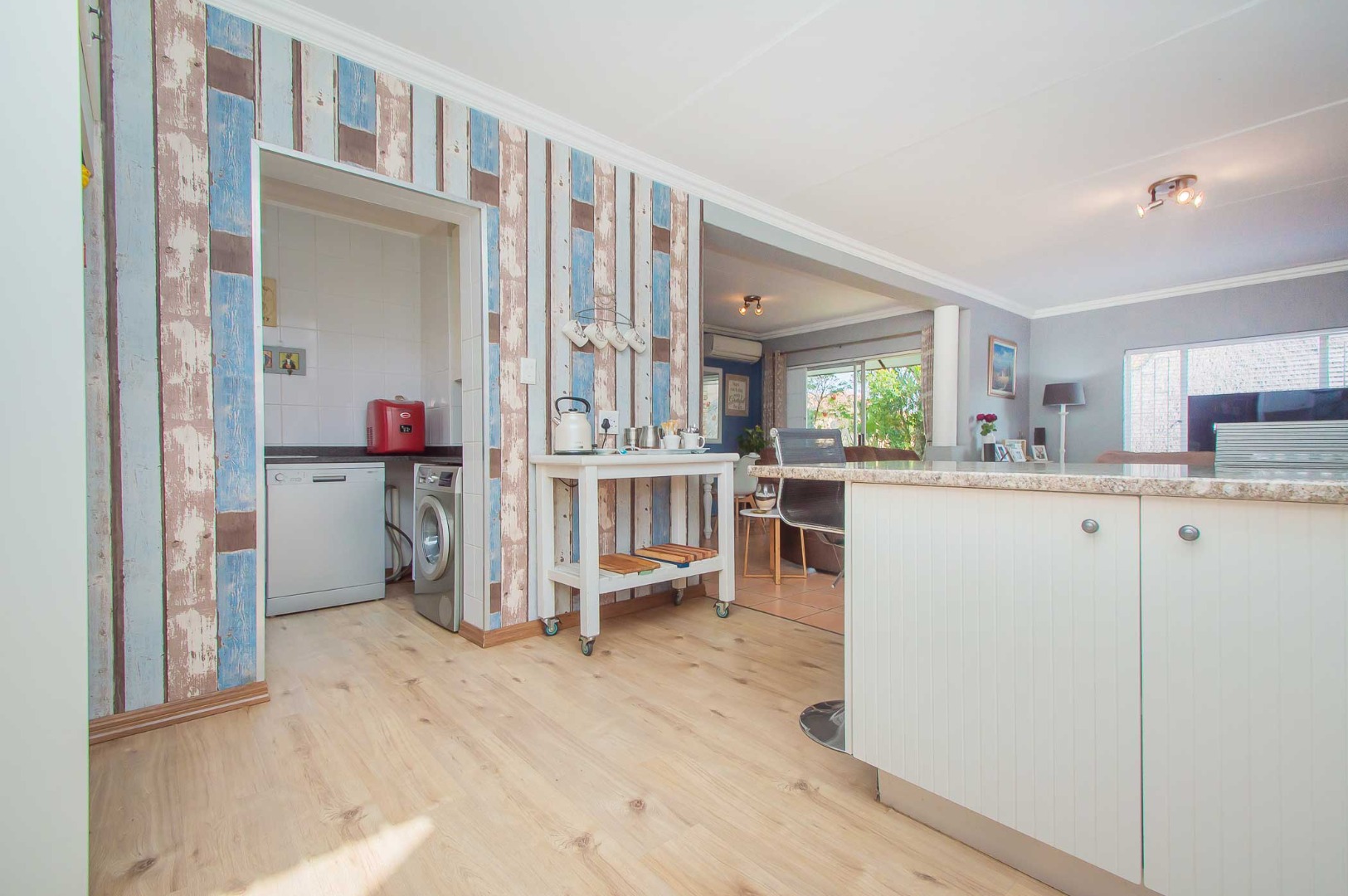 The living area seamlessly extends to the outdoors through a sliding door, leading to a private wrap-around garden. Here, you'll find a charming lapa area that provides additional entertainment space, perfect for hosting friends and family or enjoying quiet evenings at home.