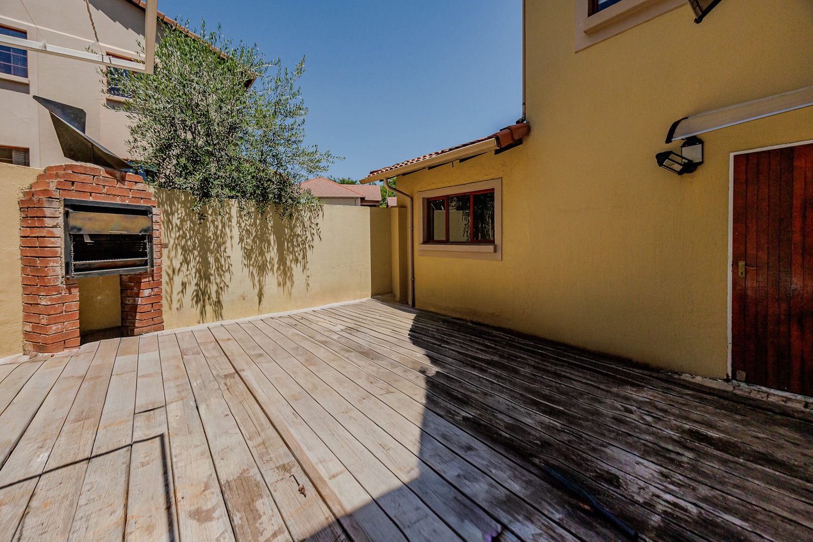 At the heart of the home is a well-appointed kitchen, offering ample cupboard space and designed to make everyday living both practical and pleasurable. The living areas flow seamlessly outdoors to a wooden deck and braai area, creating the perfect setting for relaxed entertaining or peaceful evenings at home.